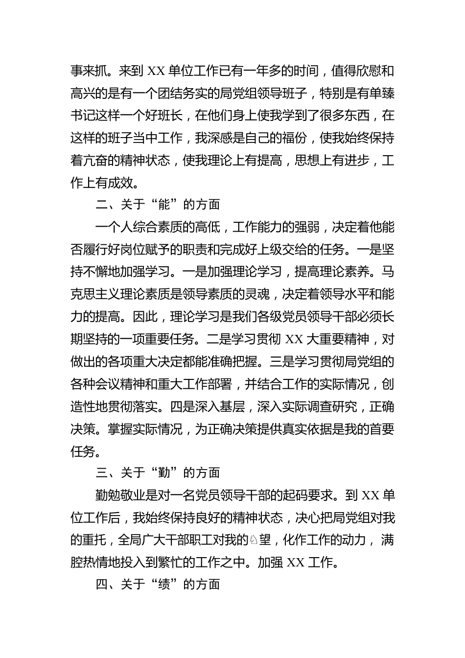 2022年党政领导干部个人年终总结2022年以来,我坚持按照XX要求,勤奋学习,努力工作,较好地履行了职责,发挥了思想政治工作的服务保证作用。下面,就将我一年的工作情况作以汇报。一、关于“德”的方面。自从担任领导干部以来,我始终注重加强主观世界的改造,牢固树立马克思主义的世界观、人生观、价值观,牢固树立正确的权力观、地位观、利益观,保持良好的道德风尚。不管是担任副局长,还是主持工作,我都能从严要求自己,坚持做到“在认认真真学习上要有新进步,在堂堂正正做人上要有新境界,在踏踏实实做事上要有新成效,在清清白白做官上要有新形象”。无论做什么工作都能摆正自己同组织、同事业的关系,把实现个人的人生价值同服从上级领导的安排和开创工作新局面,不断振兴事业紧密地结合起来,自觉地学习和贯彻党的基本理论、基本纲领和基本路线,身体力行马列主义、毛泽东思想、“三个代表”、XJP新时代中国特色社会主义的重要思想,激发自己的政治责任感和奋发进取的精神,不断朝着新的目标奋进。在困境面前能够保持良好的心态,继续孜孜不倦地对信仰和理想去追求。始终做到顺境时不得意忘形,困难时不失意悲观。来到XX局工作以后,我深感自己肩负的责任重大,从不敢有丝毫懈怠,时刻告诫自己要始终把事业和工作摆在首位,把加快医保民生头等大事来抓。来到XX单位工作已有一年多的时间,值得欣慰和高兴的是有一个团结务实的局党组领导班子,特别是有单臻书记这样一个好班长,在他们身上使我学到了很多东西,在这样的班子当中工作,我深感是自己的福份,使我始终保持着亢奋的精神状态,使我理论上有提高,思想上有进步,工作上有成效。二、关于“能”的方面一个人综合素质的高低,工作能力的强弱,决定着他能否履行好岗位赋予的职责和完成好上级交给的任务。一是坚持不懈地加强学习。一是加强理论学习,提高理论素养。马克思主义理论素质是领导素质的灵魂,决定着领导水平和能力的提高。因此,理论学习是我们各级党员领导干部必须长期坚持的一项重要任务。二是学习贯彻XX大重要精神,对做出的各项重大决定都能准确把握。三是学习贯彻局党组的各种会议精神和重大工作部署,并结合工作的实际情况,创造性地贯彻落实。四是深入基层,深入实际调查研究,正确决策。掌握实际情况,为正确决策提供真实依据是我的首要任务。三、关于“勤”的方面勤勉敬业是对一名党员领导干部的起码要求。到XX单位工作后,我始终保持良好的精神状态,决心把局党组对我的重托,全局广大干部职工对我的♘望,化作工作的动力,满腔热情地投入到繁忙的工作之中。加强XX工作。四、关于“绩”的方面一个单位成绩的取得,是上下共同努力的结果,得益于上级领导和部门的支持帮助。XX方面工作有了新的发展,做为负责人,我尽到了应尽的职责,发挥了应有的作用。五、关于“廉”的方面。立党为公、执政为民、廉洁奉公是对一名党员领导干部的基本要求。在廉洁自律方面,我能够自觉按照“十不准”和“五防五克服”的要求,严格要求自己,始终保持清政廉洁的作风。我深知自己手中的权利是党和人民赋予的,只有用好权利,真心实意地为职工群众谋利益、服好务,才能履行好自己的职责,才能赢得职工群众的信赖和对事业发展的支持。本人从没有利用职权和职务上的影响,获取一己私利的行为,没有私自从事经营活动的行为,没有假公济私、化公为私的行为,没有讲排场、比阔、挥霍公款铺张浪费的行为。总之,自己在党风廉政建设方面,能够自觉养成奉公守法,以清廉为荣的作风,做到拒腐蚀永不沾。同时,多次在不同的会上强调职工要廉洁从政、清白做人,要求大家一定要保持艰苦奋斗的作风。2022年,我局按时完成了XX局年初工作计划的要求。但是,在充分肯定成绩的同时,我们也要清醒地看到面临的困难和问题。对自己一年来的工作情况进行认真述职,从中总结经验,找出差距,对做好今后的工作十分有益。当然,还存在着一些问题和不足,在局党组的真确领导和全局干部职工的齐心努力下,我有决心、有信心,做好本职工作,为XX事业明天的辉煌做出更加伟大的贡献。