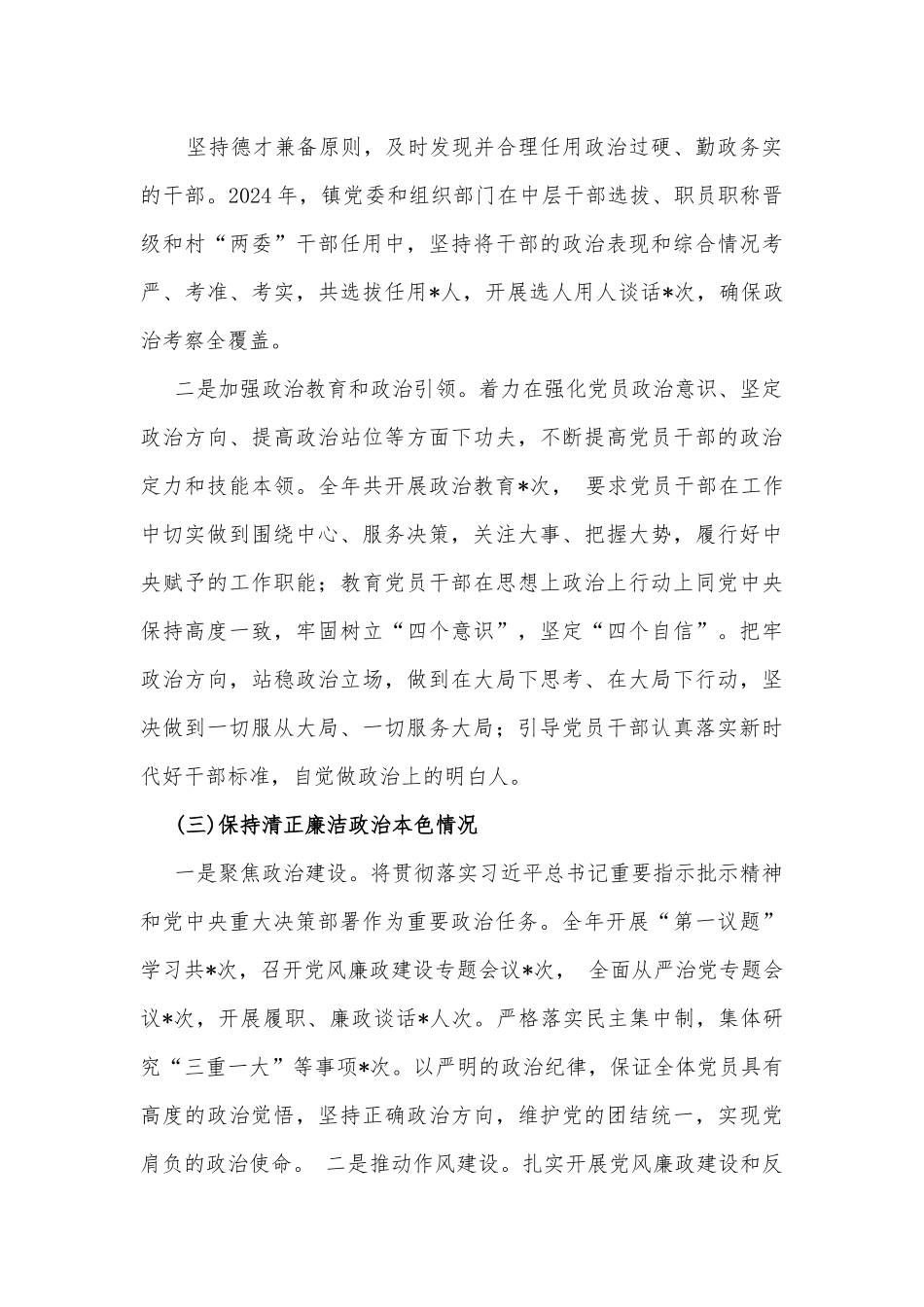 2024年政治生态分析研判情况报告【八篇】与2024年抓党建促乡村振兴工作会上的讲话及发言材料【八篇】汇编供参考2024年政治生态分析研判情况自评报告材料为贯彻落实省委办公厅《关于开展政治生态分析研判工作的意见》有关规定和市、区相关要求,镇对2024年度全镇政治生态系统进行全面、深入的调查和研判,识别政治风险和问题,确保政治生态的健康发展。一、工作开展情况(一)恪守政治忠诚情况一是围绕目标抓好主题教育。坚持“学思用贯通,知信行统一”的根本任务,解决好理论学习和政治素质等方面的问题。2024年,共组织党委理论学习共*次,专题交流研讨*次。依托镇党校开展集中学习研讨*余次,党员培训*期,培训党员*人次,发放党课随身听*部,上门送学*人。打造“*课堂”“*学习”等宣讲品牌,开展线下理论宣讲*余场。广大党员干部受到深刻思想淬炼、政治历练,进一步锤炼了坚定拥护“两个确立”、坚决做到“两个维护”的政治品格。学习贯彻习近平新时代中国特色社会主义思想达到新高度,进一步增强了用党的创新理论统一思想、统一意志、统一行动的坚定性自觉性。二是始终坚持党的领导。加大工作执行力度,把党的领导落实到工作全过程各方面,确保中央和省市区委各项决策部署不折不扣落到实处。全力服务中心大局,紧扣全年目标任务,围绕产业发展、保障改善民生等重点领域,结合职责找准切入点和落脚点,全力以赴做好各项工作。持续加强自身建设,深入贯彻习近平新时代党的建设总要求,认真履行全面从严治党主体责任,进一步提升能力素质、落实主体责任、加强队伍建设,团结带领广大干部群众推动经济社会高质量发展。三是严守政治纪律和政治规矩。始终把政治建设摆在首位,切实增强政治敏感性,不断提高政治判断力、政治领悟力、政治执行力,忠诚捍卫“两个确立”,坚决做到“两个维护”严格履行“一岗双责”,镇党委书记带头履行管党治党政治责任,带头贯彻党的理论和路线方针政策,严格遵守党章和党内政治生活准则,持续优化净化政治生态。严守政治纪律和政治规矩,严格执行重大事项请示报告制度,坚决守牢拒腐防变底线。(二)突出政治标准选人用人情况一是坚定选人用人政治方向。把选人用人作为政治生态的风向标和全面净化党内政治生态的源头活水,突出政治标X准,严把用人标准关,严格考察识别环节,净化选人用人风气。坚持把对党绝对忠诚作为干部队伍的生命线和做好干部工作的根本点。把政治品德作为选拔任用干部的第一指标,坚持德才兼备原则,及时发现并合理任用政治过硬、勤政务实的干部。2024年,镇党委和组织部门在中层干部选拔、职员职称晋级和村“两委”干部任用中,坚持将干部的政治表现和综合情况考严、考准、考实,共选拔任用*人,开展选人用人谈话*次,确保政治考察全覆盖。二是加强政治教育和政治引领。着力在强化党员政治意识、坚定政治方向、提高政治站位等方面下功夫,不断提高党员干部的政治定力和技能本领。全年共开展政治教育*次,要求党员干部在工作中切实做到围绕中心、服务决策,关注大事、把握大势,履行好中央赋予的工作职能;教育党员干部在思想上政治上行动上同党中央保持高度一致,牢固树立“四个意识”,坚定“四个自信”。把牢政治方向,站稳政治立场,做到在大局下思考、在大局下行动,坚决做到一切服从大局、一切服务大局;引导党员干部认真落实新时代好干部标准,自觉做政治上的明白人。(三)保持清正廉洁政治本色情况一是聚焦政治建设。将贯彻落实习近平总书记重要指示批示精神和党中央重大决策部署作为重要政治任务。全年开展“第一议题”学习共*次,召开党风廉政建设专题会议*次,全面从严治党专题会议*次,开展履职、廉政谈话*人次。严格落实民主集中制,集体研究“三重一大”等事项*次。以严明的政治纪律,保证全体党员具有高度的政治觉悟,坚持正确政治方向,维护党的团结统一,实现党肩负的政治使命。二是推动作风建设。扎实开展党风廉政建设和反腐败工作,全年共开展专项监督检查*次,处置信访件*件,问题线索*件,立案*件,给予党纪处分*人,组织处理*人。抓好党风党纪和廉洁从政教育,开展“*”廉政教育课堂*次,基层党支部开展“*”...