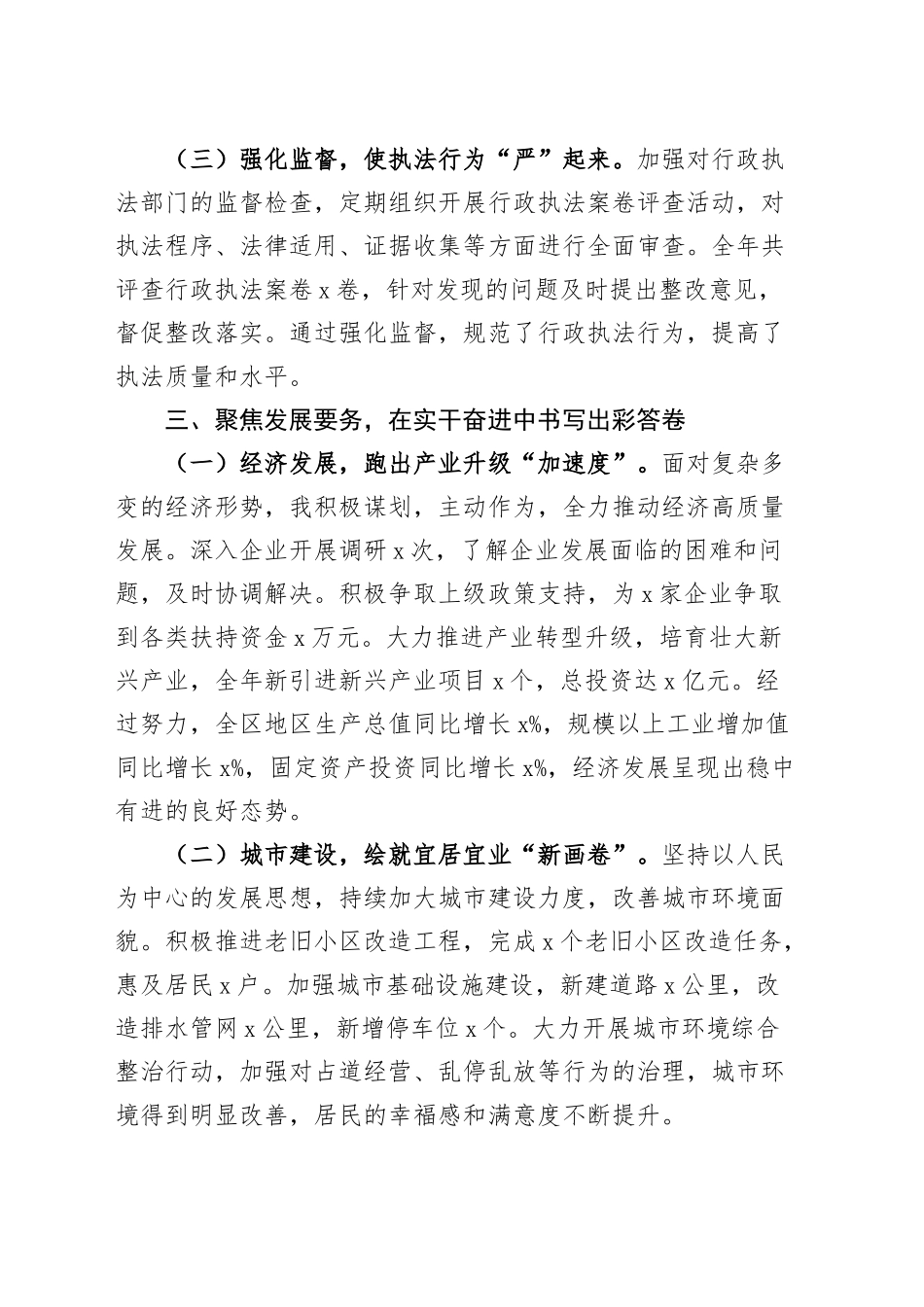 市直单位班子成员2024年述职述廉述责述学述法个人报告(1)2024年,在局党组的坚强领导下,我坚持以习近平新时代中国特色社会主义思想为指引,深入践行党的二十届三中全会精神,秉持“稳扎稳打、创新突破、品质为先、效能至上”的理念,全力以赴推进各项工作,在经济发展、社会建设、党的建设等多个领域取得了阶段性成果。现将本人一年来的述职述廉述责述学述法情况详细汇报如下:一、筑牢思想根基,在理论武装中把稳方向之舵(一)深学细悟,让理论学习“热”起来。把学习党的二十届三中全会精神当作重中之重,积极投身各类学习活动。主动参与x次党委(扩大)会议、x次党委理论中心组学习会,在会上踊跃发言、深入研讨,力求学深悟透全会精髓。同时,充分利用线上学习平台,每日坚持打卡学习,及时跟进最新理论成果,全年累计学习时长超x小时。不仅自己学,还带动身边同志一起学,组织开展专题学习分享会x场,分享学习心得,交流学习体会,在团队中营造出浓厚的学习氛围。(二)丰富载体,让理论传播“活”起来。积极探索多样化的学习教育形式。结合主题党日活动,开展“理论知识竞赛”,以赛促学,激发党员干部学习理论的积极性;组织“红色故事分享会”,邀请老党员、老干部讲述亲身经历,让大家在感人故事中感悟党的光辉历程。此外,借助新媒体平台,制作发布理论学习短视频x条,累计播放量达x次,用生动形象的方式让理论知识“飞入寻常百姓家”。(三)强化担当,让意识形态“强”起来。严格落实意识形态工作责任制,将其纳入年度工作重要议程。定期组织召开意识形态工作专题会议x次,分析研判形势,研究解决问题。加强对各类宣传阵地的管理,对单位内部网站、公众号发布的内容严格审核把关,全年审核信息x条,确保意识形态领域安全。二、紧扣法治主线,在依法治市中彰显担当作为(一)宣传普法,营造法治氛围“浓”起来。充分发挥自身职能优势,组织开展丰富多彩的法治宣传活动。利用“宪法宣传周”“3·15消费者权益日”等重要节点,通过举办法律咨询活动、发放宣传资料、开展法治讲座等形式,向群众普及法律法规知识。全年累计举办各类法治宣传活动x场,发放宣传资料x万余份,解答群众法律咨询x人次,有效提高了群众的法治意识。(二)依法决策,让权力运行“规”起来。严格遵守重大行政决策程序规定,在决策前充分开展调查研究、征求意见、风险评估等工作。全年参与重大决策x项,对决策事项的合法性进行严格审查,确保决策合法合规。建立健全法律顾问制度,聘请专业律师作为法律顾问,为政府决策提供法律支持,全年法律顾问参与处理法律事务x件,有效防范了法律风险。(三)强化监督,使执法行为“严”起来。加强对行政执法部门的监督检查,定期组织开展行政执法案卷评查活动,对执法程序、法律适用、证据收集等方面进行全面审查。全年共评查行政执法案卷x卷,针对发现的问题及时提出整改意见,督促整改落实。通过强化监督,规范了行政执法行为,提高了执法质量和水平。三、聚焦发展要务,在实干奋进中书写出彩答卷(一)经济发展,跑出产业升级“加速度”。面对复杂多变的经济形势,我积极谋划,主动作为,全力推动经济高质量发展。深入企业开展调研x次,了解企业发展面临的困难和问题,及时协调解决。积极争取上级政策支持,为x家企业争取到各类扶持资金x万元。大力推进产业转型升级,培育壮大新兴产业,全年新引进新兴产业项目x个,总投资达x亿元。经过努力,全区地区生产总值同比增长x%,规模以上工业增加值同比增长x%,固定资产投资同比增长x%,经济发展呈现出稳中有进的良好态势。(二)城市建设,绘就宜居宜业“新画卷”。坚持以人民为中心的发展思想,持续加大城市建设力度,改善城市环境面貌。积极推进老旧小区改造工程,完成x个老旧小区改造任务,惠及居民x户。加强城市基础设施建设,新建道路x公里,改造排水管网x公里,新增停车位x个。大力开展城市环境综合整治行动,加强对占道经营、乱停乱放等行为的治理,城市环境得到明显改善,居民的幸福感和满意度不断提升。(三)民生保障,奏响幸福生活“最强音”。始终把保障和改善民生作为工作的出发点和落脚点,用...