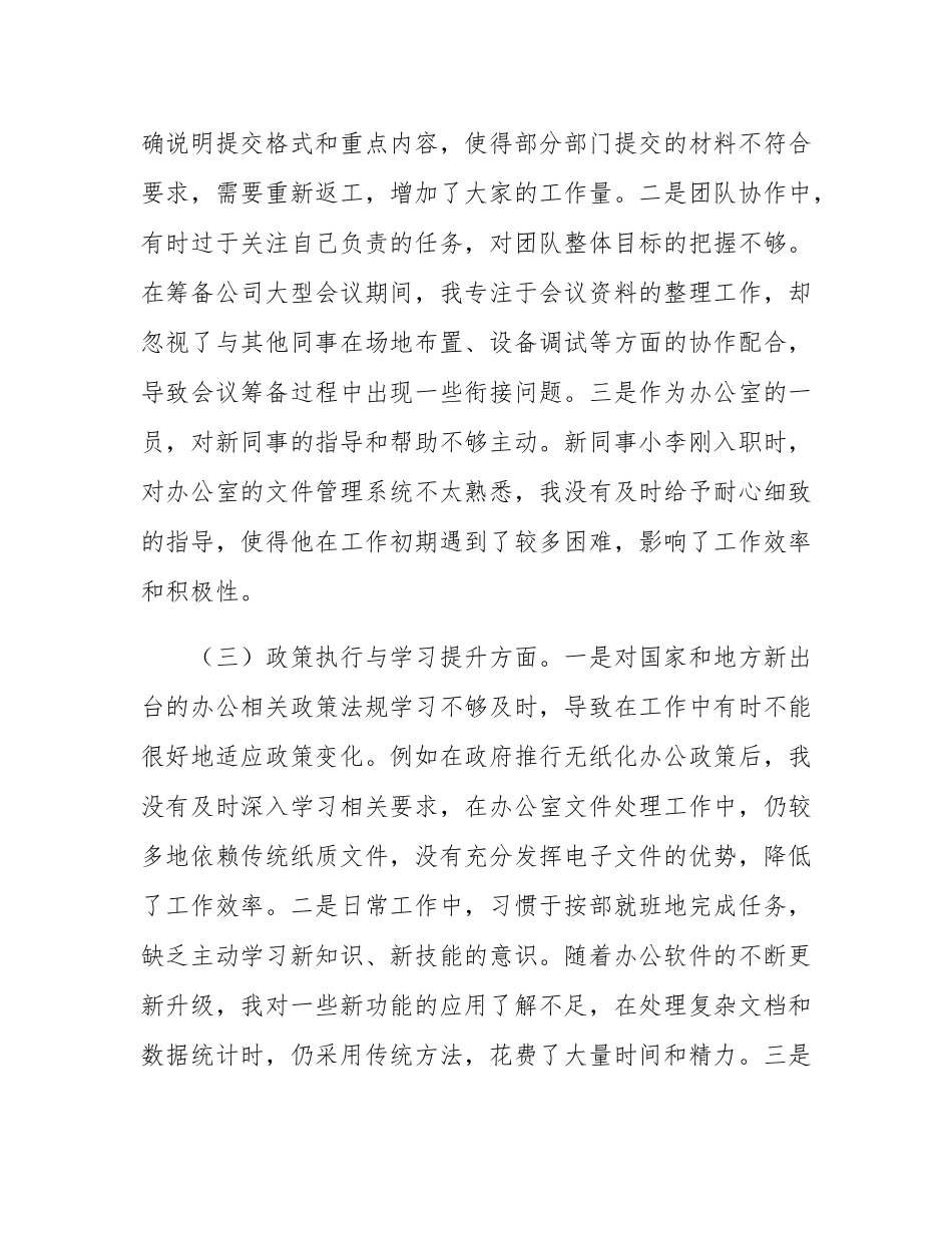 办公室党支部党员干部参加2024年度组织生活会时的批评与自我批评意见汇总一、自我批评意见(一)工作效率与决策方面。一是在面对办公室紧急文件处理时,有时会过于谨慎,反复核对细节,导致文件流转速度较慢,影响了工作的时效性。例如上次一份重要的会议通知文件,因我过度担忧格式和内容错误,审核时间过长,险些耽误了会议的正常通知。二是参与办公室组织的活动策划时,思维不够开阔,总是依赖以往的成功经验,缺乏创新性的想法。如在策划公司年度团建活动时,提出的方案与前几年类似,没有充分考虑到员工的新需求和当下流行的团建形式,导致活动参与度和满意度不高。三是对于一些需要快速决策的办公室日常事务,存在犹豫不决的情况。比如在办公用品采购时,面对多个供应商的不同报价和产品质量,我花费了过多时间对比分析,错过了最佳采购时机,影响了办公用品的及时供应。(二)沟通协作与团队管理方面。一是在与其他部门沟通协调工作时,有时表达不够清晰准确,导致信息传递出现偏差。上次协调各部门提交季度工作总结时,由于我在沟通中没有明确说明提交格式和重点内容,使得部分部门提交的材料不符合要求,需要重新返工,增加了大家的工作量。二是团队协作中,有时过于关注自己负责的任务,对团队整体目标的把握不够。在筹备公司大型会议期间,我专注于会议资料的整理工作,却忽视了与其他同事在场地布置、设备调试等方面的协作配合,导致会议筹备过程中出现一些衔接问题。三是作为办公室的一员,对新同事的指导和帮助不够主动。新同事小李刚入职时,对办公室的文件管理系统不太熟悉,我没有及时给予耐心细致的指导,使得他在工作初期遇到了较多困难,影响了工作效率和积极性。(三)政策执行与学习提升方面。一是对国家和地方新出台的办公相关政策法规学习不够及时,导致在工作中有时不能很好地适应政策变化。例如在政府推行无纸化办公政策后,我没有及时深入学习相关要求,在办公室文件处理工作中,仍较多地依赖传统纸质文件,没有充分发挥电子文件的优势,降低了工作效率。二是日常工作中,习惯于按部就班地完成任务,缺乏主动学习新知识、新技能的意识。随着办公软件的不断更新升级,我对一些新功能的应用了解不足,在处理复杂文档和数据统计时,仍采用传统方法,花费了大量时间和精力。三是在执行公司内部规章制度时,有时存在打折扣的情况。比如公司规定办公区域要保持整洁卫生,我偶尔会因为工作繁忙而忽视自己办公桌面的整理,影响了办公室的整体形象。(四)服务意识与工作态度方面。一是为领导和同事提供服务时,有时缺乏主动服务意识。在领导需要出差安排时,没有提前主动了解领导的行程需求和偏好,导致安排的行程和酒店不能完全满足领导的期望。二是工作中遇到困难和压力时,容易产生抱怨情绪,影响工作态度和团队氛围。在连续加班完成重要文件起草工作时,我曾向同事抱怨工作任务繁重,给身边的同事带来了消极影响。三是对工作细节的关注不够,一些办公室日常事务的处理不够精细。如在组织会议时,有时会出现会议资料页码装订错误、会议室设备调试不充分等问题,影响了会议的顺利进行。二、批评主要领导意见(一)决策与规划方面。一是在制定办公室年度工作计划时,虽然有明确的大方向,但在具体实施步骤和时间节点上不够细化。例如计划推进办公室信息化建设,但没有明确各阶段的完成时间和责任人,导致项目进展缓慢,至今未能达到预期效果。二是重大决策时,有时调研不够充分,过于依赖个人经验和判断。在决定更换办公室办公软件系统时,没有广泛征求各部门的意见和需求,也没有对市场上的多种软件进行全面深入的对比分析,导致新系统在使用过程中出现诸多不适应的问题,影响了工作效率。三是对办公室未来的发展缺乏长远规划,没有充分考虑到行业发展趋势和新技术的应用。随着人工智能在办公领域的逐渐普及,我们办公室却没有提前布局相关技术的学习和应用,在办公效率提升方面逐渐落后于同行业其他单位。(二)团队管理与人才培养方面。一是对办公室员工的培训重视程度不够,培训内容和形式较为单一。培训大多以内部简单的经验分享为主,缺乏专业的外部培训...