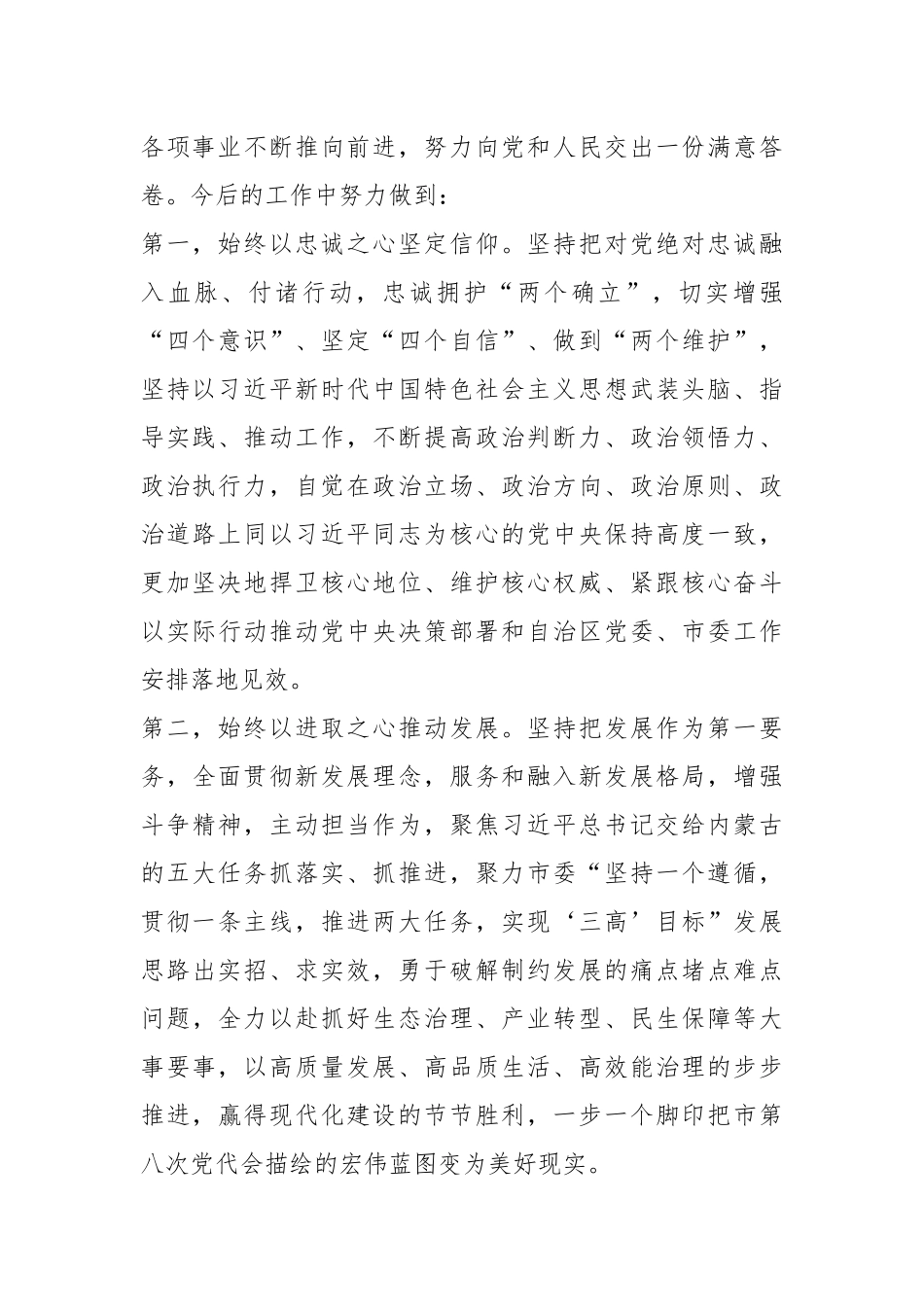 人民政府代理市长任职表态发言、履职承诺x月xx日,市人大常委会召开会议对我的任职进行表决,充分体现了市委、市人大和全市人民对我的信任和支持。对此,我表示衷心的感谢!自xxxx年x月到xx工作以来,在以xx书记为班长的市委正确领导下,在全市各级干部和广大群众的大力支持下,我始终忠诚履行职责使命,全心全力为xx各项事业发展而执着奋斗。这次自治区党委对我的任用,既是组织多年来关心培养的结果,更离不开全市各级干部和广大群众的大力支持。两年来,我亲历了xx推进资源型城市转型的火热实践,深切感到这是一片干事创业、大有可为的热土,在深入xx城镇农区、厂矿企业调研和广泛接触基层干部群众的过程中,我也对这片土地建立了深厚的感情,与全市干部群众结下了诚挚的友谊。在全面贯彻落实党的二十大精神的开局之年、推进现代化建设的新起点,接过沉甸甸的历史“接力棒”,我深感使命如磐、责重如山,一定倍加珍惜党和人民提供的干事舞台、赋予的神圣使命,团结带领市政府一班人,在市委坚强领导下,在市人大、政协监督支持下,忠诚履职、接续奋斗,竭尽全力把xx各项事业不断推向前进,努力向党和人民交出一份满意答卷。今后的工作中努力做到:第一,始终以忠诚之心坚定信仰。坚持把对党绝对忠诚融入血脉、付诸行动,忠诚拥护“两个确立”,切实增强“四个意识”、坚定“四个自信”、做到“两个维护”,坚持以习近平新时代中国特色社会主义思想武装头脑、指导实践、推动工作,不断提高政治判断力、政治领悟力、政治执行力,自觉在政治立场、政治方向、政治原则、政治道路上同以习近平同志为核心的党中央保持高度一致,更加坚决地捍卫核心地位、维护核心权威、紧跟核心奋斗以实际行动推动党中央决策部署和自治区党委、市委工作安排落地见效。第二,始终以进取之心推动发展。坚持把发展作为第一要务,全面贯彻新发展理念,服务和融入新发展格局,增强斗争精神,主动担当作为,聚焦习近平总书记交给内蒙古的五大任务抓落实、抓推进,聚力市委“坚持一个遵循,贯彻一条主线,推进两大任务,实现‘三高’目标”发展思路出实招、求实效,勇于破解制约发展的痛点堵点难点问题,全力以赴抓好生态治理、产业转型、民生保障等大事要事,以高质量发展、高品质生活、高效能治理的步步推进,赢得现代化建设的节节胜利,一步一个脚印把市第八次党代会描绘的宏伟蓝图变为美好现实。第三,始终以为民之心践行宗旨。坚持以人民为中心的发展思想,牢记江山就是人民、人民就是江山,主动回应群众关切,尽力而为、量力而行,采取更多惠民生、暖民心举措,在幼有所育、学有所教、劳有所得、病有所医、老有所养、住有所居、弱有所扶上持续用力,进一步健全基本公共服务体系,提高公共服务水平,增强均衡性和可及性着力解决好人民群众急难愁盼问题,推动共同富裕迈出坚实步伐,不断提高人民群众的获得感、幸福感、安全感,让发展实绩更有“温度”、群众幸福更有“质感”。第四,始终以敬畏之心对待权力。坚持秉公用权,自觉接受人大法律监督、工作监督和政协民主监督,主动接受社会和舆论监督,让权力在阳光下运行。坚持依法行政,严格依照法定权限和程序履行职责,做到法定职责必须为、法无授权不可为,切实把权力关进制度的笼子里。坚持抓班子、带队伍,团结共事、一心干事、合力成事,充分发挥政府班子的凝聚力、向心力、战斗力。严格遵守廉洁从政相关规定,不断增强廉洁自律意识,恪守底线红线,永葆公仆本色,堂堂正正做人、干干净净干事、清清白白履职,树立为民务实清廉良好形象。诺重如山,行胜于言。我将牢记使命、不负重托,用心用情用力、真学真抓真干,为谱写中国式现代化xx新篇章而不懈奋斗,向党和人民交上一份满意答卷。