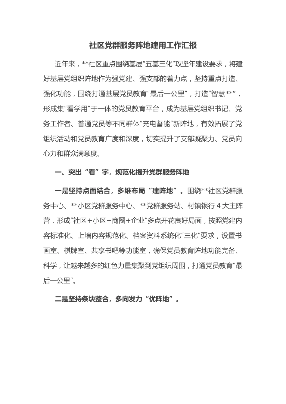 社区党群服务阵地建用工作汇报近年来,**社区重点围绕基层“五基三化”攻坚年建设要求,将建好基层党组织阵地作为强党建、强支部的着力点,坚持重点打造、强化功能,围绕打通基层党员教育“最后一公里”,打造“智慧**”,形成集“看学用”于一体的党员教育平台,成为基层党组织书记、党务工作者、普通党员等不同群体“充电蓄能”新阵地,有效拓展了党组织活动和党员教育广度和深度,切实提升了支部凝聚力、党员向心力和群众满意度。一、突出“看”字,规范化提升党群服务阵地一是坚持点面结合,多维布局“建阵地”。围绕**社区党群服务中心、**小区党群服务中心、**党群服务站、村镇银行4大主阵营,形成“社区+小区+商圈+企业”多点开花良好局面,按照党建内容标准化、上墙内容规范化、档案资料系统化“三化”要求,设置书画室、棋牌室、共享书吧等功能室,确保党员教育阵地功能完备、科学,让越来越多的红色力量集聚到党组织周围,打通党员教育“最后一公里”。二是坚持条块整合,多向发力“优阵地”。充分挖掘和开发辖区红色革命教育阵地、党性教育阵地资源,将**街道党群服务中心、**社区党群服务中心、柳州工业博物馆、**古镇等红色教育资源进行串联,将忆党史、强党性、促党廉、跟党走、报党恩巧妙融入红色教育线路情景设计,打造形成特色教育路线进一步加强党员干部队伍建设,切实增强党员干部的责任感和使命感。三是坚持智慧先行,多元一体“享阵地”。打造面积约630㎡的“智慧**”党群服务中心,引入“智能管家”,“智慧平台”,安装“一键式”智慧系统,夯实红色阵地,打造“清廉影苑”,实现红色电影自主点播,目前已收纳各类影片60余部,组织集中观影29次,党员群众自主点播100余次。二、突出“学”字,系统化建设党群服务阵地一是开发菜单选学模式,让党员教育“活起来”。聚焦党员干部能力素质、业务技能和服务水平提升,通过因需设学方式,收集培训需求意见建议19条,设置党性教育、基层治理、创文明城等10大学习模块,结合不同行业、不同群体,量身定制学习套餐,分类制定教学方案,做到理论与实践有机衔接,有效破解党员教育培训针对性、实效性不强的难题。二是弘扬榜样教学模式,让党员群众“动起来”。为了调动广大干部的积极性、主动性、创造性,**社区定期召开“学习强国”表彰大会,树立“学习强国”夫妻档先进学习典型,同时结合清廉社区建设,评选辖区清廉榜样,开展“廉政第一课”系列活动,用鲜活的语言讲述生动的案例,引导广大党员群众主动向榜样看齐,积极向先进学习。三是探索品牌党建模式,让**经验“走出去”。激活区域化党建品牌“红色引擎”,在**古镇党群服务站成立商圈联合党委,开设“**论谈”,借助**古镇、石尚1966文化艺术园区、红街等商圈优势打造“商圈联盟”及“四联四商”、“彩虹银行”等服务品牌,将红色基因植入商圈发展。2021年至今,**社区先后迎接自治区各级领导、各县市培训班参观交流百余次,成功承办自治区级现场会4场,参观人员2000余人(次)。三、突出“用”字,功能化运行党群服务阵地一是“迎进门”融资源。不断拓展5s厅的功能和内容,有效放大党建阵地实用性,围绕社区环境、安全生产、文明创建、政务服务、基本公共服务等重点领城,撬动各类资源参与区域共建共治共享,构建起“党建共融、资源共享、区域共治、公益共做”的新格局。二是“互开门”办活动。压缩行政办公面积、释放居民活动空间,利用党群服务阵地搭建群众议事、网红直播、四点半课堂、老年大学等各类服务平台,向全社区独居、孤寡老人提供菜单式公益服务50余次,推动基层党组织和群团组织的互联互动。一年来,**社区所辖党群服务阵地举办活动100余场,参加活动的党员群众逾2万人次。三是“敞开门”听意见。紧盯群众诉求集中,群众广泛关注的急事难事聚力攻坚,在党群服务阵地定期开展党代表、人大联组及政治协商、党建名师会诊等活动,征集居民群众、驻区单位、两新组织等服务需求,广泛听取意见建议,为党员群众提供精准化、差异化、高品质的“点单”服务。