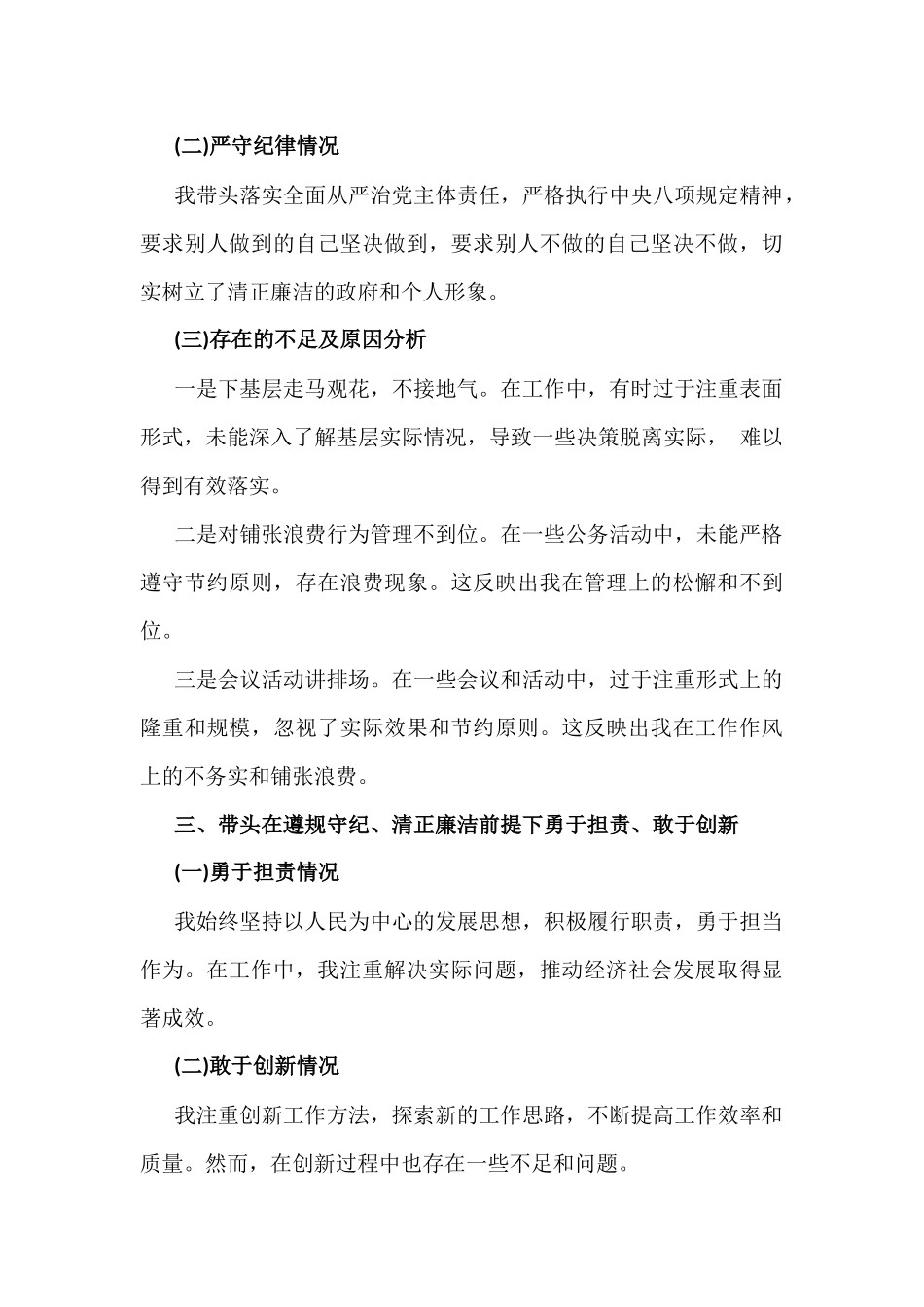 县委副书记、县长2025年生活会“四个带头”对照检查发言材料3130字文稿重点查摆4个方面问题:(1)带头严守政治纪律和政治规矩,维护党的团结统一方面;(2)带头增强党性、严守纪律、砥砺作风方面;(3)带头在遵规守纪、清正廉洁前提下勇于担责、敢于创新方面;(4)带头履行全面从严治党政治责任方面。【正文】尊敬的各位同志:大家好!按照此次民主生活会有关工作要求,我深入学习了党的相关精神和党内法规,并紧密结合工作实际,广泛开展谈心谈话,征求意见建议,认真查找自身存在的问题和不足。现将对照检查情况汇报如下,请同志们提出批评意见。一、带头严守政治纪律和政治规矩,维护党的团结统一(一)理论学习情况会前,我聚焦主题深化学习,坚持把学习贯彻党的相关思想和党的全会精神贯穿始终,坚持学懂弄通、学深悟透。深入学习领会习近平总书记重要讲话重要指示精神,认真学习党章、《中国共产党纪律处分条例》《中共中央办公厅关于推进党纪学习教育常态化长效化的意见》等党内法规和重要文件,深刻领会加强党的纪律建设的重要性,打牢开好这次年度民主生活会的思想基础。(二)严守政治纪律和政治规矩情况我能够积极参加党纪学习教育,认真学习党章、《条例》,不断强化自身纪律法规意识,带头严守政治纪律和政治规矩,牢固树立“四个意识”,坚定“四个自信”,做到“两个维护”,拥护“两个确立”,自觉在思想上政治上行动上同以习近平同志为核心的党中央保持高度一致。(三)存在的不足及原因分析一是以学铸魂、以学增智还有差距。对党纪学习教育的重要性认识不够深刻,对纪律建设思想认识不足,存在轻视、敷衍、应付的态度,错误地认为党纪学习教育只是一种形式。对《条例》规定的党的“六项纪律”学习不够全面、系统、深入,把握其精神实质和内涵要义不够精准到位,纪律法规学习缺乏主动性、自觉性和针对性。二是以学正风、以学促干还有差距。党纪学习教育与自身作风建设结合不够紧密,未能将学习成果转化为实际行动,导致在一些具体工作中存在作风不实、落实不力的问题。二、带头增强党性、严守纪律、砥砺作风(一)党性锤炼情况我始终坚持党的领导,坚定理想信念,牢固树立“四个意识”,在思想上政治上行动上始终同以习近平同志为核心的党中央保持高度一致,坚决贯彻落实党的各项决策部署。(二)严守纪律情况我带头落实全面从严治党主体责任,严格执行中央八项规定精神,要求别人做到的自己坚决做到,要求别人不做的自己坚决不做,切实树立了清正廉洁的政府和个人形象。(三)存在的不足及原因分析一是下基层走马观花,不接地气。在工作中,有时过于注重表面形式,未能深入了解基层实际情况,导致一些决策脱离实际,难以得到有效落实。二是对铺张浪费行为管理不到位。在一些公务活动中,未能严格遵守节约原则,存在浪费现象。这反映出我在管理上的松懈和不到位。三是会议活动讲排场。在一些会议和活动中,过于注重形式上的隆重和规模,忽视了实际效果和节约原则。这反映出我在工作作风上的不务实和铺张浪费。三、带头在遵规守纪、清正廉洁前提下勇于担责、敢于创新(一)勇于担责情况我始终坚持以人民为中心的发展思想,积极履行职责,勇于担当作为。在工作中,我注重解决实际问题,推动经济社会发展取得显著成效。(二)敢于创新情况我注重创新工作方法,探索新的工作思路,不断提高工作效率和质量。然而,在创新过程中也存在一些不足和问题。(三)存在的不足及原因分析一是政绩观还有偏差。在工作中,有时过于注重表面政绩和短期效果,忽视了可持续发展和长远利益。这反映出我在政绩观上的片面性和短视性。二是决策论证不充分。在一些重大决策中,未能充分听取各方面意见和建议,导致决策存在风险和不确定性。这反映出我在决策过程中的盲目性和缺乏科学性。三是工作落而不实,作风飘浮。在工作中,有时存在形式主义、官僚主义等问题,导致工作效果不佳。这反映出我在工作作风上的不务实和飘浮性。四、带头履行全面从严治党政治责任(一)履行全面从严治党政治责任情况我始终坚持全面从严治党,认真履行政治责任,加强党风廉政建设和反腐败工作。在工作中,我注重加强制度建设,完善监督...