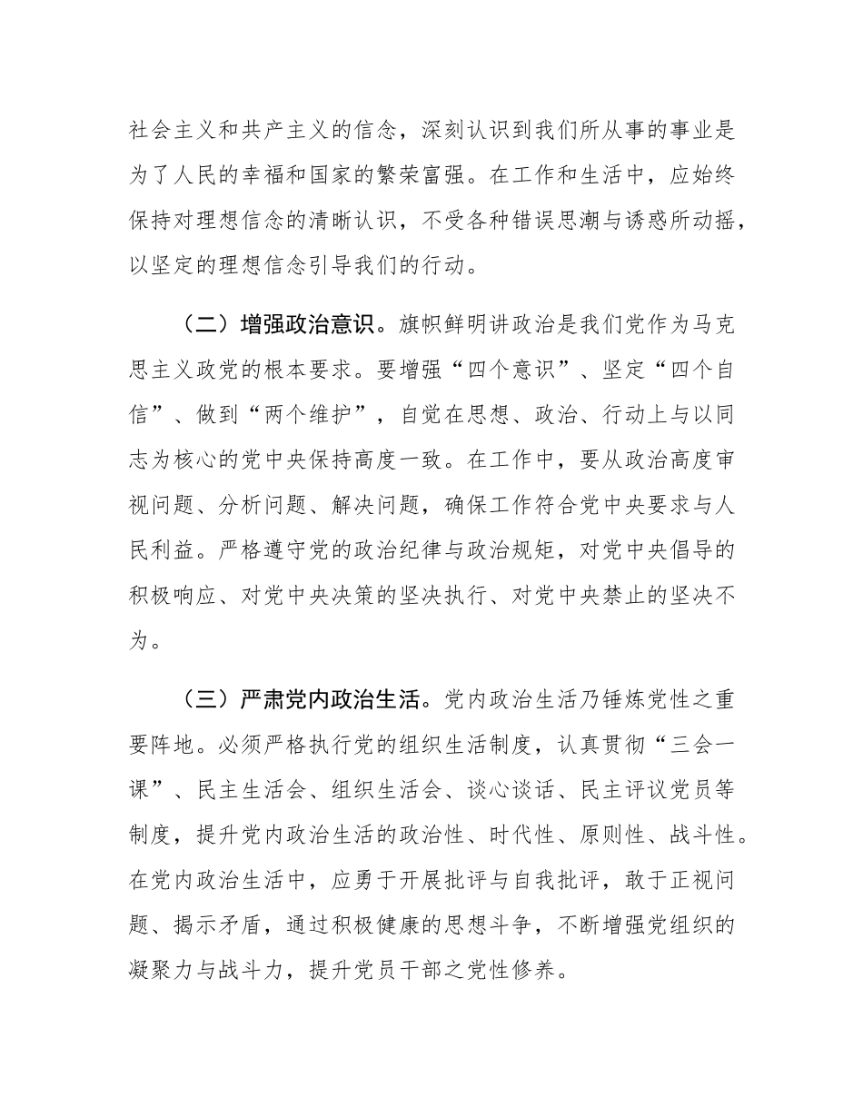 党委副书记在2024年度民主生活会前研讨交流会上的发言根据关于召开2024年度民主生活会的决策部署,我们在此举行研讨交流会,具有深远的意义。通过深化对新时代中国特色社会主义思想的学习,以及对党的XX大和二十届二中、三中全会精神的领会,我们深刻理解到,民主生活会是党内政治生活的重要组成部分,是加强领导班子建设、推进党建工作的重要手段。作为党委副书记,我深知肩负的重大责任。期望我们能够以此次研讨为新的起点,紧密围绕主题,深入挖掘自身在党性修养、工作作风等方面的短板和不足,充分开展思想交流,为高质量地召开民主生活会奠定坚实基础,进一步推动各项事业取得新的进展,为党和人民的事业贡献更大的力量。现将本人的对照检查材料汇报如下。一、深化理论学习,筑牢思想根基(一)学深悟透新思想。深入学习领会新时代中国特色社会主义思想,是我们当前和今后一个时期的首要政治任务。这一思想博大精深、意义重大,是我们前进的灯塔、行动的指南。我们必须全面系统地学习、深入细致地思考、紧密结合实际地应用,深刻把握其核心要义、精神实质、丰富内涵和实践要求,持续增强对党的创新理论的政治认同、思想认同、理论认同、情感认同。通过学习,深刻领会其中所蕴含的马克思主义立场、观点、方法,以此武装头脑、指导实践、推动工作。(二)跟进学习新部署。迅速跟进并深入学习党中央最新作出的决策部署以及总书记最新发表的重要讲话和重要指示批示精神。党的政策方针是与时俱进、根据时代发展和国家建设需求不断调整和完善的重要指导原则,我们必须紧跟党中央的步伐,确保思想和行动与党中央保持高度一致。(三)推动学习常态化。理论学习乃一项长期而系统的工程,不可急于求成,必须构建常态化、制度化的学习机制。要充分利用党委中心组学习、支部“三会一课”、专题研讨班、个人自学等多种形式,持续不断地加强学习。同时,要注重学习效果,通过交流研讨、撰写心得体会、开展知识测试等方式,检验和巩固学习成果,确保理论学习真正入脑入心,转化为我们工作的行动指南。二、强化党性修养,提高政治能力(一)坚定理想信念。理想信念是共产党人的精神支柱和政治灵魂。我们要始终坚定对马克思主义的信仰、对中国特色社会主义和共产主义的信念,深刻认识到我们所从事的事业是为了人民的幸福和国家的繁荣富强。在工作和生活中,应始终保持对理想信念的清晰认识,不受各种错误思潮与诱惑所动摇,以坚定的理想信念引导我们的行动。(二)增强政治意识。旗帜鲜明讲政治是我们党作为马克思主义政党的根本要求。要增强“四个意识”、坚定“四个自信”、做到“两个维护”,自觉在思想、政治、行动上与以同志为核心的党中央保持高度一致。在工作中,要从政治高度审视问题、分析问题、解决问题,确保工作符合党中央要求与人民利益。严格遵守党的政治纪律与政治规矩,对党中央倡导的积极响应、对党中央决策的坚决执行、对党中央禁止的坚决不为。(三)严肃党内政治生活。党内政治生活乃锤炼党性之重要阵地。必须严格执行党的组织生活制度,认真贯彻“三会一课”、民主生活会、组织生活会、谈心谈话、民主评议党员等制度,提升党内政治生活的政治性、时代性、原则性、战斗性。在党内政治生活中,应勇于开展批评与自我批评,敢于正视问题、揭示矛盾,通过积极健康的思想斗争,不断增强党组织的凝聚力与战斗力,提升党员干部之党性修养。(四)严守纪律规矩。深入贯彻纪律学习,确保对党的政治纪律及其他各项纪律规定了然于胸,自觉维护党纪国法的严肃性。强化对党员干部的教育、管理和监督,对任何违纪违法行为采取零容忍态度,努力营造一个廉洁、公正的政治环境。三、坚持问题导向,深入检视反思(一)针对理论学习中存在的差距进行深刻反思。认真反思在学习新时代中国特色社会主义思想等党的理论方面存在的不足。是否存在学习不深入、不系统,一知半解、浅尝辄止的情况。是否存在理论与实践脱节,未能将理论学习与实际工作紧密结合,无法用理论指导实践、推动工作的现象。通过自我检查和对照,明确理论学习的努力方向,不断优化学习方法,提升学习成效。(二)针对党性修养中...