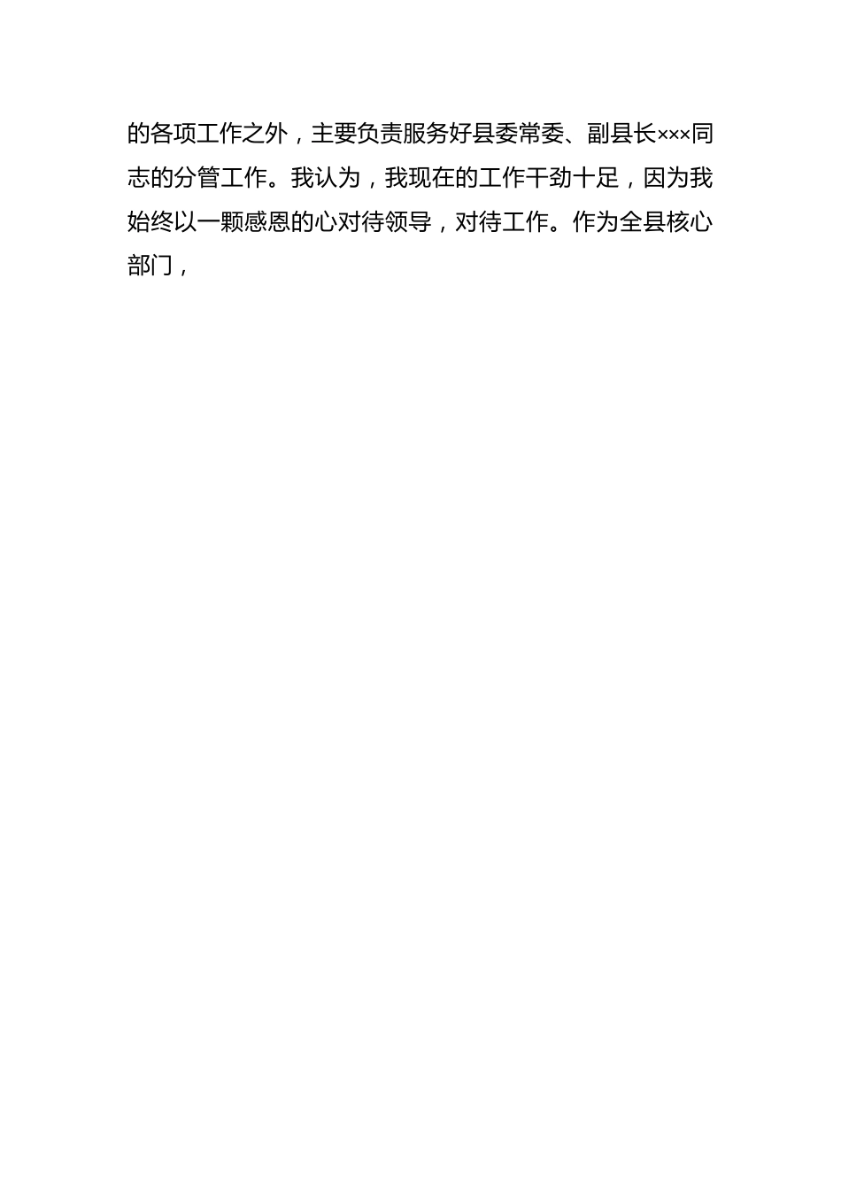 有关“三抓三提升”专题生活会个人对照检查情况报告围绕专题生活会主题,我认真总结反思近期各项工作全面查找自身存在的问题和不足,剖析了原因,明确了整改措施和努力方向。现将个人对照检查情况报告如下:一、工作认识我认为,政府办公室是全县的关键部门,办公室工作如何,对我县全面的工作影响很大。可以说,“运筹于帷幄之中,决胜于千里之外。”办公室工作做好了,各项工作的顺利开展也就有了可靠保证。一是地位重要。一个是决策的参谋、智囊作用;一个是对上对下的服务功能。二是事务繁杂。就内部分工来说,有调研、信息、督查、信访、接待、机要、档案、资料等各项工作。三是难度很大。既要处理好上下左右、方方面面的关系,又要适应领导的工作风格和方法,搞好领导班子的服务工作。办公室日常事务繁多,出成绩时大家可能是无名英雄,寂寂无闻;在遇到问题时,可能成为矛盾的焦点,尝尽酸甜苦辣。我首先是政府办的一员,在完成好主任、副主任交办的各项工作之外,主要负责服务好县委常委、副县长×××同志的分管工作。我认为,我现在的工作干劲十足,因为我始终以一颗感恩的心对待领导,对待工作。作为全县核心部门,很荣幸可以接触到优秀的领导和同事,给我的人生历练提供是最好的平台和机会,所以干工作愿意保持谦虚谨慎、追求完美的态度。这既是对自己负责,也是对领导负责。虽然有时不免有负面情绪,但也会克制不带到工作中来。二、存在问题(一)文字功夫不硬。政府办“不是精品不出手”的精品意识树的还不牢固。对于会议报告、领导讲话等各类文稿的起草,在掌握各类文体写作基本要领的同时,还需要增强文稿的针对性,面对不同的主体、场合,要灵活转换表达内容和方式、语气。还需要多用心、多学习、多总结、多开悟,从而早日熟练掌握各种类型公文及其他文体写作基本要领,出手成章。(二)业务钻研不深。主要是参谋助手作用发挥还不够充分,不够到位。存在被动等待安排工作任务,慢慢发现有时不能跟上领导的节奏,参谋助手作用就打了折扣。(三)担当意识不够。存在懈怠,不够勤奋,有时带着情绪完成领导交办的工作,特别是熬夜写稿子的时候,连续几天不能早点回家,就会产生心烦意乱的情绪,也存在求不出事,求过得去的现象,没有用更高的标准、更严的要求开展工作。(四)保密意识不强。我对保密工作的重视不够,保密意识不强、保密纪律松懈。2023年×月,我县召开县×××会议,本人出于疏忽,违规使用微信“图文识别”小程序,将省市《会议精神》转化为文字信息,造成泄密。此次事情充分反映出自己对外事保密工作缺乏足够的认识。我对自己的失职感到痛心。(四)沟通意识不足。很多时候县委、人大、政协、纪委直接送过来文件,主任们并不知晓,而自己没能做到及时汇报,导致工作被动的情况时有发生。今年东方甄选来我县调研,县委直接批给了××县长接待,由于自己没能第一时间汇报,导致此项工作陷入被动局面。三、下步计划今后,我将坚持经常性检查自己的思想、工作“到位”情况,务必做到领导交代的每一项工作都不落趟,做一个靠谱的人,使自己出口能讲、提笔能写、出手能干。(一)更好发挥参谋、协调作用。作为政府办的一名文秘人员,服务对象既有领导,又有部门、乡镇,还有广大群众。我将把参与政务作为重中之重,充分履行参谋助手、综合协调职责。在工作实践中,始终紧扣分管副县长分管部门、协调单位事关发展的重点问题,深入细致分析研究,尽力把问题思考在领导之前,检点在领导之前,并及时向领导反馈,为领导科学决策提供重要参考。(二)履行办文、办会、办事职能。在工作中,我将始终做到工作无论轻重、事情不论大小,都认真细致、扎扎实实、保质保量地去完成。1.办文精益求精。我将不断反思、模仿,尤其是将分管部门历年重要讲话和省级内部通报自行装订成册,反复研读,不断总结,使自己的公文处理逐步规范。对于会议报告、领导讲话、汇报材料等各类文稿在起草、打印、校对、印发等各个环节都力求高质量,努力做到“不是精品不出手”。2.办会严密细致。我将熟练掌握会议布置的各项工作流程和注意事项,努力做到会前精心筹划、会中优质服务、会后...