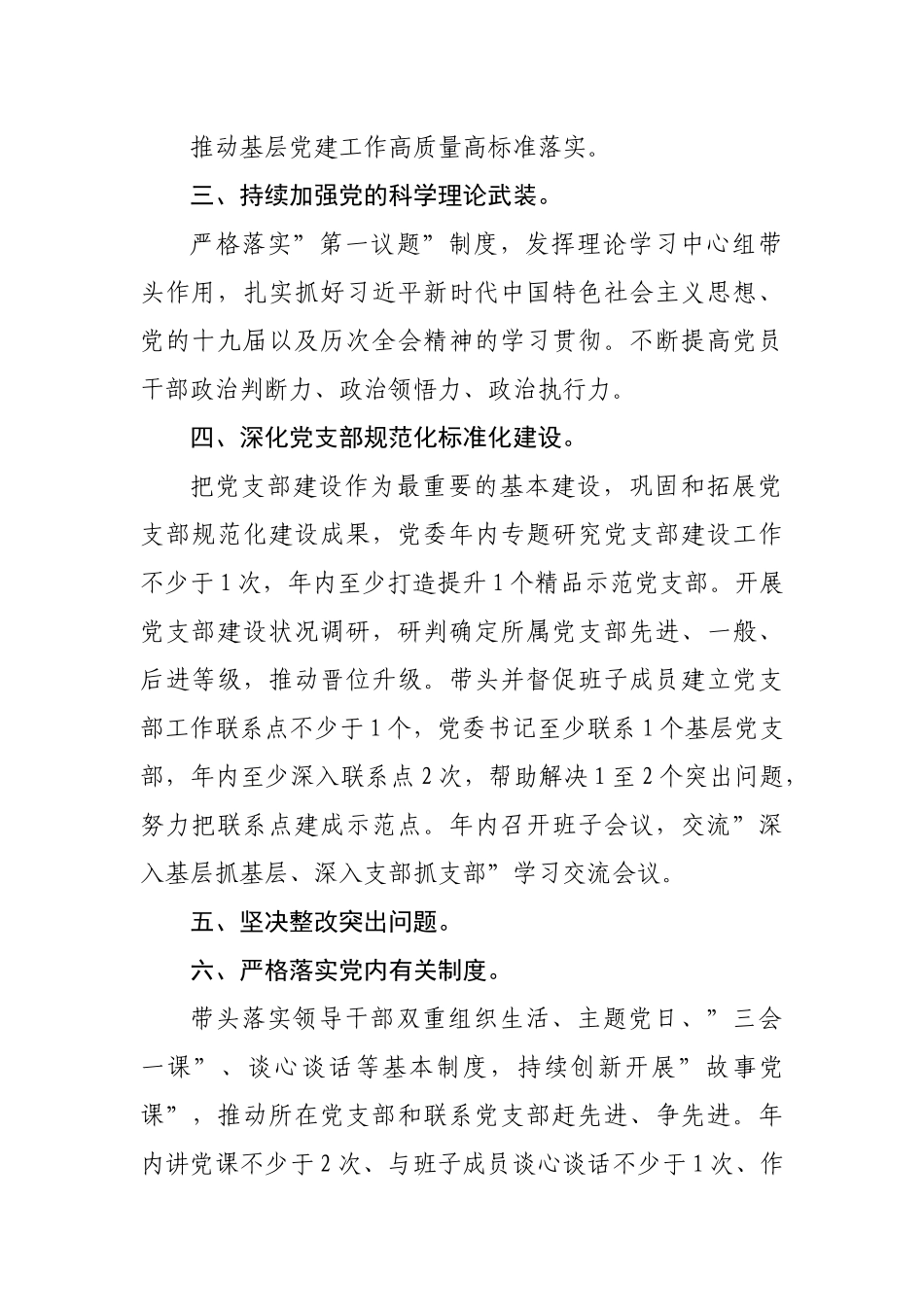 2022年度市局党委书记抓基层党建工作责任清单为贯彻落实党中央、省委、市委部署要求,压实抓基层党建”第一责任人”责任,确保××年度基层党建各项任务落实落地,本着突出工作重点、强化责任落实的原则按照”补短板、强弱项、扬优势”工作要求,推进党建工作与业务工作深度融合,现制定××年度市局党委书记抓基层党建工作责任清单。一、认真履行全面从严治党第一责任人职责。带头执行并推动《党委(党组)落实全面从严治党主体责任规定》落实,做到重要工作亲自部署、重大问题亲自过问、重点环节亲自协调、重要案件亲自督办。牵头制定党委班子责任清单和本单位落实全面从严治党主体责任的年度任务安排,管好班子、带好队伍、抓好落实,支持指导和督促领导班子其他成员、下级党组织书记履行全面从严治党责任,发现问题及时提醒纠正。推动党建工作与中心工作深度融合。二、科学谋划××年度基层党建工作。坚持年初研究部署、年中督促推进、年底考核评议基层党建工作。在4月牵头研究谋划基层党建工作,制定基层党建工作方案和基层党组织以及市局党委班子成员抓基层党建工作责任清单,推动班子成员和所属党组织书记履职尽责。每年专题研究基层党建工作不少于2次、听取工作汇报不少于1次,至少开展1次以”抓党建促发展”为主题的专题研讨,推动基层党建工作高质量高标准落实。三、持续加强党的科学理论武装。严格落实”第一议题”制度,发挥理论学习中心组带头作用,扎实抓好习近平新时代中国特色社会主义思想、党的十九届以及历次全会精神的学习贯彻。不断提高党员干部政治判断力、政治领悟力、政治执行力。四、深化党支部规范化标准化建设。把党支部建设作为最重要的基本建设,巩固和拓展党支部规范化建设成果,党委年内专题研究党支部建设工作不少于1次,年内至少打造提升1个精品示范党支部。开展党支部建设状况调研,研判确定所属党支部先进、一般、后进等级,推动晋位升级。带头并督促班子成员建立党支部工作联系点不少于1个,党委书记至少联系1个基层党支部,年内至少深入联系点2次,帮助解决1至2个突出问题,努力把联系点建成示范点。年内召开班子会议,交流”深入基层抓基层、深入支部抓支部”学习交流会议。五、坚决整改突出问题。六、严格落实党内有关制度。带头落实领导干部双重组织生活、主题党日、”三会一课”、谈心谈话等基本制度,持续创新开展”故事党课”,推动所在党支部和联系党支部赶先进、争先进。年内讲党课不少于2次、与班子成员谈心谈话不少于1次、作理论宣讲或形势报告不少于1次、理论学习中心组主题发言不少于1次。带头抓好”智慧党建”工作,用好”智慧党建”系列平台。强化制度执行情况监督,落实干部考察要听取考察对象日常政治表现和参加组织生活情况,在开展党员领导干部任前谈话时落实谈党建责任的相关要求。八、围绕中心工作抓落实。坚持围绕中心抓党建、抓好党建促中心,突出问题导向、目标导向、结果导向,纵深推进党建品牌建设。引导全体党员干部职工牢记身份、不忘初心,争当生产经营的能手、创新创业的模范、提高效能的标兵、服务群众的先锋。带头在”亮”上下功夫,努力”亮”出干事创业新姿态,带头在”比”上下功夫,努力”比”出创新发展精气神。着力找准工作切入点和活动载体,将党建品牌创建与业务工作紧密联系,做到与中心工作、业务工作同谋划、同部署、同检查、同落实、同考核,推动党建工作和业务工作目标融合、责任融合、载体融合、资源融合。九、持之以恒转作风。持之以恒落实中央八项规定精神及其实施细则,紧紧围绕中央及上级关于防止”四风”反弹和加强作风建设的有关要求,保持正风肃纪高压态势,防止”四风”问题反弹回潮、隐形变异。厉行勤俭节约,反对铺张浪费,严查违规吃喝、享乐奢靡等问题。巩固专项治理成果。持续整治形式主义、官僚主义,强化纠正整改,逐步建立防范形式主义、官僚主义长效机制。十、严格开展述职评议考核。牵头修订完善年度党建工作考核评价办法,突出考核硬约束力,深入整治党建工作”上热中温下冷”,杜绝”灯下黑”问题。考核要做到定量与定性相结合、以定量为主,用考核传导压力,不断加大对党...