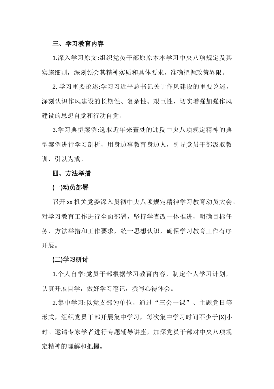 2025年开展学习xxx精神主题教育工作方案3篇与学习2025年深入贯彻xxx精神知识测试题【附答案】机关党委开展深入贯彻xxx精神学习教育工作方案为学习贯彻习近平总书记关于深入贯彻xxx精神学习教育的重要讲话和重要指示精神,深入贯彻落实xxx精神,进一步增强机关党员干部的纪律意识和规矩意识,切实改进工作作风,根据上级有关要求,结合xx机关实际,制定本学习教育工作方案。一、目标要求通过开展深入贯彻xxx精神学习教育,使机关全体党员干部深刻领会xxx精神的重大意义和内涵实质,深刻领悟“两个确立”的决定性意义,坚决做到“两个维护”,持续深化作风建设,坚决反对形式主义、官僚主义,切实解决群众反映强烈的突出问题,营造风清气正的政治生态,为推动xx机关各项工作高质量发展提供坚强的作风保障。二、学习教育对象Xx机关全体党员干部三、学习教育内容1.深入学习原文:组织党员干部原原本本学习xxx及其实施细则,深刻领会其精神实质和具体要求,准确把握政策界限。2.学习重要论述:学习习近平总书记关于作风建设的重要论述,深刻认识作风建设的长期性、复杂性、艰巨性,切实增强加强作风建设的思想自觉和行动自觉。3.学习典型案例:选取近年来查处的违反xxx精神的典型案例进行学习剖析,用身边事教育身边人,引导党员干部汲取教训,引以为戒。四、方法举措(一)动员部署召开xx机关党委深入贯彻xxx精神学习教育动员大会,对学习教育工作进行全面部署,坚持学查改一体推进,明确目标任务、方法举措和工作要求,统一思想认识,确保学习教育工作有序开展。(二)学习研讨1.个人自学:党员干部根据学习教育内容,制定个人学习计划,认真开展自学,做好学习笔记,撰写心得体会。2.集中学习:以党支部为单位,通过“三会一课”、主题党日等形式,组织党员干部开展集中学习,每次集中学习时间不少于[X]小时。邀请专家学者进行专题辅导讲座,加深党员干部对xxx精神的理解和把握。3.交流研讨:在个人自学和集中学习的基础上,组织党员干部围绕学习贯彻xxx精神,结合自身工作实际,开展交流研讨,谈认识、谈体会、谈打算,查找自身在作风建设方面存在的问题和不足,提出整改措施。每个党支部至少组织[X]次交流研讨活动。(三)对照检查1.广泛征求意见:通过发放征求意见表、召开座谈会、设置意见箱等方式,广泛征求服务对象、基层群众和机关干部职工对xx机关在贯彻落实xxx精神方面的意见和建议。2.深入查摆问题:党员干部对照xxx精神及其实施细则,对照征求到的意见建议,对照典型案例,深入查找自身在形式主义、官僚主义、享乐主义和奢靡之风等方面存在的问题,认真撰写对照检查材料。3.召开专题组织生活会:各党支部召开专题组织生活会,党员干部在会上逐一进行对照检查,开展批评与自我批评,红脸出汗,排毒治病。机关党委委员要参加所在党支部的专题组织生活会,并进行指导点评。(四)整改落实1.制定整改方案:针对对照检查阶段查摆出的问题,各党支部和党员干部要分别制定整改方案,明确整改措施、整改责任和整改时限,确保问题整改落实到位。2.建立健全长效机制:结合整改落实工作,对xx机关现有规章制度进行全面梳理,对不适应新形势新要求的制度进行修订完善,建立健全贯彻落实xxx精神的长效机制,巩固学习教育成果。3.通报整改情况:各党支部要将整改方案和整改落实情况在一定范围内进行通报,接受党员干部和群众的监督。机关党委将对各党支部整改落实情况进行督促检查,对整改不力的进行严肃问责。五、工作要求(一)加强组织领导成立xx机关党委深入贯彻xxx精神学习教育工作领导小组,由机关党委书记任组长,副书记任副组长,各党支部书记为成员。领导小组下设办公室,负责学习教育日常工作。各党支部要成立相应工作机构,切实加强对学习教育工作的组织领导,确保学习教育工作顺利推进。(二)强化督促检查机关党委将采取定期检查与不定期抽查相结合的方式,对各党支部学习教育工作开展情况进行督促检查,及时发现和解决存在的问题。对学习教育...