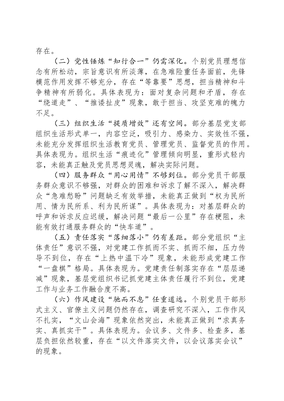 2024年度组织生活会整改情况报告为深入贯彻落实习近平新时代中国特色社会主义思想,巩固拓展学习贯彻习近平新时代中国特色社会主义思想主题教育成果,推动全面从严治党向纵深发展,根据上级党委关于召开2024年度基层党组织组织生活会的统一部署,我公司党委于202X年X月X日至X月X日召开了年度组织生活会。会后,公司党委高度重视查摆出的问题,坚持问题导向、目标导向、结果导向相统一,制定切实可行的整改方案,扎实推进整改落实工作。现将整改情况报告如下。一、聚焦问题,精准画像:组织生活会问题查摆回顾本次组织生活会紧紧围绕“强化党性修养,提升组织活力服务企业高质量发展”主题,坚持“刀刃向内”的自我革命精神,力戒形式主义、官僚主义,真正把问题找准、把根源挖深。我们摒弃了“蜻蜓点水”式的表面文章,避免了“隔靴搔痒”式的空泛批评,力求呈现问题“原生态”,力透问题“病灶层”。会前通过“线上+线下”相结合的方式,广泛征求党员、群众意见建议,发放调查问卷,开展个别访谈,设置意见箱,开通电子邮箱,多渠道、多角度了解基层党员和群众的真实想法和诉求,收集到有效意见建议XXX条。会上,各级党组织和党员领导干部聚焦“六个方面”,深入查摆问题,具体包括:(一)理论学习“入脑入心”程度有待加强。部分党员存在理论学习“碎片化”、“浅表化”现象,学习主动性不足,对习近平新时代中国特色社会主义思想的深刻内涵理解不够透彻,未能有效将理论学习成果转化为指导实践、推动工作的强大动力。具体表现为:对新理论、新思想的学习理解存在“温差”,学习内容与实际工作结合不够紧密,学用脱节现象仍然存在。(二)党性锤炼“知行合一”仍需深化。个别党员理想信念有所松动,宗旨意识有所淡薄,在急难险重任务面前,先锋模范作用发挥不够充分,存在“等靠要”思想,担当精神和斗争精神有所弱化。具体表现为:面对复杂问题和矛盾,存在“绕道走”、“推诿扯皮”现象,敢于担当、攻坚克难的魄力不足。(三)组织生活“提质增效”还有空间。部分基层党支部组织生活形式单一,内容空泛,吸引力、感染力、实效性不强,未能充分发挥组织生活教育党员、管理党员、监督党员的作用。具体表现为。组织生活“痕迹化”管理倾向明显,重形式轻内容,未能真正触及党员思想灵魂,解决实际问题。(四)服务群众“用心用情”不够到位。部分党员干部服务群众意识不够强,对群众的困难和诉求了解不深入,解决群众“急难愁盼”问题缺乏有效举措,未能真正做到“权为民所用、情为民所系、利为民所谋”。具体表现为:对基层群众的呼声和诉求反应迟缓,解决问题“最后一公里”存在梗阻,未能有效打通服务群众的“快车道”。(五)责任落实“落细落小”仍有差距。部分党组织“主体责任”意识不强,对党建工作抓而不实、抓而不细,压力传导不到位,存在“上热中温下冷”现象,未能形成党建工作“一盘棋”格局。具体表现为。党建责任制落实存在“层层递减”现象,基层党组织书记抓党建主体责任履行不到位,党建工作与业务工作融合度不高。(六)作风建设“驰而不息”任重道远。个别党员干部形式主义、官僚主义问题仍然存在,调查研究不深入,工作作风不扎实,“文山会海”现象依然突出,未能真正做到“求真务实、真抓实干”。具体表现为。会议多、文件多、检查多,基层负担依然较重,存在“以文件落实文件,以会议落实会议”的现象。二、对症下药,靶向施策:整改落实工作主要举措针对查摆出的问题,公司党委坚持“当下改”与“长久立”相结合,制定了《XX国企2024年度组织生活会问题整改方案》,明确整改目标、整改内容、整改措施、责任分工和完成时限,确保整改工作落地见效。我们拒绝“头痛医头,脚痛医脚”的简单化处理,力求“追根溯源”,从体制机制层面寻找“病根”,开出“良方”。具体整改举措如下:(一)强化理论武装,筑牢思想根基。摒弃“填鸭式”、“灌输式”学习模式,创新学习方式方法,提升理论学习的吸引力和实效性。一是实施“理论学习提升工程”。建立“党委中心组领学、支部书记带学、党员自主研学”三级联动学习机制,组织开展“学习强国”学习竞赛、“主题党...