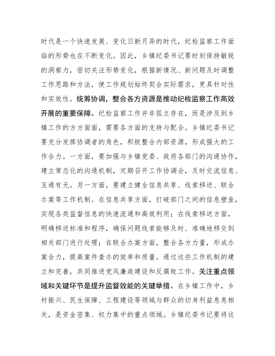 在乡镇纪委书记座谈会上的讲话今天,我们召开这个座谈会,目的就是要在纷繁复杂的形势中进一步明确前行方向,把大家的力量紧密凝聚起来,形成强大合力,推动乡镇纪检监察工作沿着高质量发展的轨道稳步迈进。下面,我讲几点意见。一、高瞻远瞩,加强全局谋划“不谋万世者,不足谋一时;不谋全局者,不足谋一域。”这句话深刻地揭示了全局谋划的重要性。对于乡镇纪委书记而言,站在全局的高度来审视和规划纪检监察工作,是实现有效监督、维护基层政治生态的关键所在。立足长远,制定清晰的工作规划是首要任务。乡镇的情况千差万别,每一个乡镇都有其独特的经济结构、人文环境和社会治理需求。这就要求乡镇纪委书记深入调研本乡镇的实际情况,充分考虑地域特点、发展阶段以及可能面临的风险挑战,在此基础上明确未来几年纪检监察工作的总体目标和具体任务。在规划制定过程中,要将短期任务与长期目标有机结合,短期任务是实现长期目标的基石,通过一个个短期任务的扎实推进,确保长期目标的稳步达成,从而保障工作的连续性和稳定性。同时,我们所处的时代是一个快速发展、变化日新月异的时代,纪检监察工作面临的形势也在不断变化。因此,乡镇纪委书记要时刻保持敏锐的洞察力,密切关注形势变化,根据新情况、新问题及时调整工作思路和方法,使工作规划始终契合实际需求,更具针对性和实效性。统筹协调,整合各方资源是推动纪检监察工作高效开展的重要保障。纪检监察工作并非孤立存在,而是涉及到乡镇工作的方方面面,需要各方面的支持与配合。乡镇纪委书记要充分发挥协调者的角色,积极整合内部资源,形成强大的工作合力。一方面,要加强与乡镇党委、政府各部门的沟通协作,建立常态化的沟通机制,定期召开工作协调会,及时交流信息、互通有无。另一方面,要建立健全信息共享、线索移送、联合办案等工作机制。在信息共享方面,打破部门之间的信息壁垒,实现各类监督信息的快速流通和高效利用;在线索移送方面,明确移送标准和程序,确保问题线索能够及时、准确地移交到相关部门进行处理;在联合办案方面,整合各方力量,形成办案合力,提高案件查办的效率和质量。通过这些工作机制的建立和完善,共同推进党风廉政建设和反腐败工作。关注重点领域和关键环节是提升监督效能的关键举措。在乡镇工作中,乡村振兴、民生保障、工程建设等领域与群众的切身利益息息相关,是资金密集、权力集中的重点领域。乡镇纪委书记要将这些领域作为监督的重点,紧盯资金使用、项目审批、干部作风等关键环节。在资金使用方面,加强对各类专项资金的监管,确保资金使用规范、安全、高效;在项目审批方面,严格审查审批程序,防止出现违规审批、权力寻租等问题;在干部作风方面,加强对干部在工作中的履职情况、服务态度等方面的监督,及时纠正不作为、慢作为、乱作为等问题。通过加强对重点领域和关键环节的监督检查,及时发现和纠正存在的问题,确保各项政策措施落到实处,维护群众的切身利益。二、明察秋毫,强化政治监督政治监督是纪检监察机关的首要职责,犹如一把高悬的利剑,时刻维护着党的政治纪律和政治规矩,确保党中央重大决策部署在基层落地生根。乡镇纪委作为基层政治监督的执行者,要擦亮政治监督“探头”,以敏锐的政治眼光和高度的政治责任感,履行好这一重要职责。一要加强对党的路线方针政策贯彻落实情况的监督。党中央关于乡村振兴、脱贫攻坚成果巩固、生态环境保护等重大决策部署,是关系到国家发展全局和人民福祉的重要举措。乡镇纪委要紧紧围绕党中央的这些重大决策部署,开展全方位、多层次的监督检查。通过查阅资料、实地走访、调查核实等方式,了解乡镇各部门和党员干部对政策的学习领会情况、执行落实情况。对于那些有令不行、有禁不止,做选择、搞变通、打折扣等行为,要严肃查处,绝不姑息迁就。只有这样,才能确保政令畅通,使党的路线方针政策在基层得到不折不扣的贯彻执行。二要加强对乡镇党委履行主体责任的监督。乡镇党委是基层各项工作的领导核心,履行全面从严治党主体责任是其应尽的职责。乡镇纪委要充分发挥监督作用,督促乡镇党委切实履行主体责任。定期与乡镇党委沟...