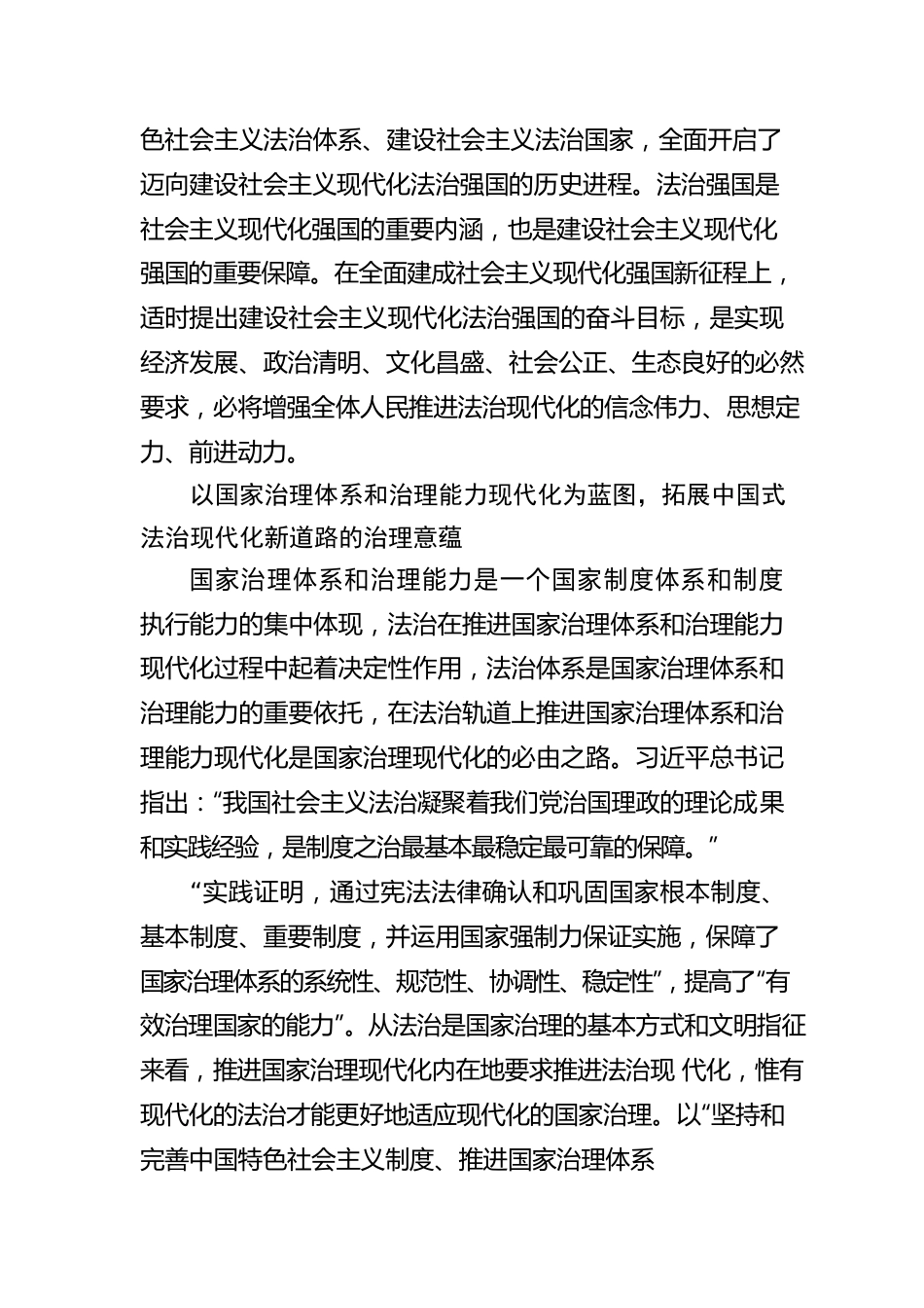 与时俱进拓展中国式法治现代化新道路2022-05-23习近平总书记在庆祝中国共产党成立一百周年大会上提出一个崭新理论命题,即“中国式现代化新道路”。这为我们洞察世界、理解实践、深化理论确立了新范式,为法学界提出并阐释“中国式法治现代化新道路”提供了科学理论和方法。站在新的历史起点上,我们要在以习近平同志为核心的党中央坚强领导下,坚持以习近平新时代中国特色社会主义思想为指引,深刻把握中国式法治现代化的新内涵新要求,与时俱进地多维度拓展中国式法治现代化新道路。以建设社会主义现代化法治强国为目标,拓展中国式法治现代化新道路的目标指向法治是国家强盛的重要标志,展示着现代国家的核心竞争力和国泰民安的社会风貌。在一个现代化强国中,法治成为国家和社会的核心价值,成为国家和社会治理的基本方式,成为支撑国家兴旺发达的强大力量;全社会信仰法治、尊崇法治、坚守法治;宪法具有极大权威,法律具有普遍实效,任何组织和个人都自觉在宪法法律范围内活动;人权和公民权利得到切实尊重和保障,公权力受到有效制约和监督;在国际关系和全球治理中拥有公认的话语权和规则制定权。党的十八大以来,党中央明确提出全面依法治国、建设中国特色社会主义法治体系、建设社会主义法治国家,全面开启了迈向建设社会主义现代化法治强国的历史进程。法治强国是社会主义现代化强国的重要内涵,也是建设社会主义现代化强国的重要保障。在全面建成社会主义现代化强国新征程上,适时提出建设社会主义现代化法治强国的奋斗目标,是实现经济发展、政治清明、文化昌盛、社会公正、生态良好的必然要求,必将增强全体人民推进法治现代化的信念伟力、思想定力、前进动力。以国家治理体系和治理能力现代化为蓝图,拓展中国式法治现代化新道路的治理意蕴国家治理体系和治理能力是一个国家制度体系和制度执行能力的集中体现,法治在推进国家治理体系和治理能力现代化过程中起着决定性作用,法治体系是国家治理体系和治理能力的重要依托,在法治轨道上推进国家治理体系和治理能力现代化是国家治理现代化的必由之路。习近平总书记指出:“我国社会主义法治凝聚着我们党治国理政的理论成果和实践经验,是制度之治最基本最稳定最可靠的保障。”“实践证明,通过宪法法律确认和巩固国家根本制度、基本制度、重要制度,并运用国家强制力保证实施,保障了国家治理体系的系统性、规范性、协调性、稳定性”,提高了“有效治理国家的能力”。从法治是国家治理的基本方式和文明指征来看,推进国家治理现代化内在地要求推进法治现代化,惟有现代化的法治才能更好地适应现代化的国家治理。以“坚持和完善中国特色社会主义制度、推进国家治理体系和治理能力现代化”为驱动,法治现代化才能目标更加明确、路径更加清晰、重点更加突出、措施更加有力。我们要以国家治理现代化牵引法治现代化,让国家治理现代化的车轮与法治体系的轨道相契,在国家治理体系和治理能力深刻变革的过程中深度拓展中国式法治现代化新道路。以实现全体人民共同富裕为要务,拓展中国式法治现代化新道路的价值内涵“共同富裕是社会主义的本质要求,是中国式现代化的重要特征。”法治是助力和保障共同富裕的强大制度力量。法治建设必须积极回应共同富裕的法治需求,为实现共同富裕努力构建更高质量、更有效率、更加公平、更可持续、更为安全、更加良好的法治空间,发挥法治固共同富裕之根本、稳共同富裕之预期、利共同富裕之长远的保障作用。一是巩固和发展社会主义基本经济制度,为促进共同富裕提供制度保障。二是完善以机会公平、规则公平、权利公平为主体的社会公平法律制度,激励和保护全体人民勤劳创新致富,共同创造社会财富,共同分享发展成果。三是完整、准确、全面贯彻新发展理念,为创新发展、协调发展、绿色发展、开放发展、共享发展保驾护航,在高质量发展中促进共同富裕。四是在法治框架内合理调整收入分配关系,促进形成有利于扎实推动共同富裕的更加科学理性的收入分配秩序。五是构建和谐社会、建设平安中国、促进生态文明,为共同富裕创造充满活力、安定有序、人与自然和谐共生的良好法治环境。实现共同富裕...
