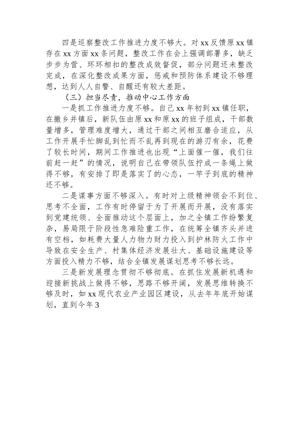 换届专题民主生活会个人对照剖析材料今年乡镇换届,选配出一批忠诚干净担当的好干部和结构优功能强的好班子,能为乡村振兴战略全面实施提供坚强组织保证,按照县委组织部要求,在换届前召开“严守换届纪律、服从组织安排,确保换届风清气正”为主题的专题民主生活会,下面我就任期以来个人学习、工作作如下剖析:一、存在的突出问题(一)学深悟透习近平新时代中国特色社会主义思想方面一是理论学习深度和广度不够。对习近平新时代中国特色社会主义思想和党中央大政方针学习理解不够透彻,没有完全融会贯通,能够同班子成员一道相互交流、相互促进,但对一些热点、焦点问题缺乏深层次互动和思想交锋,深入消化吸收不够,自学偏重于结合当前护林防火、疫情防控方面局部学习,学习内容范围不宽泛,学习连续性、系统性、全面性不够,学思用没有贯通,知信行不统一。二是营造浓厚学习风气不够。自身“班长”作用发挥不够明显,组织班子成员、职工干部开展学习时,学习方法形式和手段缺乏创新,前期存在以会议落实会议精神情况,一定程度上影响了学习的氛围和学习积极性。三是学习效果转化不够明显。能坚持将学习摆在重要位置,但是理论入脑入心,成果转化上还不够,出现了理论体系把握上和“融汇贯通”运用上不相适应。对待理论学习,更多满足于片面地引用个别原理,而不能有效与实际工作紧密结合起来,如在护林防火工作中,虽然在“九单合一”张贴,“多村联动”演练上有所创新,但更多按照县整治办和相关职能部门的安排指导推进,对中央和省州县政策研究不够深入,工作思维开拓不够,结合理论创新性开展工作仍有差距。(二)落实全面从严治党,带头严守政治纪律和政治规矩方面一是作风建设还有差距,自觉执行中央八项、省州十项和县委九项规定不够严格。主要精力放在各项业务工作上,对严谨工作作风抓得不够,对中央八项、省州十项和县委九项规定的精神理解得不够透彻,未掌握精髓,学以致用能力欠佳,在组织开展村集体经济调研工作时,工作指导和督促不够深入,有时达不到预期效果,工作安排部署、上级相关精神落实的会议仍然较多较长。二是对干部管理不够严格。好人主义思想较浓,会上讲得硬,实际执行软,对各项工作分管负责同志要求不严工作安排部署多、跟踪落实少,管理松懈,纪律要求不够严格,对干部工作上出现的问题,没有及时提醒到位,造成部分干部工作效率不高、工作不严谨、甚至工作懒散等问题。三是对干部思想教育、引导不到位。在为职工干部讲廉政专题党课时有简单完成组织任务的思想,导致部分干部对党纪党规理解片面,对干部党的思想教育没有做到逢会必讲。由于当前护林防火任务重、现代农业产业园区建设工期紧,临近换届,部分干部思想出现了松懈,没有及时作心理疏导。四是巡察整改工作推进力度不够大。对xx反馈原xx镇存在xx方面xx条问题,整改工作在会上强调部署多,缺乏步步为营、环环相扣的整改成效督促,部分问题还未整改完成,在深化整改成果方面,惩戒和预防体系建设不够理想,达到人人自警、自醒还有较大差距。(三)担当尽责,推动中心工作方面一是抓工作推进力度不够。自己xx年初到xx镇任职,在撤乡并镇后,新队伍由原xx和原xx的班子组成,干部数量增多,管理难度增大,通过干部之间相互磨合适应,从工作开展手忙脚乱到忙而不乱再到现在的游刃有余,花费了较长时间,期间工作推进也出现“上面催一催,我们往前赶一赶”的情况,说明自己在带领队伍拧成一条绳上做得不够,有安排了即是落实了的心态,一竿子到底的精神还不够。二是谋事方面不够深入。有时对上级精神领会不到位、思考不全面,工作有时停留于为了开展而开展,没有落实到党建统领、全面推动这个层面上,加之全镇工作纷繁复杂,易局限于阶段性急难险重工作,在统筹全镇齐头并进有空档,如耗费大量人力物力财力投入到护林防火工作中导致在安全生产、村集体经济发展壮大、基础设施建设等方面投入精力不够,结合全镇发展谋划思考不够长远。三是新发展理念贯彻不够彻底。在抓住发展新机遇和迎接新挑战上做得不够,思路不够开阔,发展思维转换不够及时,如xx现代农业产业园区建设,从去年年底开始谋划...