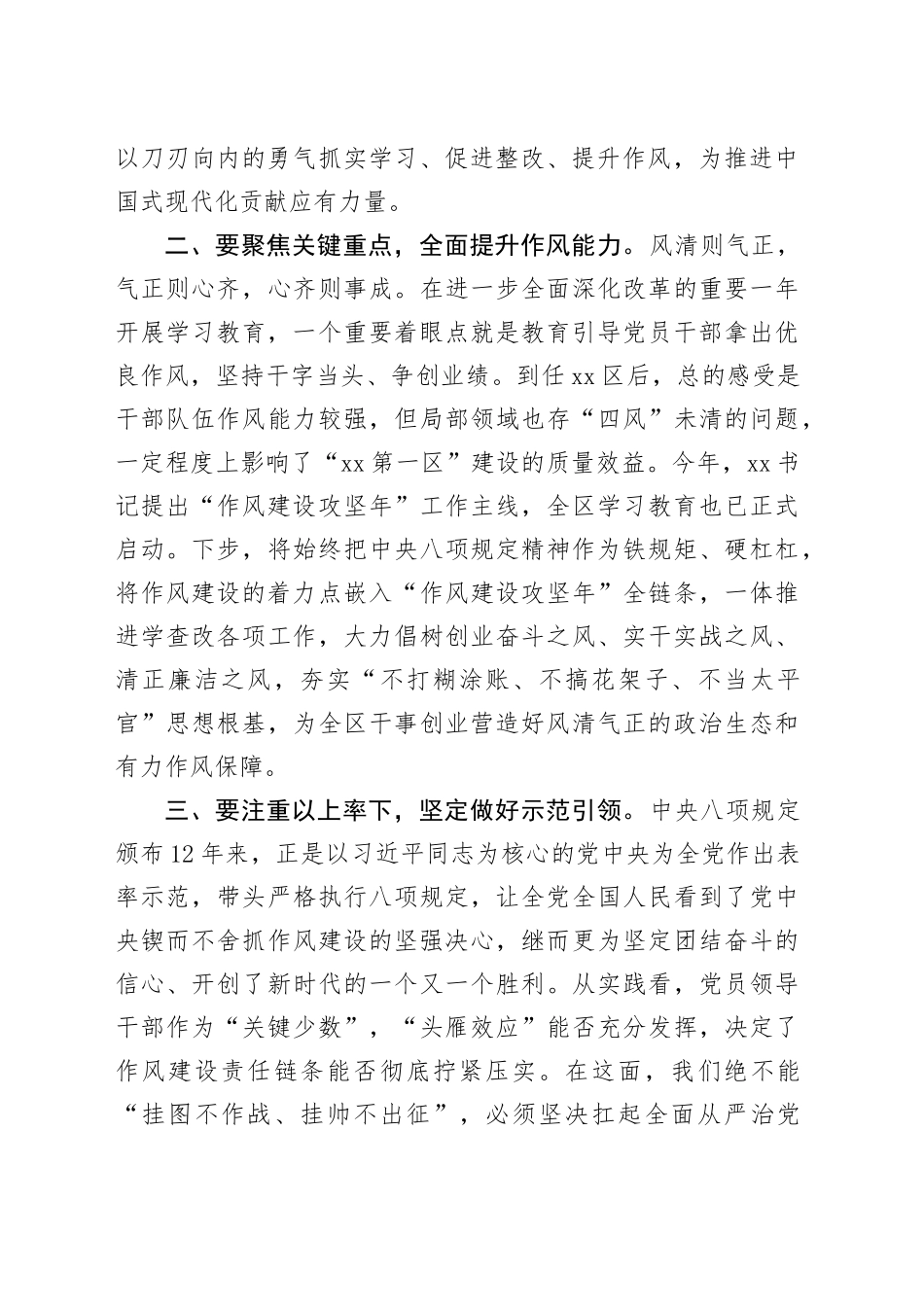 学员在市委党校专题研讨会上的发言提纲各位领导,同志们:在全党开展深入贯彻中央八项规定精神学习教育,是习近平总书记亲自点题、亲自部署的重要工作,也是今年党的建设工作的重要政治任务。上周,总书记在贵州考察时,对开展深入贯彻中央八项规定精神学习教育提出了明确要求。市委跟进举办读书班,个人的感受是很有必要、非常“解渴”。来党校报到后,我紧抓本次读书班“学习充电”机会,逐字逐句研读各项学习材料,认真聆听专家所作的辅导报告和各位领导同志们的发言,感到很受启发、很有收获。下面,结合所学所思和工作实际,围绕进一步学习好、贯彻好中央八项规定及其细则精神,谈四点体会。一、要深化思想认识,不断增强政治自觉。党的十八大以来,以习近平同志为核心的党中央时刻保持解决大党独有难题的清醒和坚定,以“金规铁律”的制定和执行,推动“一子落地、满盘皆活”,赢得了人民群众信任拥护。在以中国式现代化全面推进强国建设、民族复兴伟业的关键时期,党中央部署这次集中性学习教育,再次向全党宣示作风建设永远在路上,表明一锤接着一锤敲、一抓到底的坚定决心。作为党员领导干部,必须深刻认识学习教育对破除作风顽疾、净化政治生态、护航高质量发展的重大意义,从坚定拥护“两个确立”、坚决做到“两个维护”的政治高度,全面对标对表上级要求,坚持以刀刃向内的勇气抓实学习、促进整改、提升作风,为推进中国式现代化贡献应有力量。二、要聚焦关键重点,全面提升作风能力。风清则气正,气正则心齐,心齐则事成。在进一步全面深化改革的重要一年开展学习教育,一个重要着眼点就是教育引导党员干部拿出优良作风,坚持干字当头、争创业绩。到任xx区后,总的感受是干部队伍作风能力较强,但局部领域也存“四风”未清的问题,一定程度上影响了“xx第一区”建设的质量效益。今年,xx书记提出“作风建设攻坚年”工作主线,全区学习教育也已正式启动。下步,将始终把中央八项规定精神作为铁规矩、硬杠杠,将作风建设的着力点嵌入“作风建设攻坚年”全链条,一体推进学查改各项工作,大力倡树创业奋斗之风、实干实战之风、清正廉洁之风,夯实“不打糊涂账、不搞花架子、不当太平官”思想根基,为全区干事创业营造好风清气正的政治生态和有力作风保障。三、要注重以上率下,坚定做好示范引领。中央八项规定颁布12年来,正是以习近平同志为核心的党中央为全党作出表率示范,带头严格执行八项规定,让全党全国人民看到了党中央锲而不舍抓作风建设的坚强决心,继而更为坚定团结奋斗的信心、开创了新时代的一个又一个胜利。从实践看,党员领导干部作为“关键少数”,“头雁效应”能否充分发挥,决定了作风建设责任链条能否彻底拧紧压实。在这面,我们绝不能“挂图不作战、挂帅不出征”,必须坚决扛起全面从严治党“第一责任人”职责,首要确保自身学有质量、查有力度、改有成效,进一步教育引导“责任田”内党员干部在思想上划出红线、在行动上明确界限,以优良作风推动各项工作高质量发展。四、要突出常态长效,持续推动固本培元。习近平总书记强调,中央八项规定堤坝是好不容易筑起的,一定要倍加珍惜,不断巡堤检修。总的看,通过坚持不懈抓、久久为功治,全国各行业领域的享乐主义、奢靡之风已经得到有力遏制,形式主义、官僚主义也已得到重点整治,中央八项规定已经成为党员干部的行动自觉。但是我们也要清醒认识到,作风建设永远在路上,党和人民事业发展到什么阶段,党的作风建设就要推进到什么阶段,对顽固性、反复性问题绝不能有松劲歇脚心态。我们要秉持钉钉子精神,把贯彻中央八项规定精神融入日常、抓在经常,对隐形变异新动向时刻防范,对顶风违纪行为从严查处,同步抓好典型倡树、以案为鉴、容错纠错、建章立制等工作,持续推动管理领域内作风建设向纵深拓展,为xx市建设贡献新的更大力量。发言完毕,不当之处还请各位领导同志批评指正,谢谢!公文范文文库网站①【公文堂】:www.gongwentang.com公文范文文库网站②【公文堂】:www.gongwentang.com请各位用户务必收藏好以上两个网站,收藏好网址,终身可访问或下载全站公文范文客服微信:gongwentangkf微信公众号:【公文堂】