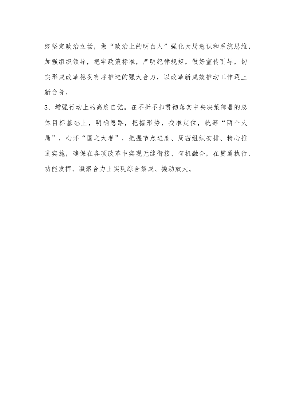 学习贯彻二十届三中全会心得体会发言材料从二十届三中公报一发布,我就迫不及待认真学习,7月15日至18日,二十届三中全会胜利举行。二十届三中全会政治站位高、改革思路清晰、部署明确、举措有力,二十届三中全会精神是我今后一个时期的学习重点。一、深刻领会全会的重大意义和基本内容。这次全会,是在以中国式现代化全面推进强国建设的关键时期举行的一次十分重要的会议。全会的举行,彰显了党中央将改革进行到底的坚强决心和强烈使命担当,是对新时代新征程举什么旗、走什么路的再宣示,具有重大而深远的意义。1、深入学习总目标。会议审议通过了《决定》,全会公报提出进一步全面深化改革工作的总目标是继续完善和发展中国特色社会主义制度,推进国家治理体系和治理能力现代化。2、深入学习分项目标。全会对14个关键领域的改革进行部署,一是构建高水平社会主义市场经济体制,二是健全推动经济高质量发展体制机制,三是构建支持全面创新体制机制,四是健全宏观经济治理体系,五是完善城乡融合发展体制机制,六是完善高水平对外开放体制机制,七是健全全过程人民民主制度体系,八是完善中国特色社会主义法治体系,九是深化文化体制机制改革,十是健全保障和改善民生制度体系,十一是深化生态文明体制改革,十二是推进国家安全体系和能力现代化,十三是持续深化国防和军队改革,十是是提高党对进一步全面深化改革、推进中国式现代化的领导水平。3、深入学习完成时间、完成原则。全会要求到二〇三五年,全面建成高水平社会主义市场经济体制,围绕2035年目标提出七个聚焦,要聚焦构建高水平社会主义市场经济体制,聚焦发展全过程人民民主,聚焦建设社会主义文化强国,聚焦提高人民生活品质,聚焦建设美丽中国,聚焦建设更高水平平安中国,聚焦提高党的领导水平和长期执政能力,继续把改革推向前进。到二〇二九年中华人民共和国成立八十周年时,完成本决定提出的改革任务。全会公报提出三个“更加注重”更加注重系统集成,更加注重突出重点,更加注重改革实效。全会公报提出改革六个原则:坚持党的全面领导、坚持以人民为中心、坚持守正创新、坚持以制度建设为主线、坚持全面依法治国、坚持系统观念等原则。二、切实领会全会精神,切实把握好本职工作。1、增强思想上的高度自觉。我会主动加强理论学习,把学习贯彻习近平新时代中国特色社会主义思想、学习贯彻党的XX大和二十届三中全会精神、学习贯彻习近平总书记关于改革重要论述和指示批示精神结合起来。真正学思践悟、学懂弄通,在学习中强化信仰信念信心,深刻领会、准确把握“两个确立”的决定性意义。2、增强贯彻上的高度自觉。改革是检验我们党性原则、纪律规矩、格局境界、担当作为的试金石。我会自觉涵养对党忠诚的品格,始终坚定政治立场,做“政治上的明白人”强化大局意识和系统思维,加强组织领导,把牢政策标准,严明纪律规矩,做好宣传引导,切实形成改革稳妥有序推进的强大合力,以改革新成效推动工作迈上新台阶。3、增强行动上的高度自觉。在不折不扣贯彻落实中央决策部署的总体目标基础上,明确思路,把握形势,找准定位,统筹“两个大局”,心怀“国之大者”,把握节点进度、周密组织安排、精心推进实施,确保在各项改革中实现无缝衔接、有机融合,在贯通执行、功能发挥、凝聚合力上实现综合集成、撬动放大。