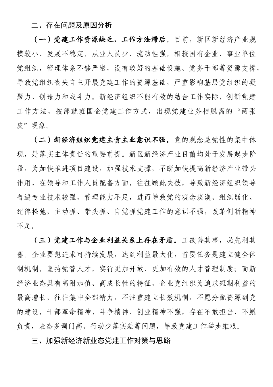 目录1.加强新经济新业态条件下的基层党建工作的调查与思考32.“四举措”破解新业态新就业群体党建工作难题....................73.关于新业态和新就业群体党建工作存在问题及对策建议.............104.关于加强新业态新就业群体党建工作的若干措施...................125.推进新业态、新就业群体党建工作的探索与思考...................156.关于加强新业态新就业群体党建工作的思考.......................257.怎样做好新业态就业群体党建工作...............................288.破解新业态党建工作难题需活用“四法”.........................309.“五个注重”推进新业态新就业群体党建工作提质增效.............3310.多举措做好新业态、新就业群体党建工作........................3611.浅谈如何提升新业态、新就业群体党建工作......................3812.推动新业态新就业群体党建工作破题增效........................4013.新业态、新就业群体党建工作存在的问题及对策建议..............4514.“四举措”做好新业态新就业群体党建工作......................4815.新业态新就业群体党建工作应避免形式主义......................51加强新经济新业态条件下的基层党建工作的调查与思考近期,我们开展了如何加强新经济新业态条件下的基层党建工作调研活动,通过召开座谈会,到有关单位和施工现场调查走访,电话咨询等方式,对新区新经济产业基本情况、存在问题、原因及对策进行了深入研究,积极探索如何在新经济新业态领域开展党的建设工作。一、x新经济产业现状几年来,x紧密结合建设发展实际,聚焦特色小镇、大数据产业、商业综合体、生命健康产业园等一批已落地或达成落地意向的项目,积极探索如何在新经济新业态条件下开展党的建设工作。通过实地考察创新空间、中国供销农产品物流园、大数据产业园等项目的建设情况,与项目负责人、党员、一线工作人员谈话,深入了解了新经济产业结构、机构设置、产业功能及党组织现状等情况。一是以旅游行业投资及旅游电子商务平台开发为主的必爱旅行网,以打造全国首家最大的地图大数据交易中心和西北地图云基地的中科宇图两家企业已落地办公,但党员数量不足,目前尚未建立党组织;二是新农商大市场有限公司已成立党支部,但组织工作推进较为缓慢;三是华为云计算中心主体完成,挂靠于管委会机关党支部开展党建工作;四是x冠昊生物科技公司规划建设“生命健康产业园”、服务新经济企业的创业孵化中心基地以及大学生创业创新小镇等项目正在建设阶段,流动党员数量较多,目前,由项目负责单位党组织负责流动党员管理。二、存在问题及原因分析(一)党建工作资源缺乏,工作方法滞后。目前,新区新经济产业规模较小、发展不稳定,从业人员少、流动性强,相较国有企业、事业单位党组织,管理体系不够严密,没有较好的基础设施、党务干部等资源支撑,导致党组织丧失自主开展党建工作的资源基础,严重影响基层党组织的凝聚力、创造力和战斗力。新经济组织不能有效的结合工作实际,创新党建工作方法,按部就班国企党建工作方式,出现党建业务相脱离的“两张皮”现象。(二)新经济组织党建主责主业意识不强。党的观念是党性的集中体现,是落实主体责任的重要前提。新区新经济产业目前均处于发展起步阶段,为加快推进项目建设,加强技术支撑,不断加快提高新经济产业带头作用,在领导和工作人员配备方面,往往顾此失彼,导致新经济组织领导普遍专业技术较强,管理能力不足,进而导致党的观念淡漠、组织弱化、纪律松弛,主动抓、带头抓、自觉抓党建工作的意识不强,改革创新精神不足。(三)党建工作与企业利益关系上存在矛盾。工欲善其事,必先利其器。企业要想追求可持续发展,达到利益最大化,首要任务是建立健全体制机制,坚持党管人才,实行更加开放、更加有效的人才管理制度;而新经济业态具有高附加值、高成长性的特征,企业党组织为追求短期利益的最高增长,往往集中全部精力,不注重建立长效机制,不愿分配资源到党的建设,干部革命精神、斗争精神、创业精神不强,存在不敢担当、不愿负责,表态多调门高、行动少落实差等问题,导致党建工...