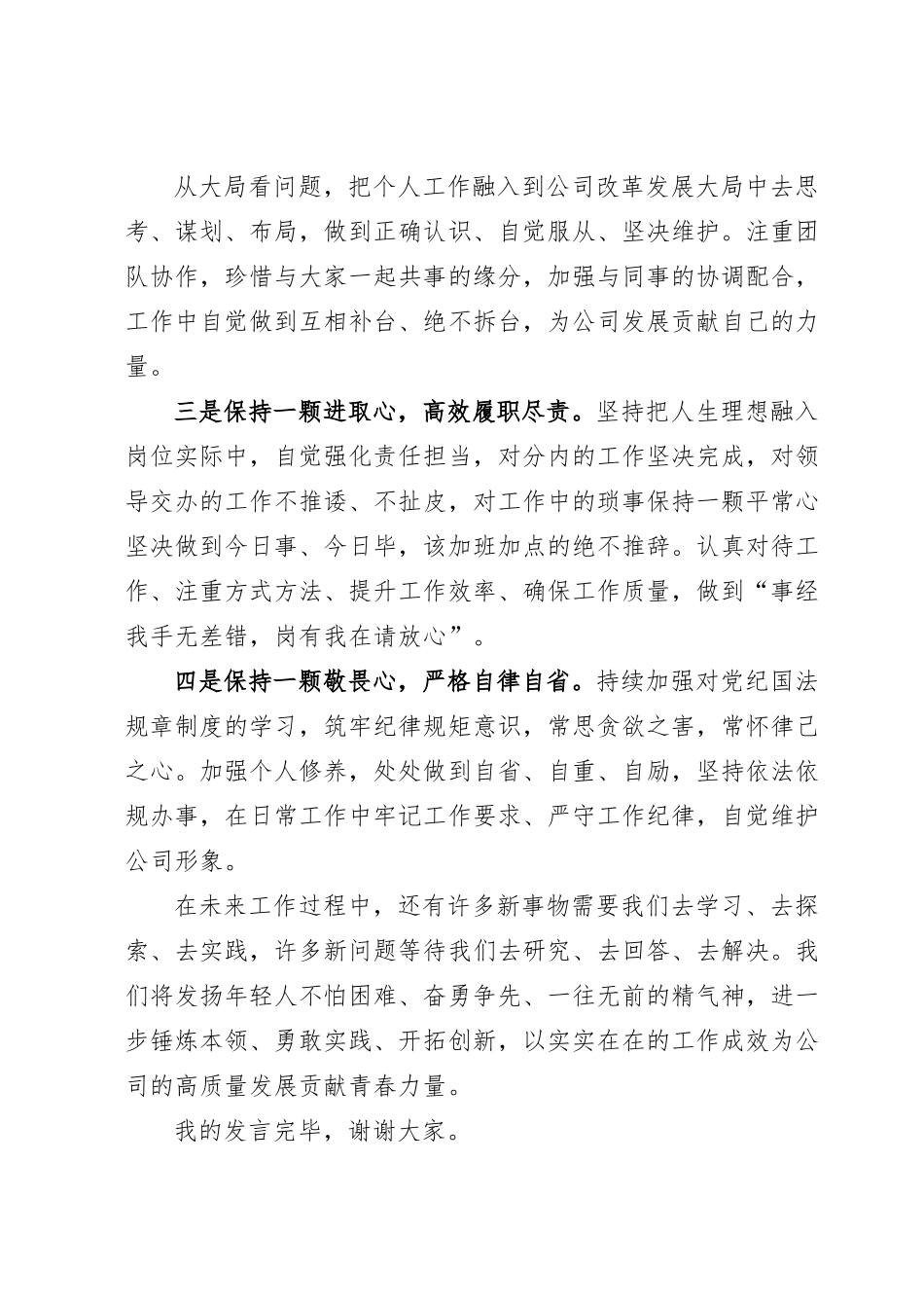 入职培训结业仪式学员代表发言稿尊敬的各位领导、各位前辈、各位同事:大家下午好!我是***,非常荣幸能够作为学员代表在这里发言。首先,我对公司给我们大家搭建了这样一个相互交流、取长补短的互动平台,提供了这样一次增长知识、提高素质的学习机会表示衷心感谢。同时,也向精心组织、辛勤筹备此次培训的领导、前辈们表示衷心感谢。培训期间,我们系统学习了公司概况、企业文化、发展历程基本制度、战略规划等知识,领导们的谆谆教诲、前辈们的经验分享、小伙伴的精彩交流……这些都让我深受启发,为我今后的工作指明了方向,我将认真学习领会培训精神,勤奋工作、主动担当,迅速适应新角色、新岗位,并努力在平凡的岗位上创造不平凡的成绩。在此,我代表2023年新入职员工向公司表态如下:一是保持一颗学习心,锤炼过硬本领。一方面,主动加强业务学习,结合岗位实际,向领导同事学、向先进典型学、向文件资料学,迅速了解岗位工作职责和工作流程,迅速适应岗位工作需要,注重学用结合,坚持在干中学、在学中干,及时总结工作经验,提升工作能力。另一方面,主动加强政治学习,深入学习习近平新时代中国特色社会主义思想,提升自身思想理论水平,对标优秀党员查漏补缺,做到学思想贯通、知信行合一。二是保持一颗事业心,自觉维护公司大局。学会从大局看问题,把个人工作融入到公司改革发展大局中去思考、谋划、布局,做到正确认识、自觉服从、坚决维护。注重团队协作,珍惜与大家一起共事的缘分,加强与同事的协调配合,工作中自觉做到互相补台、绝不拆台,为公司发展贡献自己的力量。三是保持一颗进取心,高效履职尽责。坚持把人生理想融入岗位实际中,自觉强化责任担当,对分内的工作坚决完成,对领导交办的工作不推诿、不扯皮,对工作中的琐事保持一颗平常心坚决做到今日事、今日毕,该加班加点的绝不推辞。认真对待工作、注重方式方法、提升工作效率、确保工作质量,做到“事经我手无差错,岗有我在请放心”。四是保持一颗敬畏心,严格自律自省。持续加强对党纪国法规章制度的学习,筑牢纪律规矩意识,常思贪欲之害,常怀律己之心。加强个人修养,处处做到自省、自重、自励,坚持依法依规办事,在日常工作中牢记工作要求、严守工作纪律,自觉维护公司形象。在未来工作过程中,还有许多新事物需要我们去学习、去探索、去实践,许多新问题等待我们去研究、去回答、去解决。我们将发扬年轻人不怕困难、奋勇争先、一往无前的精气神,进一步锤炼本领、勇敢实践、开拓创新,以实实在在的工作成效为公司的高质量发展贡献青春力量。我的发言完毕,谢谢大家。