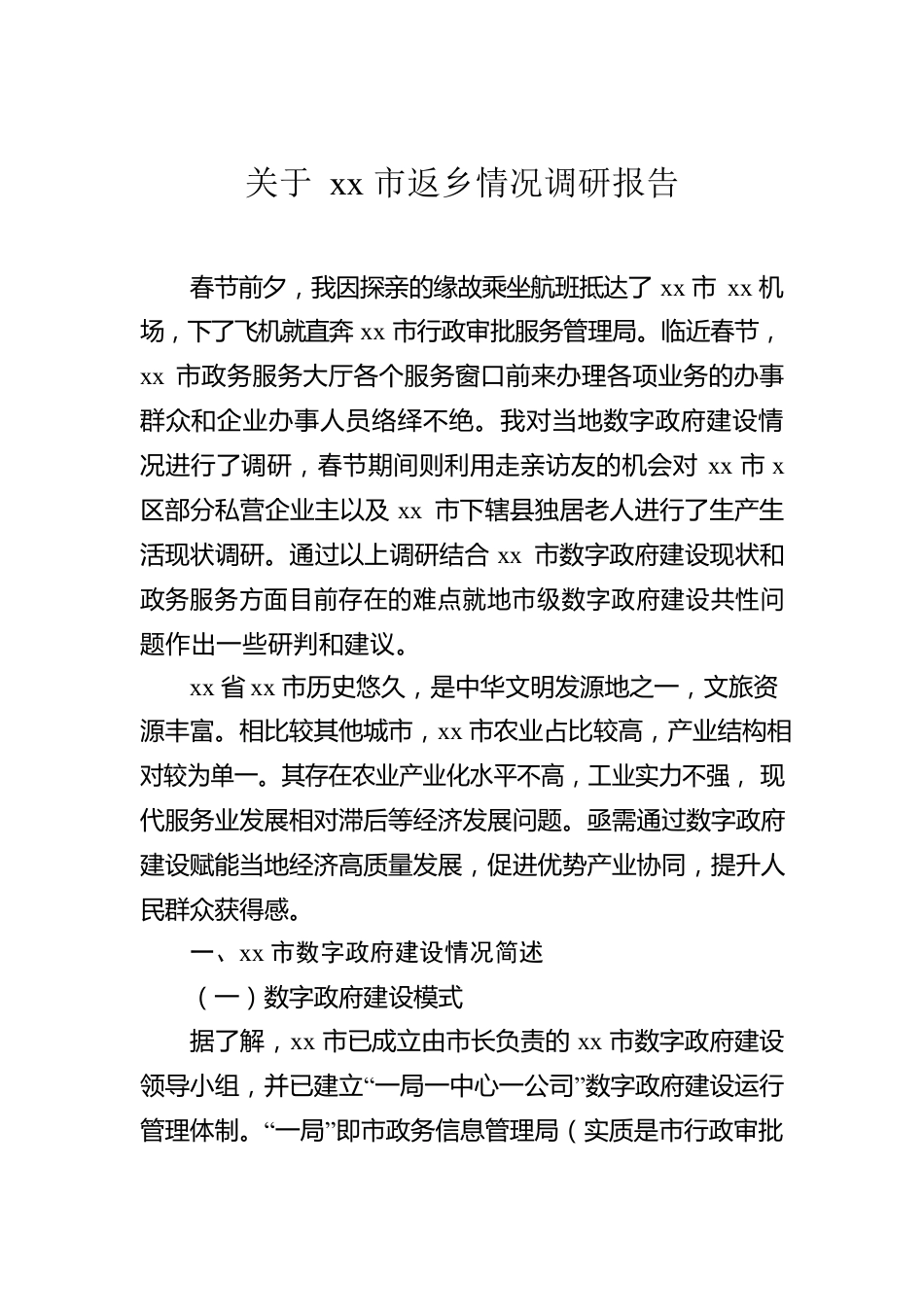 目录1...................................关于xx市返乡情况调研报告22.................增强基层工会工作的政治性先进性群众性8关于xx市返乡情况调研报告春节前夕,我因探亲的缘故乘坐航班抵达了xx市xx机场,下了飞机就直奔xx市行政审批服务管理局。临近春节,xx市政务服务大厅各个服务窗口前来办理各项业务的办事群众和企业办事人员络绎不绝。我对当地数字政府建设情况进行了调研,春节期间则利用走亲访友的机会对xx市x区部分私营企业主以及xx市下辖县独居老人进行了生产生活现状调研。通过以上调研结合xx市数字政府建设现状和政务服务方面目前存在的难点就地市级数字政府建设共性问题作出一些研判和建议。xx省xx市历史悠久,是中华文明发源地之一,文旅资源丰富。相比较其他城市,xx市农业占比较高,产业结构相对较为单一。其存在农业产业化水平不高,工业实力不强,现代服务业发展相对滞后等经济发展问题。亟需通过数字政府建设赋能当地经济高质量发展,促进优势产业协同,提升人民群众获得感。一、xx市数字政府建设情况简述(一)数字政府建设模式据了解,xx市已成立由市长负责的xx市数字政府建设领导小组,并已建立“一局一中心一公司”数字政府建设运行管理体制。“一局”即市政务信息管理局(实质是市行政审批服务管理局),负责全市数字政府建设的顶层设计、统筹协调和监督管理工作;“一中心”即市数字政府服务中心,归口行政审批服务管理局管理,负责全市政务信息数据的统一管理;“一公司”即市数字政府建设运营公司。xx省数字政府平台建设由省国资企业xx云时代公司统筹建设运营,地市数字政府建设公司即市云时代公司由省云时代公司和地市国资共同出资建设。(二)数字政府基础设施建设情况据了解,截至xxxx年底,市级业务系统共有xx个,其中已完成迁移上云的系统有xx个。以购买服务的方式委托省数字政府建设专用企业省云时代公司构建xx市政务专有云。自xxxx年,以市大数据中心(即xx市云时代公司)为政务云机房,建设市政务云平台;同步建设xx市信创云平台。全市电子政务外网网络基本建设完成,乡镇街道覆盖率xxx%,并覆盖部分行政村和社区。(三)数字政府建设发展状况据了解,目前xx市制定了数字政府建设三年计划《xx市数字政府建设规划(xxxx—xxxx年)》,按照省数字政府建设“一朵云、一张网、一平台、一系统、一城墙”的总体要求,依托原有xxxx年和xxxx年建设的智慧城市一期二期的智慧xx平台及业务应用系统开展其自身数字政府建设。市级政务信息资源共享交换平台已建成。目前关于数字政府建设范畴的各种考核办法规章制度均已制定。由市云时代公司承建的重点项目“领导驾驶舱”系统平台,目前做到政务和社会数据汇总。xxxx年开始筹建的一网统管的市重点项目大数据指挥中心,拟实现跨层级跨部门业务数据集中管理。市云网指挥中心和市大数据管理中心合并办公。xxxx年之前,数字政府建设项目招标一般是市云时代公司代管。政务移动办公平台-x政通APP在地市级各委办局层面目前并未普及应用。二、xx市数字政府建设目前存在的问题(一)组织形态上整体统筹力度不够从上述建设模式可以看出,跟其他部分省市由专设的或由市发改委或经信局代管的政务服务和大数据管理局主抓数字政府整体建设不同,xx省各地市统一由行政审批服务管理局(市政务信息管理局)下设数字政府部门主抓数字政府建设。由简化行政审批服务流程切入数字政府建设,势必会侧重优化行政审批职能,但数字政府建设涉及到政府决策、社会治理、政务服务的方方面面,必须统筹兼顾。目前xx市不同业务层面的数字政府建设职能还分散在市发改委和工信局等委办局分管职能中,整体数字政府建设尚未形成合力,做不到一张蓝图绘到底。数字政府新建项目一般是各委办局提业务需求直接市政府上会,经批准后财政局财政预算拨付才会到行政审批服务管理局数字政府部门,接下来是执行阶段,无法统筹规划数字政府整体建设。(二)客观原因导致集约建设被打破在国务院对地市层面整体督查督办后,审计到市数字政府建设项目由市云时代公司单一来源建设,遂从去年九月份开始变为每一业务系统公开招投标进行项目建设采购。这样就带来...