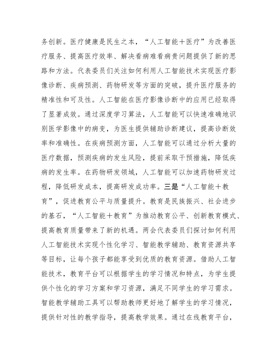 2025年两会专题党课:“人工智能+”产业发展与党员担当同志们:2025年全国两会在全面深化改革、推进中国式现代化的关键时期胜利召开,这是一次凝聚共识、汇聚力量、擘画未来的重要盛会。两会期间,众多关乎国计民生、科技创新、产业发展的议题成为焦点,其中“人工智能+”产业发展备受瞩目。随着科技的迅猛发展,人工智能已成为推动经济社会变革的重要力量,为各行业带来了前所未有的机遇与挑战。作为党员,我们肩负着时代赋予的使命,必须深入学习两会精神,积极投身“人工智能+”产业发展的浪潮,为推动科技创新、实现高质量发展贡献力量。一、xxxx年两会聚焦“人工智能+”产业发展(一)两会对人工智能产业的高度重视。在今年的两会上,人工智能成为高频词汇,代表委员们围绕人工智能的发展前景、应用场景、政策支持等方面展开了热烈讨论。从政府工作报告到各专门委员会的审议,都将人工智能视为推动产业升级、培育新质生产力的关键领域。这充分体现了党和国家对人工智能产业的高度重视,也表明人工智能在国家发展战略中的重要地位日益凸显。政府工作报告明确提出要加快发展新质生产力,人工智能作为新质生产力的重要组成部分,将迎来更多的政策支持和资源倾斜。在科技创新、产业升级、民生改善等方面,人工智能都将发挥重要作用,成为推动经济社会发展的新引擎。(二)“人工智能+”在各领域的讨论热点。一是“人工智能+制造业”。推动智能制造升级制造业是国家经济的命脉,“人工智能+制造业”是实现制造业转型升级的重要途径。两会期间,代表委员们热议如何利用人工智能技术提升制造业的智能化水平,实现生产过程的自动化、数字化和智能化控制。通过引入人工智能算法和机器人技术,企业可以优化生产流程,提高生产效率,降低生产成本,增强产品质量和市场竞争力。例如,在汽车制造领域,人工智能可以应用于汽车设计、生产制造、质量检测等环节。通过人工智能辅助设计软件,工程师可以更快地设计出更具创新性和性能的汽车产品;在生产制造过程中,机器人可以完成高精度的装配任务,提高生产效率和产品质量;利用人工智能技术进行质量检测,可以及时发现产品缺陷,降低次品率。二是“人工智能+医疗”,助力医疗服务创新。医疗健康是民生之本,“人工智能+医疗”为改善医疗服务、提高医疗效率、解决看病难看病贵问题提供了新的思路和方法。代表委员们关注如何利用人工智能技术实现医疗影像诊断、疾病预测、药物研发等方面的突破,提升医疗服务的精准性和可及性。人工智能在医疗影像诊断中的应用已经取得了显著成效。通过深度学习算法,人工智能可以快速准确地识别医学影像中的病变,为医生提供辅助诊断建议,提高诊断效率和准确性。在疾病预测方面,人工智能可以通过分析大量的医疗数据,预测疾病的发生风险,提前采取干预措施,降低疾病的发生率。在药物研发领域,人工智能可以加速药物研发过程,降低研发成本,提高研发成功率。三是“人工智能+教育”,促进教育公平与质量提升。教育是民族振兴、社会进步的基石,“人工智能+教育”为推动教育公平、创新教育模式、提高教育质量带来了新的机遇。两会代表委员们探讨如何利用人工智能技术实现个性化学习、智能教学辅助、教育资源共享等目标,让每个孩子都能享受到优质的教育资源。借助人工智能技术,教育平台可以根据学生的学习情况和特点,为学生提供个性化的学习方案和学习资源,满足不同学生的学习需求。智能教学辅助工具可以帮助教师更好地了解学生的学习情况,提供针对性的教学指导,提高教学效果。通过在线教育平台,优质的教育资源可以打破地域限制,实现共享,让偏远地区的学生也能享受到与城市学生同等的教育资源。四是“人工智能+金融”,提升金融服务效能与风险防控能力。金融是现代经济的核心,“人工智能+金融”为提升金融服务效能、创新金融产品和服务、加强金融风险防控提供了有力支持。代表委员们聚焦如何利用人工智能技术优化金融服务流程、提高金融风险识别和预警能力,保障金融市场的稳定运行。在金融服务方面,人工智能可以实现客户身份识别、风险评估、信贷审批等业务的自动化处理,提高服务效...