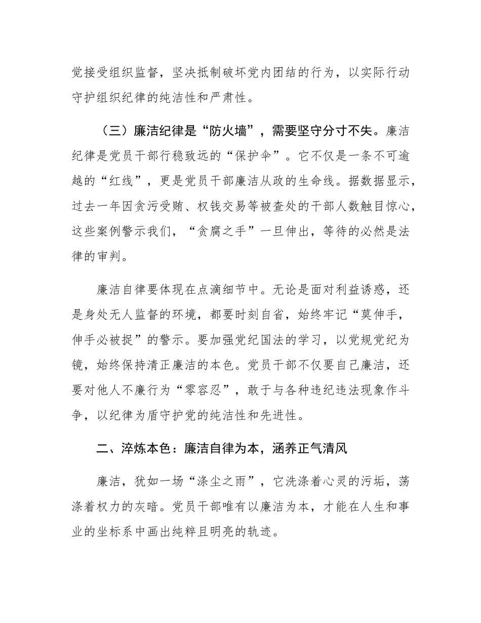廉洁党课:激扬正气、淬炼本色、践行使命同志们:今天,我们聚集一堂,共同探讨“激扬正气、淬炼本色、践行使命”的主题。这不仅是一场廉洁党课,更是一场心灵洗礼,是一场以党性为笔、以忠诚为墨的精神书写。让我们以理想为帆、以纪律为舵、以行动为舟,乘风破浪,共同驶向廉洁从政的新境界。一、激扬正气:纪律挺在前,筑牢廉政底线纪律,犹如一把“定海针”,是党员干部行稳致远的根本。它不仅是内心的信仰,更是外在的约束。在这片守正创新的热土上,我们必须以纪律为核心,把党的政治、组织和廉洁纪律一体贯穿到具体工作中去。(一)政治纪律是“生命线”,需要时刻坚定如初。政治纪律是党的纪律之基,是对党员干部政治信仰、立场和行为的核心约束。在复杂的国际国内形势下,坚守政治纪律如同守护灯塔的光亮。据统计,因违反政治纪律而被处分的案例逐年攀升,这不仅敲响了警钟,更提醒我们要把增强“四个意识”、坚定“四个自信”、做到“两个维护”内化于心、外化于行。坚守政治纪律不是口号,而是实践的要求。要对错误思潮保持敏锐,对各种形式的“政治微腐败”零容忍。从思想深处清理个人主义、地方主义和宗派主义的残余,坚持做到在大是大非面前旗帜鲜明,在原则立场上寸步不让。每一名党员都必须做到对党忠诚,为党分忧,时刻保持政治立场上的坚定性和行动上的自觉性。(二)组织纪律是“主心骨”,需要坚决落实到位。组织纪律连接着全党的思想与行动,是确保党的路线方针政策落实的“命脉”。它既是约束个体行为的“外在规则”,也是党员干部政治品格的内在体现。违规违纪案例中,约xx%源自组织纪律的松散,这提醒我们要严格执行民主集中制,确保决策的科学性与民主性。当前,个别党员干部漠视组织程序,存在阳奉阴违、搞“小圈子”等问题,这些行为严重破坏了组织的严肃性与权威性。我们要以身作则,把“服从组织安排”当作天职,不折不扣地执行组织交办的任务。同时,必须不断增强组织观念,自觉接受组织监督,坚决抵制破坏党内团结的行为,以实际行动守护组织纪律的纯洁性和严肃性。(三)廉洁纪律是“防火墙”,需要坚守分寸不失。廉洁纪律是党员干部行稳致远的“保护伞”。它不仅是一条不可逾越的“红线”,更是党员干部廉洁从政的生命线。据数据显示,过去一年因贪污受贿、权钱交易等被查处的干部人数触目惊心,这些案例警示我们,“贪腐之手”一旦伸出,等待的必然是法律的审判。廉洁自律要体现在点滴细节中。无论是面对利益诱惑,还是身处无人监督的环境,都要时刻自省,始终牢记“莫伸手,伸手必被捉”的警示。要加强党纪国法的学习,以党规党纪为镜,始终保持清正廉洁的本色。党员干部不仅要自己廉洁,还要对他人不廉行为“零容忍”,敢于与各种违纪违法现象作斗争,以纪律为盾守护党的纯洁性和先进性。二、淬炼本色:廉洁自律为本,涵养正气清风廉洁,犹如一场“涤尘之雨”,它洗涤着心灵的污垢,荡涤着权力的灰暗。党员干部唯有以廉洁为本,才能在人生和事业的坐标系中画出纯粹且明亮的轨迹。(一)以“为民初心”校准权力坐标。权力是一把“双刃剑”,用得好是为民造福的利器,用得不好则成为自毁的利刃。据统计,约xx%的腐败案件与权力滥用相关,这提醒我们,必须以“为民初心”校准权力坐标。党员干部要树立“权力就是责任”的观念,始终将权力用于造福人民。要把公正用权、依法用权、廉洁用权的原则贯穿始终,确保权力运行符合制度规范。要以人民群众的满意度作为衡量权力使用的标准,不搞特权、不以权谋私,把一切权力行使置于阳光下,确保经得起组织的审查和历史的检验。(二)以“慎独慎微”铸牢自律防线。“慎独慎微慎初”是党员干部的自律箴言。廉洁不仅体现在公开场合的行为中,更体现在独处时的自我约束中。党员干部要学会在细节中发现风险,在初始试探中抵制诱惑,在无人监督时保持清醒。要通过学习党的理论政策、加强党性锤炼来夯实思想基础,以坚定的理想信念构筑拒腐防变的坚固防线。要养成警惕心,始终提醒自己“小问题不纠正,大问题难收场”,不让细小的疏忽演变为无法挽回的错误。(三)以“家风正气”守护廉洁根基。家风,是党员干部...