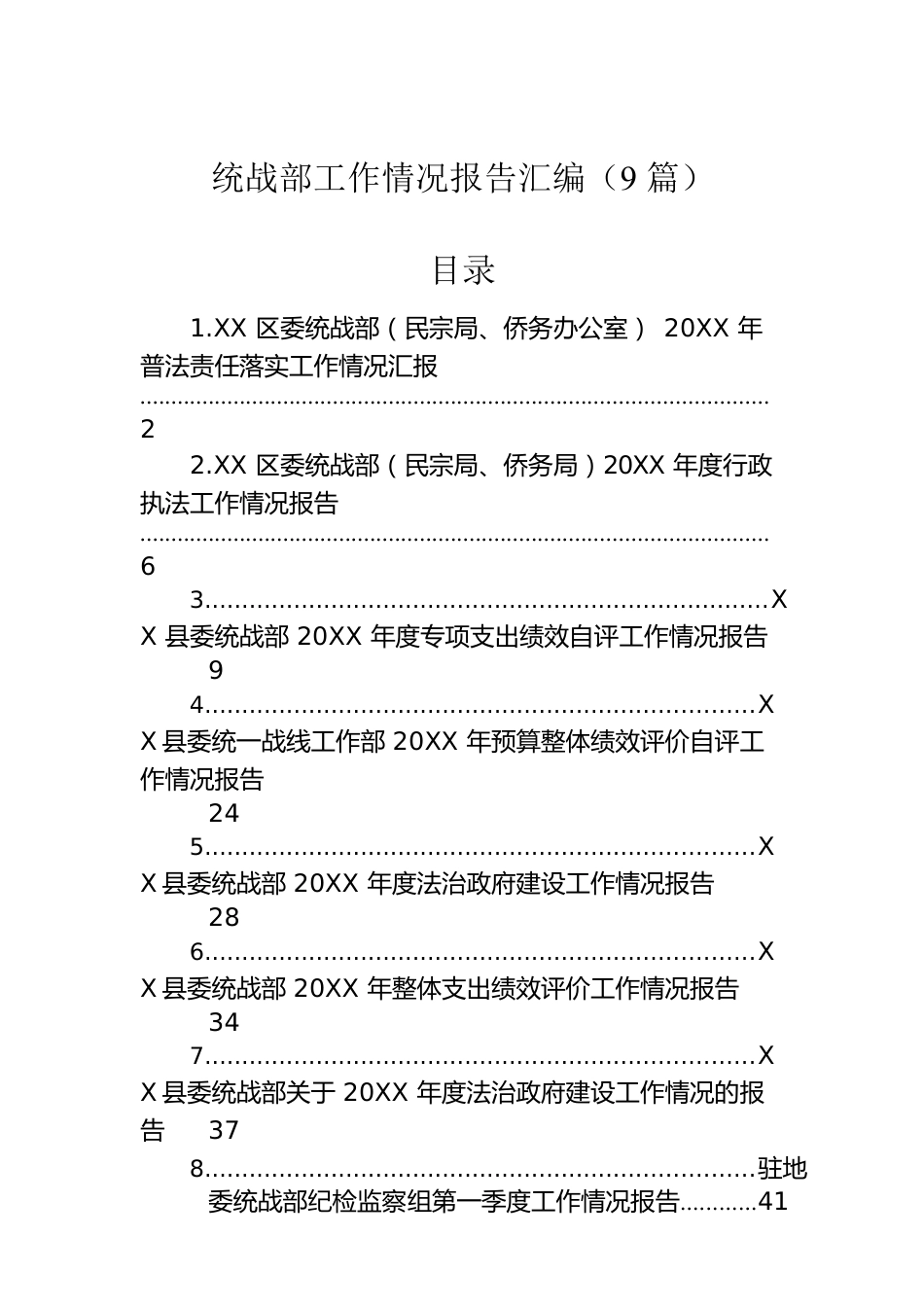 统战部工作情况报告汇编(9篇)目录1.XX区委统战部(民宗局、侨务办公室)20XX年普法责任落实工作情况汇报.....................................................................................................22.XX区委统战部(民宗局、侨务局)20XX年度行政执法工作情况报告.....................................................................................................63............................................................................XX县委统战部20XX年度专项支出绩效自评工作情况报告94..........................................................................XX县委统一战线工作部20XX年预算整体绩效评价自评工作情况报告245..........................................................................XX县委统战部20XX年度法治政府建设工作情况报告286..........................................................................XX县委统战部20XX年整体支出绩效评价工作情况报告347..........................................................................XX县委统战部关于20XX年度法治政府建设工作情况的报告378..........................................................................驻地委统战部纪检监察组第一季度工作情况报告............41XX区委统战部(民宗局、侨务办公室)20XX年普法责任落实工作情况汇报20XX年,为进一步健全和落实“谁执法谁普法”普法责任制,根据柳州市城中区委办公室、柳州市城中区政府办公室《城中区落实国家机关“谁执法谁普法”“谁主管谁普法”责任制实施方案(试行)》的通知(城中办发〔20XX〕14号),城中区《关于进一步落实国家机关普法责任清单制度的意见》要求,城中区委统战部(民宗局、侨务办公室)结合工作实际,认真开展20XX年“谁执法谁普法”普法责任制工作,全体干部职工牢固树立尊法、学法、守法、用法的理念,依法行政、依规办事,增强干部职工法治思维和法治能力。现将我部落实20XX年“谁执法谁普法”普法责任制情况报告如下:一、打造民族团结进步宣传阵地,开展宣教活动积极打造民族团结进步宣传阵地,建成中南街道民族融建广场、公街道民族团结连心、民族团结进步示范街区、♘♘河东街道清华坊社区民族同心小广场等民族团结进步宣传阵地,充分利用在群众中不断加强《民法典》《中华人民共和国宪法》《民族区域自治法》《城市民族工作条例》《广西壮族自治区少数民族语言文字工作条例》《中国公民民族成分管理办法》《宗教事务条例》《广西壮族自治区宗教事务办法》《中华人民共和国归侨侨眷权益保护法》等法律法规、民族宗教政策法规的宣传贯彻实施工作,向基层发出民族团结进步正能量声音,进一步为团结稳定鼓劲。二、利用各类宣传平台,做好宣教工作城中区委统战部充分利用各类宣传平台,开展普法、民族团结进步宣教工作。一是制作《城中区民族团结进步宣传片》,并在城中区政府办公楼电梯间播放,在机关单位中形成民族政策宣传常态化;面向社会印发民族宗教政策宣传折页、海报逾万份,提高宪法、民族政策法规和民族团结进步创建工作的知晓度。二是城中区委统战部通过政府门户网站、上级民宗部门官网、城中区微信公众号宣传宪法和民族政策法规、民族团结进步创建工作动态等,发布各类宣传稿近100篇。三是举办《统一战线工作条例》宣讲会。宣讲会邀请时任柳州市委常委、统战部部长向军为城中区干部职工授课,就新修订的《中国共产党统一战线工作条例》内容及新时期新形势下如何做好统一战线工作,铸牢中华民族共同体意识进行宣讲。通过宣讲活动,进一步充分发挥好党和政府团结、联系宗教界代表人士和少数民族群众的桥梁和纽带作用,铸牢中华民族共同体意识,推动统战、民族、宗教工作上新台阶。四是充分利用重要节庆契机发声,增强民族团结宣传效果。利用民族团结进步宣传月活动、“壮族三月三”活动,通过传统新闻媒体、微信公众号、门户网站等开展宣传,扩大民族政策法规的知晓率和社会影响力。利用“壮族三月三”和民族团结宣传月等节庆大力开展宣传,据...