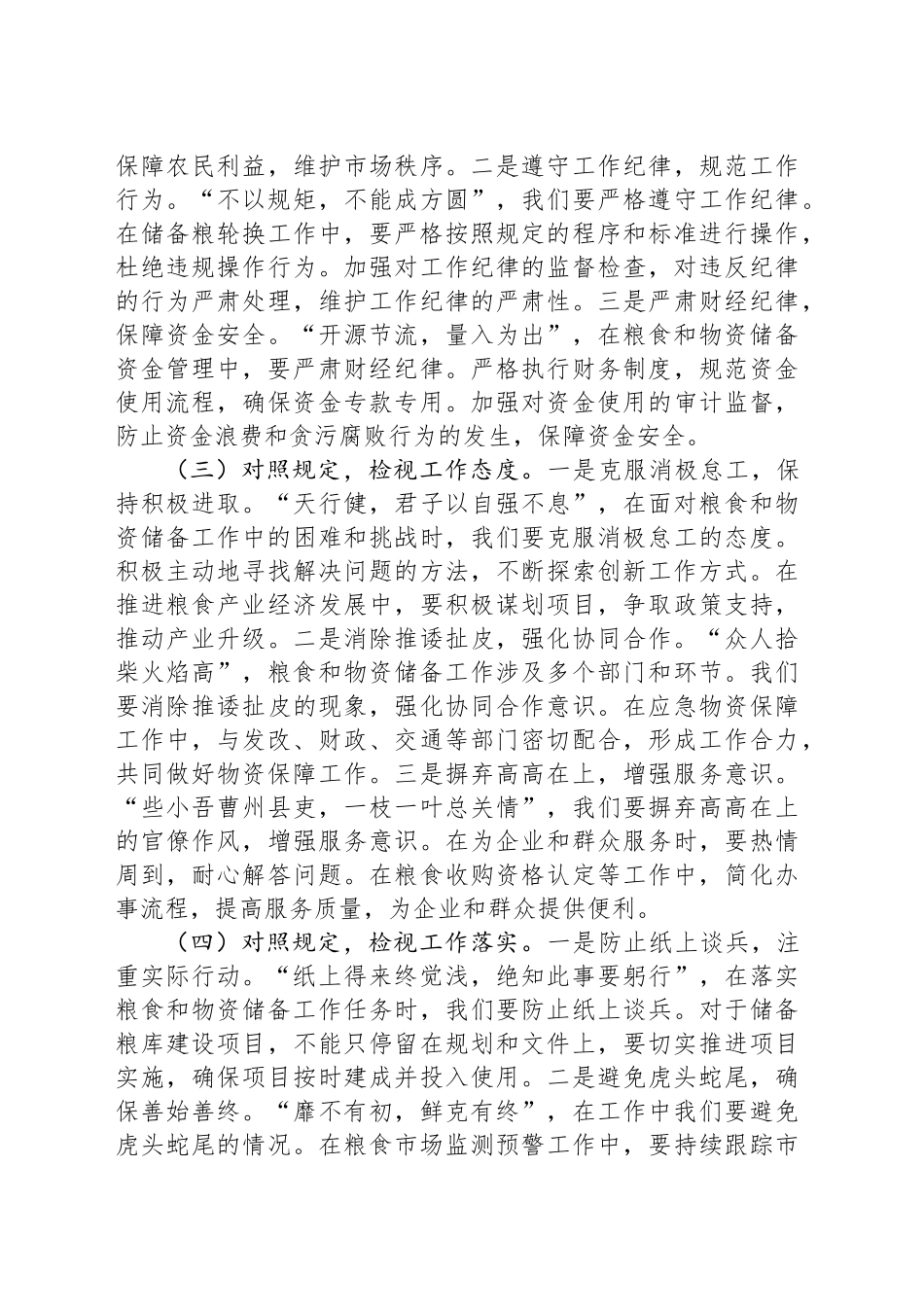 交流发言:以作风建设为桨,扬粮储清风之帆同志们:在全党深入开展贯彻中央作风建设精神学习教育之际,我们聚焦《党的十八大以来深入贯彻中央作风建设精神的成效和经验》及《作风建设改变中国》进行专题研讨,意义重大。这不仅是一次理论学习,更是我们提升作风、推动粮食和物资储备工作高质量发展的重要契机。下面,我结合工作实际,谈几点体会。一、以“破茧成蝶”的蜕变之力,深悟作风建设精神内涵(一)深刻领会作风建设的时代意义。党的十八大以来,中央作风建设如同一股清风,吹遍神州大地,开启了作风建设的新篇章。它以“徙木立信”之举,彰显了党中央全面从严治党的坚定决心。在新时代的历史进程中,作风建设成为了改变政治生态和社会面貌的标志性举措。对于我们粮食和物资储备系统而言,这是规范工作行为、提升工作效能的重要指引。它要求我们在工作中摒弃形式主义、官僚主义,切实以务实的作风,保障粮食和物资储备工作的稳定运行,为国家粮食安全和应急物资保障筑牢坚实基础。(二)准确把握作风建设的核心要义。作风建设聚焦于改进工作作风、密切联系群众,从调查研究、会议活动、文件简报等多个方面提出了明确要求。其核心要义在于“严”与“实”,即严格要求党员干部的行为规范,切实解决群众关心的实际问题。在粮食和物资储备工作中,我们要将“严”与“实”贯穿始终。在储备粮管理上,严格执行质量标准,确保储备粮数量真实、质量良好;在物资储备调配中,实实在在地满足受灾群众和应急需求,做到精准投放、高效保障,以实际行动诠释作风建设的核心要义。(三)充分认识作风建设的实践要求。作风建设不是一纸空文,而是需要我们在实践中不断践行的行动指南。它要求我们从日常工作的点滴做起,从每一次调研、每一场会议、每一份文件入手,切实改进工作方式方法。在粮食收购市场监管中,我们要深入基层,实地调研,掌握真实情况,为制定科学政策提供依据;在组织会议活动时,要精简流程,提高效率,避免形式主义;在文件起草中,要精简文字,突出重点,确保政策传达准确无误。通过这些具体实践,将作风建设的要求落到实处,推动粮食和物资储备工作不断迈上新台阶。二、以“激浊扬清”的坚定决心,对标作风建设检视工作(一)对照规定,检视工作作风。一是克服浮躁情绪,树立踏实作风。“非宁静无以致远”,在粮食和物资储备工作中,我们要克服心浮气躁的情绪。不能只追求表面上的工作成绩,而忽视了工作的实际效果。例如在粮食质量检测工作中,要认真对待每一个样本,严谨细致地进行检测,确保数据准确可靠,为粮食质量安全提供坚实保障。二是杜绝敷衍了事,增强责任意识。“天下兴亡,匹夫有责”,我们肩负着保障粮食和物资储备安全的重任。在储备物资管理工作中,要杜绝敷衍了事的态度。对每一批物资的入库、存储、出库都要严格把关,做好记录,确保物资数量准确、质量合格,关键时刻能够调得出、用得上。三是摒弃拖沓之风,提高工作效率。“一寸光阴一寸金”,在应急物资调配等工作中,时间就是生命。我们要摒弃拖沓之风,建立快速响应机制。一旦发生紧急情况,能够迅速启动应急预案,高效调配物资,为抢险救灾等工作争取宝贵时间。(二)对照规定,检视工作纪律。一是严守政治纪律,确保政令畅通。“令出如山”,在粮食和物资储备工作中,我们要严格遵守政治纪律。坚决贯彻党中央、省委关于粮食和物资储备工作的方针政策和决策部署,确保各项工作在正确的政治方向上推进。在执行粮食收购政策时,要严格按照政策要求,保障农民利益,维护市场秩序。二是遵守工作纪律,规范工作行为。“不以规矩,不能成方圆”,我们要严格遵守工作纪律。在储备粮轮换工作中,要严格按照规定的程序和标准进行操作,杜绝违规操作行为。加强对工作纪律的监督检查,对违反纪律的行为严肃处理,维护工作纪律的严肃性。三是严肃财经纪律,保障资金安全。“开源节流,量入为出”,在粮食和物资储备资金管理中,要严肃财经纪律。严格执行财务制度,规范资金使用流程,确保资金专款专用。加强对资金使用的审计监督,防止资金浪费和贪污腐败行为的发生,保障资金安全。(三)对照规定,检视...