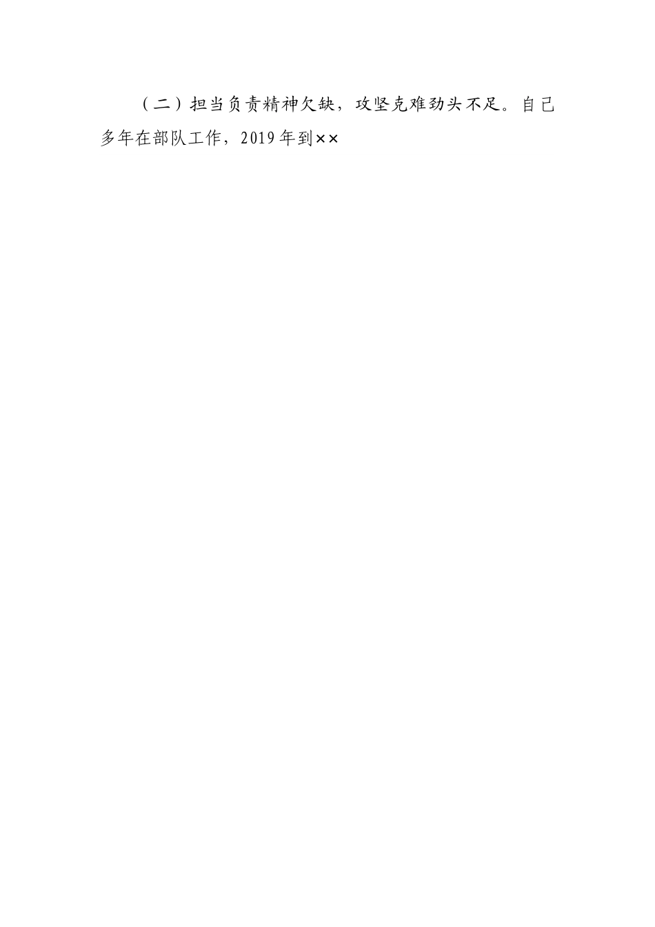 为民服务突出问题专项整治个人剖析交流发言近期,市委、市政府先后组织召开了服务群众专项整治活动动员会议,这充分表明了市委、市政府持之以恒抓干部作风建设的鲜明态度和坚定决心。作为一名××人,应彻底来一次服务群众作风问题大排查大整顿,以更加务实的工作作风,做好每一项工作,服务好每一位群众,为建设幸福美好××提供有力保障。一、聚焦”污瘴气”,找准为民服务存在的主要问题在地方工作已经三年了,工作状态应该进行深刻自查,工作方法也有很多需要改进,身上存在的问题如果得不到有效整改,将严重制约工作落实,损害××部门形象。二是担当意识不强的问题。工作中存在责任担当意识不强,习惯于矛盾往上交,工作缺少主动作为精神,不敢负责、不想碰硬;特别是难事、麻烦事,需要落实的事,能躲就躲,能推就推。习惯于当”二传手”“扳道工”,工作拿不出具体办法措施,对待工作挑肥拣瘦,总认为自己干得多,工作辛苦,心思都不在工作上,履职尽责更就是一句空话。三是业务素质不高的问题。党建工作已经快一年,但依然存在工作效率低下、工作不积极、不主动,领导签批的文件,一忙起来就一拖再拖,既不谋划落实,也不主动汇报缺乏精细化工作态度,基本功不扎实,对政策了解掌握不准,对业务数据不能了然于心,没有做到底数清、情况明政策熟、业务精。四是使命感责任感弱化的问题。面对繁重的工作任务和压力,少了”无须扬鞭自奋蹄”的进取精神。想问题、办事情过多依靠惯性思维,在创造创新上有等待观望、求稳怕乱的心态。对一些难办的、棘手的任务,缺少勇于作为的精神。在坚持党性原则、执行组织纪律方面也亟须加强,对不属于自己分管的工作存在多一事不如少一事的想法。二、产生问题的原因分析(一)为民服务”宗旨意识”不强。自己有10多年的党龄,认为不缺少对群众的感情,虽然常说”别把自己当官”,但实际上没有从思想深处解决好”我是谁、依靠谁、为了谁”的问题,在多数情况下,为民服务还只是停留在纸面上、口头上,没有把基层群众置于至高无上的地位。由于这种心理和认知上的偏差,导致对基层和群众的实际困难了解的还不及时、回应的不迅速、解决的不到位,为民服务意识淡化。(二)担当负责精神欠缺,攻坚克难劲头不足。自己多年在部队工作,2019年到××局工作,自己也非常清楚工作中必须以实干为本,只有扑下身子埋头苦干,事业才能干得好,群众评价才能高可有时工作中缺乏主动担当的精神,也缺乏持之以恒的韧劲,特别是在工作中遇到一些需要部门协同解决的重大问题时,处理的还不够圆满。(三)党性修养”精神之钙”补充不足。反思自身存有的问题,一个深层次的原因,就是缺乏一以贯之严格党性锻炼的诚心,缺乏一以贯之改造”三观”世界的恒心,缺乏一以贯之自我反思的耐心,没有以最大的决心和毅力发现问题、解决问题,用科学态度指导实践,用兢兢业业良好作风克服自身不足的意识还不够强烈。三、下步努力方向针对对照检查发现的自身问题,下一步,我将坚持问题导向,做到边学边改、边查边改、立行立改,切实取得实效。一是强化理论武装,坚定理想信念。自觉地学习党的最新理论成果,持续把学习贯彻习近平新时代中国特色社会主义思想作为思想建设必修课,努力在学深弄懂、学用结合上下功夫,让其成为工作实践的指南,不断提升自身理论水平、思维层次和工作能力,带头树牢”四个意识”,坚定”四个自信”,坚决做到”两个维护”,始终与以习近平同志为核心的党中央思想同心、目标同向、步调同拍。二是强化党性锻炼,提升政治敏锐性。始终把个人思想作风建设放在突出位置,坚决贯彻落实党的路线方针政策,认真执行党委决策部署,切实做到有令必行,有禁必止。不断提高政治敏锐性,高度重视意识形态工作,坚持用马克思主义的立场、观点和方法,从讲政治的高度观察分析判断问题,始终做到头脑清醒、立场坚定、旗帜鲜明,永葆共产党员的先进性和纯洁性。三是强化开拓创新,提升履职本领。充分发挥主观能动性,进一步转变观念、更新观念,突破原有的思维定式以及经验主义束缚,立足实际,大胆探索,创造性的开展党建工作。面对新形势,深入研究新情况、新问...