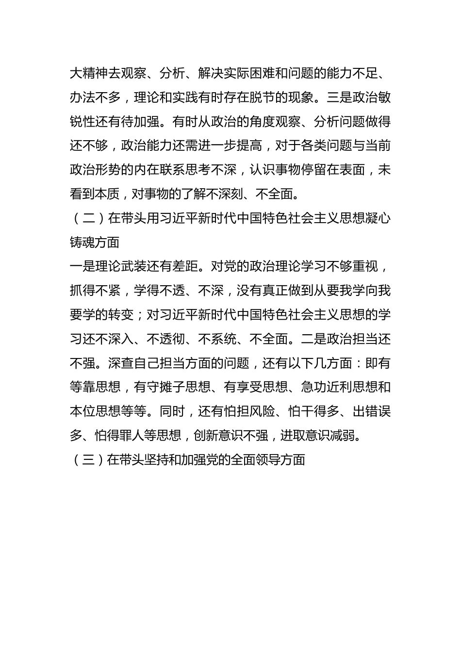 关于本年度的民主生活会个人对照检查材料按照开好民主生活会的通知要求,我紧紧围绕本次民主生活会的主题,深入学习贯彻习近平新时代中国特色社会主义思想和习近平总书记系列重要讲话精神,深入开展谈心谈话,广泛征求意见建议,认真对照党章党规党纪,进行深刻查摆反思,剖析问题根源,找准原因症结,明确今后努力方向。现将有关情况对照检查如下:一、存在的主要问题(一)在深刻领悟学习贯彻党的XX大精神的重大意义,带头全面学习、全面把握、全面落实方面作为一名党员领导干部,我始终坚持深入学习贯彻党的XX大精神,带头全面学习、全面把握、全面落实党的XX大精神,坚决维护以习近平同志为核心的党中央权威和集中统一领导,确保各项事业始终沿着正确的政治方向前进。存在的主要问题:一是学习的主动性还有差距。个人自学抓得不紧,存在以干代学,甚至以干挤学的现象,导致理论学习缺乏连续性、系统性、全面性,特别是对一些新理论新战略、新要求的深层次思考研究上,还不透彻全面。二是知行合一还不够紧密。学用结合、学以致用做得不够,自觉运用党的XX大精神去观察、分析、解决实际困难和问题的能力不足、办法不多,理论和实践有时存在脱节的现象。三是政治敏锐性还有待加强。有时从政治的角度观察、分析问题做得还不够,政治能力还需进一步提高,对于各类问题与当前政治形势的内在联系思考不深,认识事物停留在表面,未看到本质,对事物的了解不深刻、不全面。(二)在带头用习近平新时代中国特色社会主义思想凝心铸魂方面一是理论武装还有差距。对党的政治理论学习不够重视,抓得不紧,学得不透、不深,没有真正做到从要我学向我要学的转变;对习近平新时代中国特色社会主义思想的学习还不深入、不透彻、不系统、不全面。二是政治担当还不强。深查自己担当方面的问题,还有以下几方面:即有等靠思想,有守摊子思想、有享受思想、急功近利思想和本位思想等等。同时,还有怕担风险、怕干得多、出错误多、怕得罪人等思想,创新意识不强,进取意识减弱。(三)在带头坚持和加强党的全面领导方面一是在发挥班子成员参与决策的积极性上做得还不够。在局党组会议讨论重大议题时,虽然坚持做到了末位表态,但有时没有很好地启发、引导、解释,导致有的班子成员对重大问题的讨论有时思想准备不充分,不能积极发言,全面阐述观点和意见,没有完全做到集思广益。二是对基层党组织建设的指导力度还不够。对基层党组织建设更多的是压给分管负责同志,在充分发挥基层党组织的政治功能,促进各项工作开展上研究得还不透彻不系统,导致有的基层党组织作用发挥“弱化”,影响了基层组织的战斗力。三是在凝聚形成推动落实的合力上仍有差距。对于如何引领带动全局党员干部一起贯彻落实党中央和自治区、市委决策部署,更好地形成工作合力上还缺少行之有效的方式方法,党员先锋岗、党员责任区、党员突击队等党员作用发挥的载体没有被完全激活,模范先锋作用还没有得到充分发挥。(四)在带头坚持以人民为中心的发展思想方面尊重群众意愿,为群众办实事解难题,有效保障改善民生全面落实“我为纳税人缴费人办实事暨便民办税春风行动”各项措施,增强人民群众获得感幸福感安全感,确保党永远保持同人民群众的血肉联系方面。一是群众立场不坚定,群众观念淡薄,不能始终同人民群众站在一起、想在一起干在一起,在为纳税人缴费人服务方面还存在服务不及时不周到,纳税人缴费人不满意等问题。二是群众意识不强在日常工作中,对职工群众的意见建议听不进去,主观武断作风有所表现,不善于调查研究,对上负责的多,对下负责的少。三是群众感情有所疏远。深入基层到群众去,与群众站在一起、干在一起、吃在一起的时间不多,只待在机关指导的多,蹲下去,深入基层与群众在一起的时间少。(五)在带头发扬斗争精神方面一是斗争精神仍显不足。平时不善于锻炼身体,干没有精气神,学没有钻研精神,不善于学习,不善于提升自身素质,工作效率低,干事技能不熟练,工作的主动性、积极性不高。二是开拓创新能力不足,创新意识不强。对工作标准要求不高,思想保守,不求进取,思路、办法陈旧,不能用创新思维去解...