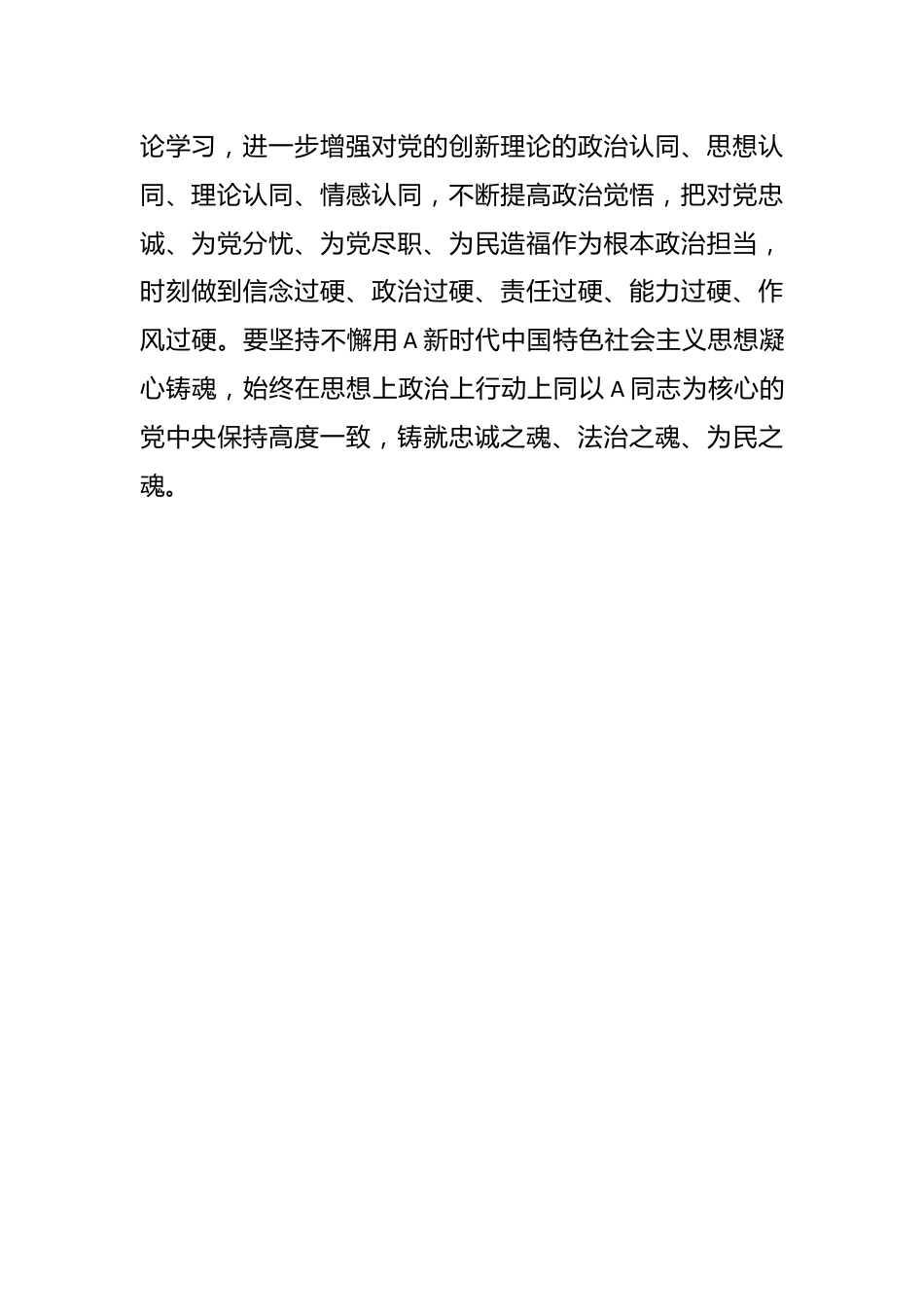 XX法院学习中心组主题教育专题读书班上的研讨发言材料同志们:按照县委常委会学习贯彻A新时代中国特色社会主义思想主题教育读书班计划安排,结合法院工作实际,下面我围绕学习贯彻A新时代中国特色社会主义思想,推动县法院工作高质量发展谈一下学习体会,同大家交流。在全党深入开展学习贯彻A新时代中国特色社会主义思想主题教育,是党中央为全面贯彻党的二十大精神、动员全党同志为完成党的中心任务而团结奋斗所作的重大部署。A总书记就深入开展主题教育发表一系列重要讲话、作出一系列重要指示,为一体化推进主题教育和审判执行工作指明了方向、提供了根本遵循。县法院认真贯彻落实A总书记和党中央关于开展主题教育的决策部署,坚定拥护“两个确立”、坚决做到“两个维护”,紧扣主题教育目标要求和工作安排,切实扛起政治责任,全面加强理论武装,铸牢政治忠诚,提振干事创业精气神,锤炼忠诚干净担当的政治品格和为民务实清廉的政治本色,全力为履行好新时代人民法院使命任务打下坚实政治基础。一是提高“学”的站位,切实在凝心铸魂、筑牢根本上下功夫、见实效。要强化理论武装,学深悟透、融会贯通A新时代中国特色社会主义思想,真学真懂真信,持续把主题教育贯彻始终。一要坚持读原文悟原理。原著原文积淀着原汁原味的理论内核,凝结着思想精髓,要认真研读党的二十大报告和党章,精读通读《A著作选读》《A新时代中国特色社会主义思想专题摘编》等必读书目,深入学习领会A总书记关于主题教育系列重要讲话精神、关于树立和践行正确政绩观的重要论述。在深化、内化、转化上聚力用劲,全面系统掌握A新时代中国特色社会主义思想的科学体系、核心要义、实践要求,做到整体把握、融会贯通。二要坚持高站位强认识。要牢牢把握人民法院作为政治机关、政法机关和审判机关的职能定位,始终坚持党对法院工作的绝对领导,严格落实意识形态工作责任制,坚持讲政治与讲法治有机统一。要抓实理论学习,突出问题导向、突出学以致用,重在运用A新时代中国特色社会主义思想的世界观和方法论解决真问题、真解决问题。要深刻认识开展主题教育的重大意义,把主题教育作为重要政治任务紧紧抓在手上,牢牢把握“学思想、强党性、重实践、建新功”的总要求,时刻对标对表主题教育各项工作目标,努力在以学铸魂、以学增智、以学正风、以学促干方面取得新成效。三要坚持强担当铸忠诚。要通过系统深入的理论学习,进一步增强对党的创新理论的政治认同、思想认同、理论认同、情感认同,不断提高政治觉悟,把对党忠诚、为党分忧、为党尽职、为民造福作为根本政治担当,时刻做到信念过硬、政治过硬、责任过硬、能力过硬、作风过硬。要坚持不懈用A新时代中国特色社会主义思想凝心铸魂,始终在思想上政治上行动上同以A同志为核心的党中央保持高度一致,铸就忠诚之魂、法治之魂、为民之魂。二是铆足“学”的劲头,切实在学以致用、学用结合上下功夫、见成效。要认真学习领会、贯彻落实A总书记重要指示精神,持续做深、做实、做好各项工作,确保取得实效。一要强化政治引领,深耕主责主业。要学深悟透做实A新时代中国特色社会主义思想,特别是A法治思想,切实运用蕴含其中的立场观点方法指导实践、解决问题、推动工作。要紧紧围绕“努力让人民群众在每一个司法案件中感受到公平正义”的目标,把A新时代中国特色社会主义思想融入法院建设全过程、融入司法审判全过程,通过深化学习汲取智慧力量、提振精神状态、激发内生动力,深入推动省法院提出的“七院建设”“四强要求”“三大目标”落地见效,推动县法院司法服务保障水平整体提升。要持续提高办案质量,正确处理好公正与效率的关系,真正将“小案事不小、小案不小办”理念贯彻落实到每一个案件中。要持续推进能动司法,不断拓宽能动司法的途径和方式,确保“从政治上看,从法治上办”,实现执法办案“三个效果”的有机统一。二要聚焦党建引领,坚持服务大局。要紧紧围绕“抓党建、带队建、强审判、促发展”工作思路,促进党建和业务深度融合,切实提升办案质效。要充分发挥县法院“阳光司法”党建品牌引领作用,通过在诉讼服务中心打造的“党员示范岗”“巾...