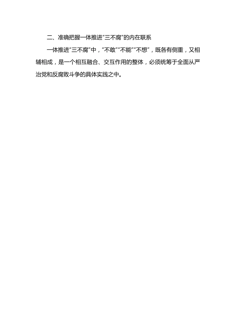 党课讲稿:一体推进“三不腐”坚决打赢反腐败斗争攻坚战持久战1月9日,习近平总书记在中国共产党第二十届中央纪律检查委员会第二次全体会议上发表重要讲话。习近平总书记在讲话中强调,反腐败斗争形势依然严峻复杂,遏制增量、清除存量的任务依然艰巨。必须深化标本兼治、系统治理,一体推进不敢腐、不能腐、不想腐。坚持“三不腐”一体推进,是建党百年加强纪律建设和作风建设的有效路径,揭示了系统施治、标本兼治的基本规律。作为党员干部,要切实增强政治自觉和历史主动,坚持用战略思维、辩证思维和创新思维一体推进“三不腐”,高质量做好正风肃纪反腐各项工作。今天,我从以下几个方面与大家共同学习交流。一、要充分认识一体推进“三不腐”的重要意义习近平总书记指出:“腐败是党内各种不良因素长期积累、持续发酵的体现,反腐败就是同各种弱化党的先进性、损害党的纯洁性的病原体作斗争。”(一)一体推进“三不腐”,是实践的科学总结。党的十八大以来,在高压反腐惩恶、严厉正风肃纪的伟大实践中,习近平总书记根据反腐败斗争态势和工作任务的变化发展,积极探索在长期执政和改革开放条件下推进党的自我净化、自我完善、自我革新、自我提高的方法路径。将“三不腐”作为综合治理腐败的根本举措,作为新时代全面从严治党的重要方略,反腐败斗争才能不断取得新成效。实践证明,只有一体推进“三不腐”,才能进一步增强反腐败斗争的主动性、系统性、实效性。(二)一体推进“三不腐”,是理论的升华深化。反腐败斗争是一场攻坚战、持久战,必须坚持标本兼治、综合治理、惩防并举、注重预防,把惩治的震慑力与制度的约束力、教育的感召力叠加起来,把净化政治生态、严肃政治生活、涵养政治文化结合起来,把正风肃纪反腐与深化改革、完善制度、促进治理贯通起来着眼实现干部清正、政府清廉、政治清明、社会清朗,坚决清除影响党的先进性和纯洁性的消极因素,这是我们党反腐败斗争从实践探索到理论升华、再到指导实践的题中之义和必然结果。(三)一体推进“三不腐”,是现实的迫切需要。当前,反腐败斗争取得压倒性胜利并全面巩固,但形势依然严峻复杂,腐败和反腐败较量还在激烈进行,防范形形色色的利益集团成伙作势、“围猎”腐蚀还任重道远,有效应对腐败手段隐形变异、翻新升级还任重道远,彻底铲除腐败滋生土壤、实现海晏河清还任重道远,清理系统性腐败、化解风险隐患还任重道远。必须始终保持正视问题的勇气和刀刃向内的坚定,坚决割除毒瘤、清除毒源、肃清流毒,以党永不变质确保红色江山永不变色。二、准确把握一体推进“三不腐”的内在联系一体推进“三不腐”中,“不敢”“不能”“不想”,既各有侧重,又相辅相成,是一个相互融合、交互作用的整体,必须统筹于全面从严治党和反腐败斗争的具体实践之中。(一)“不敢腐”是前提,重在惩治和震慑。只有严厉惩治,一旦腐败就会付出惨重代价,才能让意欲腐败者不敢越雷池半步,为“不能”“不想”创造条件。“不敢腐”的实质就是保持惩治腐败高压态势,提高腐败案件查处概率,降低腐败收益和违法成本之间的比率,倒逼干部正确对待权力、谨慎使用权力、不敢滥用权力。(二)“不能腐”是保障,重在制约和监督。“不能腐”解决的是腐败机会问题,只有强化监督制约、扎紧制度笼子,才能让胆敢腐败者无机可乘,巩固“不敢”“不想”的成果。“不能腐”的实质就是从源头抓起,对党的十八大以来惩治腐败的生动实践进行系统总结和深入剖析,加强反腐败体制机制创新和制度建设,对“不敢腐”划出红线,对“不想腐”提出倡导,为“不敢腐”、“不想腐”提供有力支撑。(三)“不想腐”是防线,重在教育和自律。“不想腐”是根本,指的是认知、觉悟、文化。解决腐败问题的根本,就是要把坚定理想信念作为党的思想建设的首要任务,解决好世界观、人生观、价值观这个“总开关”问题。“不想腐”的实质就是要强化对党员干部和公职人员的教育引导,告诫他们:“公款姓公,一分一厘都不能乱花公权为民,一丝一毫都不能私用”。筑牢“不想腐”的思想基础,建立拒腐防变的精神防线,为“不敢腐”、“不能腐”构筑起坚固思想堤坝。三...