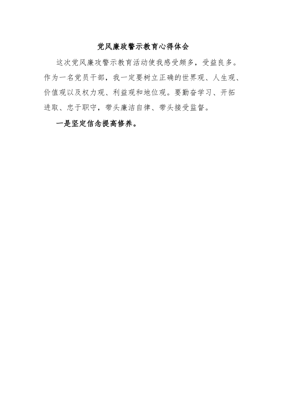 党风廉政警示教育心得体会这次党风廉攻警示教育活动使我感受颇多,受益良多。作为一名党员干部,我一定要树立正确的世界观、人生观、价值观以及权力观、利益观和地位观。要勤奋学习、开拓进取、忠于职守,带头廉洁自律、带头接受监督。一是坚定信念提高修养。一是强化理论学习。牢固树立终身学习的理念,切实从思想上重视学习,从行动上强化学习,把学习作为提升政治素养和工作能力的重要手段,用好乡党委理论中心组学习这个重要抓手,认真学习研究党的方针政策,拓宽学习的层次和领域,提高学习的质量和效果,提升应对复杂局面、处理复杂问题的能力。二是坚定理想信念。把理想信念作为终生必修课,坚定马克思主义信仰、社会主义和共产主义信念,以实际行动忠诚捍卫“两个确立”、坚决做到“两个维护”。三是提高党性修养。以中央八项规定为要求,牢固树立正确的世界观人生观、价值观、权力观和政绩观,坚定正确的政治立场和政治方向,不当“两面派”、不做“两面人”,在大是大非面前旗帜鲜明,在考验面前无所畏惧,在诱惑面前立场坚定,自觉划清是非界限、澄清模糊认识。四是提升道德境界。切实加强个人品德修养,带头弘扬社会主义核心价值观,始终保持健康的生活情趣和高尚的道德情操,自觉做尚德、修德、守德的模范,不为私心杂念所左右、不为功名利标所诱惑、不为歪风邪气所侵蚀,争当社会主义道德风尚的引领者。二是恪守宗旨廉洁奉公。一是恪守党的宗旨。始终牢记全心全意为人民服务的宗旨,时刻做到心中装着群众,权为民所用、情为民所系、利为民所谋,亲民惠民,拿出更多时间、抽出更多精力深入群众,带头践行群众路线,在与群众同甘共苦中增进公仆情怀。二是坚持廉洁奉公。带头严格执行中央八项规定,对一切腐蚀诱惑保持高度警惕,慎独慎微,防微社渐。摆正公私关系,秉公使用权力,严格执行廉洁自律各项规定,任何时候不搞特殊化,永葆共产党人清廉本色。三是遵守党纪依法办事。一是遵守党的纪律。始终把维护党的政治纪律放在首位,严格遵守党的政治纪律、政治规矩和组织纪律,增强政治意识、大局意识、组织意识,自觉维护党的集中统一、维护中央权威,有令必行、令行禁止,对党中央的决策部署迅速贯彻、严格执行、全面落实,重大事项、重大决策、重大问题及时向上级党组织请示汇报,做到政治上坚定自信、思想上同心同向、行动上高度自觉,始终同党委保持高度一致。二是强化法治思维。秉持职权法定原则,带头依法办事、依法行政,不碰法律红线,不越法律底线,注重发挥法治的引领和推动作用,做法治建设的示范者、实践者和推动者。四是坚持谋事创业务实。一是坚持求真务实。坚持一切从实际出发,做到查实情、讲实话、出实招、干实事、求实效,坚决防止和克服形式主义、官僚主义,不做表面文章、不摆花架子,对市委市政府的决策部署,只争朝夕、雷厉风行,抓铁有痕、踏石留印,一项工作一项工作的推进、一个环节一个环节的抓牢、一个问题一个问题的解决,始终秉持“落实、落实、再落实”的理念,大力发扬“钉钉子”精神,真抓实干、坚持不懈、久久为功,推动各项事业落到实处、取得实效。二是破难题勇担当。切实强化担当意识,充分认识到自己岗位和职责的重要性,扑下身、沉下心、扎下根,以对党和人民高度负责的态度,心无旁骛、脚踏实地,全力做好各项工作,在难题面前敢闯敢试、敢为人先,在矛盾面前敢抓敢管、敢于碰硬,在风险面前敢于作为、敢于担责,做到关键时刻冲得上、顶得住、打得赢,做到守土有责、守土负责、守土尽责。作风建设永远在路上,进步永无止境。在今后的工作中,我将以本次党风廉政警示教育为契机,从严上要求、向实处着力,本着严谨负责的工作态度,务实高效的工作作风,为奋力谱写中国式现代化建设XX篇章作出新贡献。