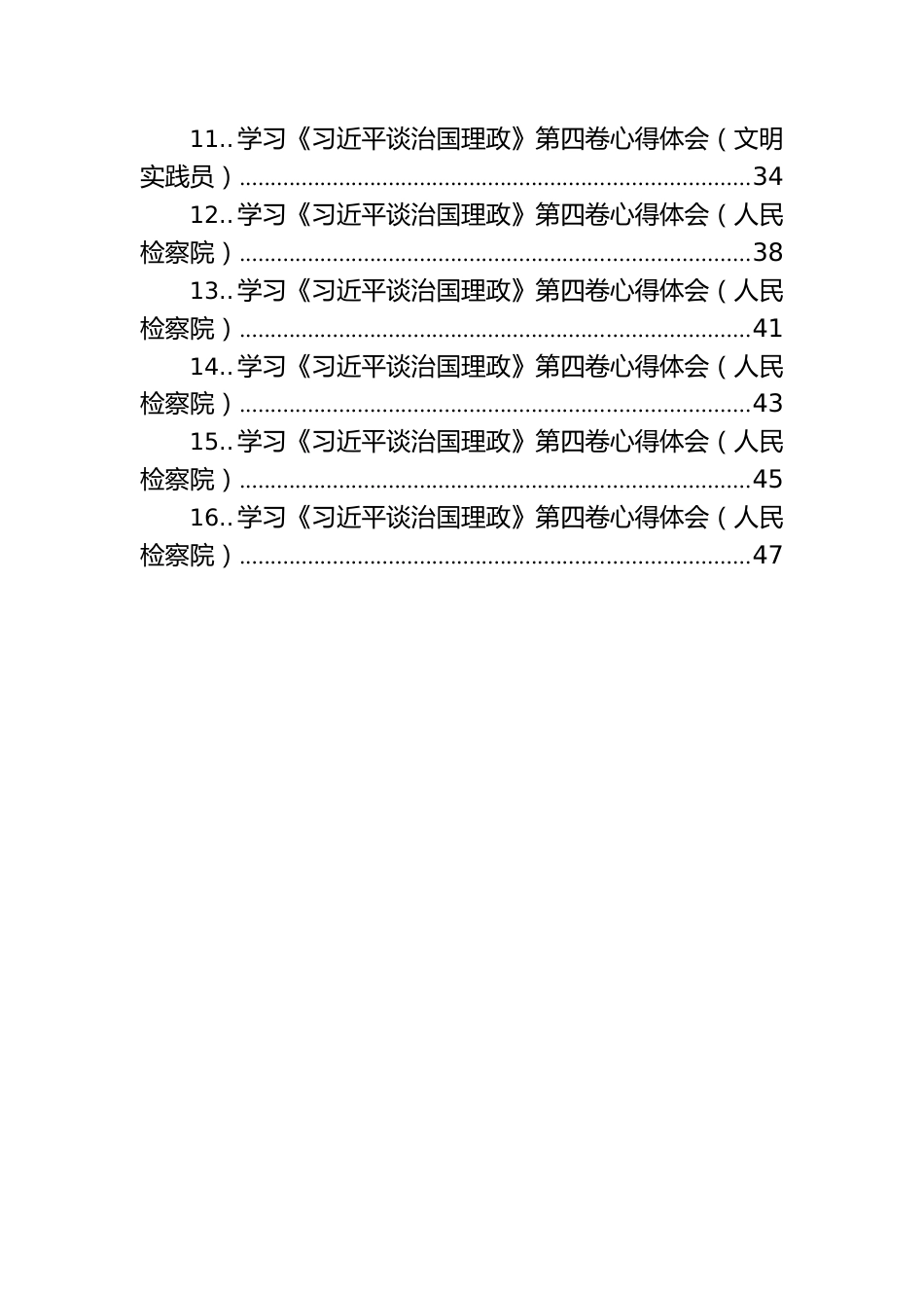 161............................................................................学习《习近平谈治国理政》第四卷心得体会..................32............................................................................学习《习近平谈治国理政》第四卷心得体会..................53............................................................................学习《习近平谈治国理政》第四卷心得体会..................94..........................................................................学习《习近平谈治国理政》第四卷心得体会(社区党委书记、居委主任)135..........................................................................学习《习近平谈治国理政》第四卷心得体会(企业职工)156..........................................................................学习《习近平谈治国理政》第四卷心得体会(派出所民警)187..........................................................................学习《习近平谈治国理政》第四卷心得体会(乘警支队队长)218..........................................................................学习《习近平谈治国理政》第四卷心得体会(督察支队队长)259..........................................................................学习《习近平谈治国理政》第四卷心得体会(党的二十大代表)3010........................................................................学习《习近平谈治国理政》第四卷心得体会(小学教师)3211..学习《习近平谈治国理政》第四卷心得体会(文明实践员)..................................................................................3412..学习《习近平谈治国理政》第四卷心得体会(人民检察院)..................................................................................3813..学习《习近平谈治国理政》第四卷心得体会(人民检察院)..................................................................................4114..学习《习近平谈治国理政》第四卷心得体会(人民检察院)..................................................................................4315..学习《习近平谈治国理政》第四卷心得体会(人民检察院)..................................................................................4516..学习《习近平谈治国理政》第四卷心得体会(人民检察院)..................................................................................47十八大以来以习近平同志为核心的党中央,带领全党各族人民开启了改革开放和现代化建设新征程。《习近平谈治国理政第四卷》全面系统的回答了新时代条件下,中国进展的重大理论和现实问题,是国际社会了解当代中国的重要窗口。学习《习近平谈治国理政第四卷》要在“真学”上下功夫,切忌“走马观花”,以严要求树好学风。真学是基础、是前提,《习近平谈治国理政第四卷》是全面系统反映习近平新时代中国特色社会主义思想的最新权威著作,是新时代中国共产党的思想旗帜,是国家政治生活和社会生活的根本指针,是实现中华民族伟大复兴的行动指南,具有非常重要的政治意义、理论意义、实践意义,我们要积极参加各类学习活动,着力推动习近平新时代中国特色社会主义思想。学习《习近平谈治国理政第四卷》要在“深思”上做文章,杜绝“囫囵吞枣”,以实要求领悟真谛。真懂不仅仅是懂字面意思,更要懂根本、懂精华。《习近平谈治国理政第四卷》中指出,要掌握历史主动,在新时代更要坚持党的全面领导,要始终坚持人民至上等等。我们要深刻领悟习近平统筹推动“五位一体”总体布局、协调推动“四个全面”战略布局的重要思想,感悟习近平总书记治国理政的思想方法,不断提高运用党的创新理论指导应对重大挑战,抵御重大风险、化解重大冲突、解决重大问题的能力。学习《习近平谈治国理政第四卷》要在“笃行”上动真格,严禁“坐而论道”,以高标准让人民满意。学习的目...