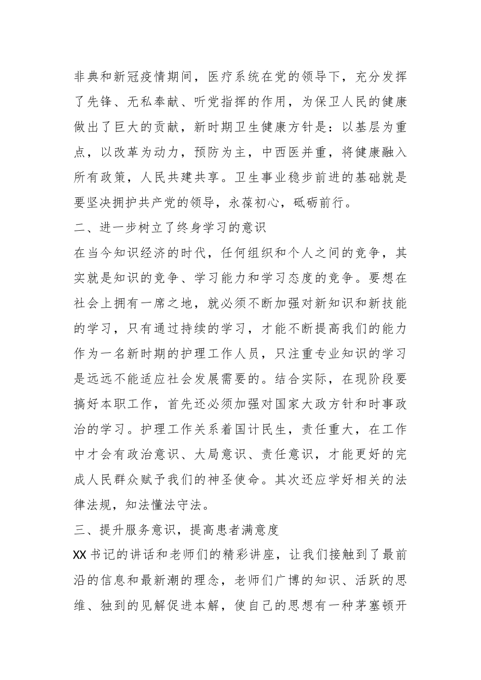 XX区卫健系统青年干部培训学习心得体会2023年X月26日至30日,我有幸参加了XX区卫健系统组织的“XX区卫健系统青年干部夏季培训班”,在此次培训中,聆听了XX区卫健局党委书记、局长XX的讲话以及四位专家名师的讲座,老师们以丰富的知识、精湛的理论和鲜活的案例,给了我强烈的感染和深深的启发。在短短五天的学习中,我受益匪浅,感触颇深,眼界开阔了,思考问题能比以前更全面了,许多疑问得到了解决或者启发,对自己从事的护理工作又有了一个新的认识。同时领悟到了作为医院的中层干部,不仅要有娴熟的技术,也要掌握管理技巧和技能,时刻准备党和组织的选拔。知识是无止境的,通过这次学习,使自己的思想重新焕发了激情,燃起了斗志。就五天以来的学习培训,我简要地谈谈体会:一、提高思想认识,坚决拥护共产党领导,提高政治占位听了XX书记的讲话,我了解了开展本次培训班的原因:区医疗体制内缺乏干部意识;医疗系统需要具备专业性、管理学的复合型人才,这种人才需具备协调、应急、医疗救助等一系列的素质;卫生系统的人才需要多出来交流,相互学习。卫生系统是共产党的产物,目的是为了保障人民的身体健康,党领导中国的卫生制度是政府为导向,公益性主导,公立性医院主导的医疗救治体系成为应对重大疫情的重要保障。在非典和新冠疫情期间,医疗系统在党的领导下,充分发挥了先锋、无私奉献、听党指挥的作用,为保卫人民的健康做出了巨大的贡献,新时期卫生健康方针是:以基层为重点,以改革为动力,预防为主,中西医并重,将健康融入所有政策,人民共建共享。卫生事业稳步前进的基础就是要坚决拥护共产党的领导,永葆初心,砥砺前行。二、进一步树立了终身学习的意识在当今知识经济的时代,任何组织和个人之间的竞争,其实就是知识的竞争、学习能力和学习态度的竞争。要想在社会上拥有一席之地,就必须不断加强对新知识和新技能的学习,只有通过持续的学习,才能不断提高我们的能力作为一名新时期的护理工作人员,只注重专业知识的学习是远远不能适应社会发展需要的。结合实际,在现阶段要搞好本职工作,首先还必须加强对国家大政方针和时事政治的学习。护理工作关系着国计民生,责任重大,在工作中才会有政治意识、大局意识、责任意识,才能更好的完成人民群众赋予我们的神圣使命。其次还应学好相关的法律法规,知法懂法守法。三、提升服务意识,提高患者满意度XX书记的讲话和老师们的精彩讲座,让我们接触到了最前沿的信息和最新潮的理念,老师们广博的知识、活跃的思维、独到的见解促进本解,使自己的思想有一种茅塞顿开的感觉,一次次感悟之后,愈发感觉到加强学习对于促进本职工作的重要性和紧迫性。社会在发展,科技在进步,我们的护理工作和服务意识也要不断的更新,以满足社会的进步和人民的需求。只有通过在工作中不断学习,才能提升自身的素质与工作水平;只有通过不断的知识积累,才能跟上时代的发展步伐,做好新时期的护理工作,使我们的护理事业能够有更大的突破,让患者的就医体验大大提升。五天的学习虽然短暂,但足以使我们在紧张的工作之余,有时间、有机会静下心来,反思工作中的得失,以及思想、认识和能力方面的差距,通过学习,也确实认识到了不足找到了差距,同时深切感受到了加强学习、做好本职工作的重要性和紧迫性。四、立足岗位,实现人生目标和人生价值通过此次学习培训,我深刻认识到,作为年轻一代,只有立足本职岗位,献身自己热爱的事业,才能真正实现自己的人生价值,并且还有执着的理想和信念。爱因斯坦曾说“一个人的价值,应当看他贡献了什么,而不应该看他取得了什么。”人生的价值是一个不断寻找,不断体验,不断重新定义的过程。人的社会价值是个人对社会需要的满足,个人对社会的贡献。贡献不等于回报,我们年青人应该重视人生价值,重视心灵挖掘,也是我们得去做的事。我们年青人只有在不懈的努力中,找到自己的人生目标和人生价值,敢想、敢干、敢担当、敢拼搏,努力实现自己的人生目标和人生价值。五、正视自身的不足,补齐自身短板作为一名中层干部,我们肩负着重大的责任和义务,审视自己十一年的工作历程,我可能一直忙于技...