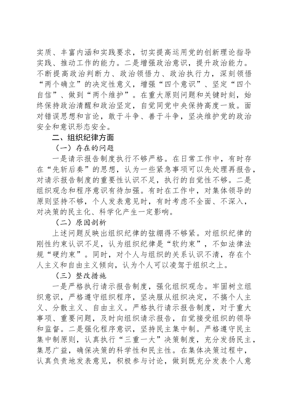 党员干部六项纪律个人对照检查剖析材料近期,我认真学习了新修订的《中国共产党纪律处分条例》,并对照党员干部六项纪律,结合自身思想和工作实际,进行了深入的自我检查和剖析。现将有关情况汇报如下:一、政治纪律方面(一)存在的问题一是理论学习的深度和系统性仍待加强。虽然能够按要求参加各类学习,但在主动学习、深层次思考和理论联系实际方面还有不足。例如,对习近平新时代中国特色社会主义思想的学习,有时停留在了解基本概念和要求的层面,未能完全将其精神实质和实践要求内化于心、外化于行,指导具体工作还有差距。二是政治敏锐性和政治鉴别力需要进一步提升。在复杂社会思潮和多元价值观念交织的背景下,对一些模糊认识和错误倾向,有时警惕性不高,旗帜不够鲜明,斗争精神有所欠缺。比如,在网络舆论场,对于一些错误言论,虽然能保持政治立场坚定,但主动发声亮剑、有效引导舆论的能力还需加强。(二)原因剖析上述问题产生的根源在于理想信念的“压舱石”作用发挥不够充分。对政治理论学习的重要性认识还需深化,存在实用主义倾向,认为政治理论学习是“软指标”,不如业务工作“见效快”。同时,对新形势下意识形态领域的复杂斗争认识不足,忧患意识和责任意识还需进一步增强。(三)整改措施一是强化理论武装,筑牢思想根基。坚持把学习习近平新时代中国特色社会主义思想作为首要政治任务,制定个人学习计划,做到真学真懂真信真用。创新学习方式,通过研读原文、专家辅导、交流研讨等多种形式,深刻领会其核心要义、精神实质、丰富内涵和实践要求,切实提高运用党的创新理论指导实践、推动工作的能力。二是增强政治意识,提升政治能力。不断提高政治判断力、政治领悟力、政治执行力,深刻领悟“两个确立”的决定性意义,增强“四个意识”、坚定“四个自信”、做到“两个维护”。在重大原则问题和关键时刻,始终保持政治清醒和政治坚定,自觉同党中央保持高度一致。面对错误思想和言论,敢于斗争、善于斗争,坚决维护党的政治安全和意识形态安全。二、组织纪律方面(一)存在的问题一是请示报告制度执行不够严格。在日常工作中,有时存在“先斩后奏”的思想,认为一些紧急事项可以先处理再报告,对请示报告制度的重要性认识不足,执行的自觉性不够。二是组织观念和程序意识有待加强。有时在工作中,对集体领导的原则坚持不够,个人发表意见时,有时考虑不全面、不深入,对决策的民主化、科学化产生一定影响。(二)原因剖析上述问题反映出组织纪律的弦绷得不够紧。对组织纪律的刚性约束认识不足,认为组织纪律是“软约束”,不如法律法规“硬约束”。同时,对个人与组织的关系认识不清,存在个人主义和自由主义倾向,认为个人可以凌驾于组织之上。(三)整改措施一是严格执行请示报告制度,强化组织观念。牢固树立组织意识,严格遵守组织程序,坚决服从组织决定,不搞个人主义、分散主义、自由主义。严格执行请示报告制度,对于重大事项、重要问题,及时向组织请示报告,自觉接受组织的领导和监督。二是强化程序意识,坚持民主集中制。严格遵守民主集中制原则,认真执行“三重一大”决策制度,充分发扬民主,集思广益,确保决策的科学性和民主性。在集体决策过程中,认真负责地发表意见,积极参与讨论,做到既充分发表个人意见,又坚决服从集体决定。三、廉洁纪律方面(一)存在的问题一是公务接待管理不够规范。在公务接待中,有时存在超标准接待、陪同人员超标等现象,对中央八项规定精神和廉洁纪律要求理解不深入、执行不到位。二是办公用品管理不够精细。在办公用品的领用、管理上,有时存在浪费现象,对“过紧日子”的思想树立不够牢固,精打细算的意识还需加强。(二)原因剖析上述问题暴露出廉洁自律意识仍需增强。对廉洁纪律的红线意识和底线思维树立不够牢固,认为一些小问题是“人情往来”,对腐败的危害性认识不足,对“微腐败”的警惕性不高。同时,艰苦奋斗、勤俭节约的优良传统有所淡化,享乐主义和奢靡之风有所抬头。(三)整改措施一是严格遵守廉洁纪律,规范公务行为。认真学习贯彻中央八项规定精神,严格执行公务接待、公务用车等各项制度规...