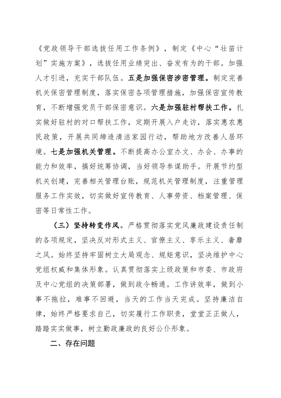 在2024年机关务虚会议上的发言提纲2024年,根据会议安排,我现将2024年工作情况及2025年工作打算报告如下:一、2024年的工作完成情况(一)坚持强化学习。我始终把抓学习作为一项重要的政治任务来对待,自觉做到勤学多思,努力增强党性观念,提高思想政治素质,以党的理论武装头脑,不断改造自身的世界观、人生观和价值观,使自己做到讲党性、讲纪律、讲原则、讲风格。今年以来,我注重突出四个重点强化学习,不断提高自身的履职能力。一是突出做好党的二十大及二十届三中全会精神的学习,深刻理解全会的重大意义、指导思想、总体思路和重大部署;二是突出做好习近平总书记视察湖北和关于机关事务重要指示批示精神的学习,进一步增强宗旨观念和群众意识;三是做好与自身分管工作相关联的方针、政策、法律法规等知识的学习,使自己在工作中能不断拓宽视野,增强工作能力;四是突出做好新修订纪律处分条例的学习,增强自己拒腐防变和履行一岗双责的能力。在学习形式上,积极参加中心组和党支部的学习,认真开展自学。坚持学以致用,不断增强学习的针对性,提高指导实践的能力。(二)坚持认真履职。我始终牢记党的宗旨,认真履行工作职责,坚决完成党组交办的各项任务。一是加强党组织建设。坚持以习近平新时代中国特色社会主义思想为指引,始终把党建工作放在突出位置,坚决贯彻党中央的路线方针政策,执行省委、市委决策部署。制定党建工作要点,严格落实“三会一课”和党内政治生活等制度,通过各种形式,深入学习党的理论知识,推动理论学习走深走实,不断增强党员干部政治意识和规矩意识。二是加强干部学习教育。制定学习计划,组织党员干部学习习近平新时代中国特色社会主义思想、党的二十大和二十届三中全会精神,学习习近平总书记考察湖北重要讲话和关于机关事务批示指示精神,通过开展专家辅导、学习研讨、警示教育、知识测试、红色革命教育等方式,不断提高党员干部的政治思想文化素质。三是加强党风廉政建设。落实主体责任,制定党风廉政建设工作方案和主体责任清单。围绕权力运行的关键环节和重点岗位,排查廉政风险点,制定相应的防控措施,建立廉政风险防控清单。开展反食品浪费问题专项整治和反对四种现象大讨论。邀请派驻纪检组参加中心党组会议,及时上报三重一大情况,积极主动配合纪检组开展工作。开展党纪学习教育,认真学习习近平总书记关于党风廉政建设的重要论述,学习新修订的纪律处分条例等党纪党规,不断增强党员干部的纪律意识和规矩意识。四是加强干部队伍建设。坚持德才兼备的用人原则,把好干部选任关。贯彻落实《党政领导干部选拔任用工作条例》,制定《中心“壮苗计划”实施方案》,选拔任用业绩突出、奋发有为的干部。加强人才引进,充实干部队伍。五是加强保密涉密管理。制定完善机关保密管理制度,落实保密各项管理措施,加强保密宣传教育,不断增强党员干部保密意识。六是加强驻村帮扶工作。扎实做好驻村的对口帮扶工作,定期开展入户走访,落实惠农惠民政策,开展共同缔造清洁家园行动,帮助地方改善人居环境。七是加强机关管理。不断提高办公室办文、办会、办事的能力和效率,搞好统筹协调,当好领导参谋助手。开展节约型机关创建,完善相关管理台账,规范机关管理制度,注重管理服务工作实效,切实做好宣传教育、人事劳资、档案管理、保密等日常性工作。(三)坚持转变作风。严格贯彻落实党风廉政建设责任制的各项规定,坚决反对形式主义、官僚主义、享乐主义、奢靡之风。始终坚持牢固树立大局观念、规矩意识,坚决维护中心党组权威和集体形象。认真贯彻落实上级政策和市委、市政府及中心党组的决策部署,做到政令畅通。工作讲效率,做到小事不拖拉,难事不回避,当天的工作当天完成。坚持廉洁自律,始终严格要求自己,切实履行工作职责,堂堂正正做人,踏踏实实做事,树立勤政廉政的良好公仆形象。二、存在问题回顾2024年的工作,在中心党组的正确领导下,虽然取得一些成效,但与上级要求相比,还存在差距和不足,主要表现在:一是党的理论学习不够系统,深度和广度不足,专业知识掌握不牢;二是在调动干部工作积极性方面做得还不够,服务意...