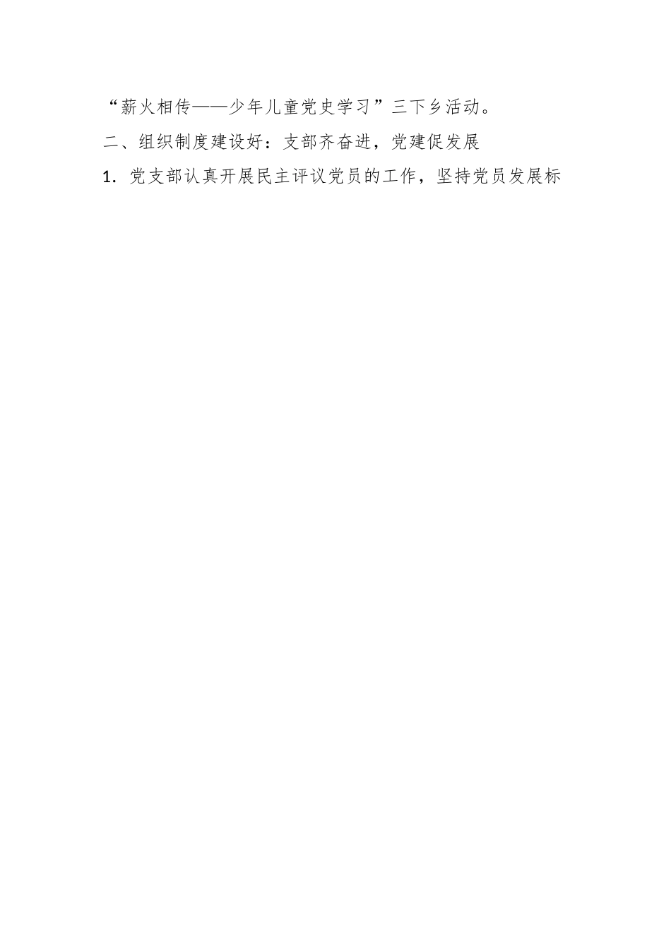 “红党旗,亮党徽”医护学院教师党支部工作总结2022年,是实施“十四五”规划的关键之年,是我们党进入全面建设社会主义现代化国家、向第二个百年奋斗目标进军新征程的重要时刻,新征程下医护学院教师党支部从此刻,向未来,再出发,与全党全国各族人民一同奋进,同全校全院一同发展。党支部基本情况:医护学院教师支部现有教师党员12名,自成立以来,支部着力打造特色活动,积极创建特色品牌发挥专业优势,打造学习进取型与社会帮扶型党支部,注重发现、宣传和推广身边典型人物、典型事迹,紧跟时代潮流,传递并响应中央号召,激发支部整体活力。同时,支部于2021年12月获评全国“第四批高校党建工作样板党支部”在建,目前正在开展建设样板党支部系列活动。一、思想引领教育好:汤逊湖之畔,医路壹红旗坚持政治理论学习加强思想作风建设。2022年上半年支部共开展多次主题活动,包括集中学习、党课教育、网络自学和实地学习,如“牢记嘱托、勇毅前行”线下理论学习“薪火相传——少年儿童党史学习”三下乡活动。二、组织制度建设好:支部齐奋进,党建促发展1.党支部认真开展民主评议党员的工作,坚持党员发展标准,严格党员发展程序;深入推进组织生活制度常态化生活化,落实“三会一课”制度,突出政治学习和党性锻炼以“政治生日”的形式把严肃的宣传教育转变为情感、人文的思想交流,引导大家自觉牢记党员身份、永葆初心。2.强化落实党员培训、党员发展、党籍管理、党费收缴、党员关怀帮扶等工作。保证党费收缴率100%,严格落实党费收缴、使用和管理工作,随时接受党内同志监督,做到账目清楚、透明、公开。三、党员主题活动丰富:担疫情防控,下基层暖民心1.担疫情常态化,强党员责任感支部党员下沉社区、下沉校园积极投身于疫情防控志愿服务工作,登记出入社区车辆、测温、采访抗疫一线工作人员、撰写宣传文章等,站在了社区疫情防控的第一线,以实际行动充分展现了共产党员的模范带头作用,其中XXX、XXX等多名同志获得社区防控优秀表彰锦旗及感谢信。2.深入基层落实化、责任划分明确化责任划分下基层,党支部根据党员教师的实际教学情况合理划分了责任区,每个教师党员都按要求与学生建立师生联系,通过qq群,微信群实时参与学生排忧解难。为做好学生宿舍服务,深入学生宿舍,发现火灾隐患、下水道堵塞、蚊虫等问题,向有关部门反映并自筹经费购买驱蚊水花露水等就地解决问题。四、党风廉政建设是:守纪律规矩,扬清风正气为抓好党性党风党纪教育,支部先后组织学习了《中国共产党廉洁自律准则》、《中国共产党纪律处分条例》等中央关于党风廉政建设方面的一系列指示精神,进一步筑牢了思想防线。通过举办支部书记讲廉洁党课、带领学生入党积极分子参观廉洁园、新生入学廉洁读本发放等活动,切实增强学生入党积极分子、学生廉洁自律意识,把廉洁的基因入心入行,提升抗腐防变能力,推动形成学条例、明底线、知敬畏、守纪律的浓厚氛围。五、品牌活动展风采:医路学榜样,医起共奋进教师党支部在日常活动有序开展的前提下,在学习中创发展,与时俱进开展好特色品牌党建活动,重视支部的宣传报道,使医护学院党支部的品牌深入人心。1.理论学习树榜样为加强支部党员的党性修养,支部积极组织全体党员教师学党史、讲党课。除了平时在支部主题党日活动中采用党员轮流讲党课的形式,内容涉及党的基本理论、相关政策解读、党的历史回顾、党的廉政教育等多个方面,指导党员通过扎实学习将政治理论内化于心,外化于行,向榜样看齐。目前支部已开展主题微党课共计近20余次,提升党性修养方面成效显著,支部委员鲁蓉同志在“学党史、颂党恩”的微党课比赛中获得二等奖的好成绩。2.志愿服务暖人心党支部非常重视对党员的服务精神培养,组织教授党员走一线医疗技术服务活动,充分发挥医护学院人才、专业、技术等优势资源,服务基层医疗卫生机构和中小微企业,助力乡村医疗振兴,推进“双高计划”项目实施,促进医护学院社会服务能力与水平高质量发展。3.评奖评优争创一流自支部获批全国党建工作样板支部以来,团结带领党支部党员及入党积极分子进一步解放思想,开拓进取,深挖开展...