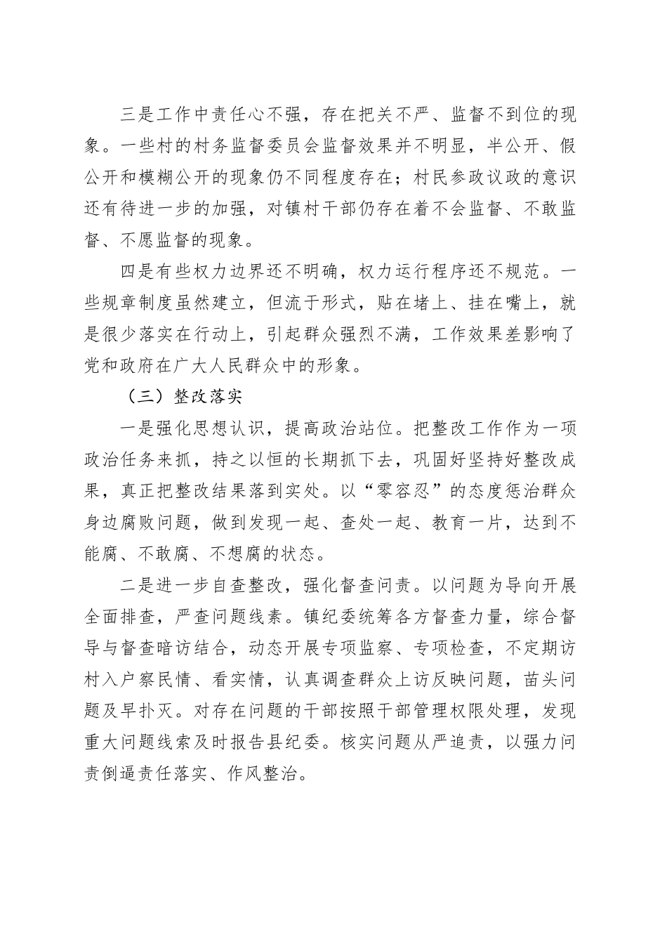 机关单位党员干部深入贯彻中央八项规定精神学习教育发言材料按照《开展深入贯彻中央八项规定精神学习教育的实施方案》,根据县委县政府的安排部署,现将开展群众身边腐败和作风问题专项整治以及深入贯彻中央八项规定精神学习教育工作情况,汇报发言如下。ー、关于开展群众身边腐败和作风专项整治工作情况(一)工作开展情况1、健全组织、明确任务。按照上级要求、结合实际情况,我镇于3月7日、3月17日先后召开关于群众身边腐败和作风问题专项整治动员会、推进会,对整治群众身边腐败和作风问题进行动员、部署、强调,并详细研究制定了工作方案,成立五个专项小组,明确任务,夯实责任,着力推动专项整治工作向纵深推进。2、谈心谈话、思想动员。采取“面对面”的方式,党委书记与班子成员进行廉政谈话,班子成员与分管站所负责人和村“两委”班子成员进行廉政谈话,同时,村“两委”班子成员互相进行廉政谈话。在谈话过程中,围绕专项整治工作重点、全面从严治党及党风廉政建设情况,对存在问题进行自查自纠,积极引导党员干部主动查找和认领问题,营造浓厚氛围,3、查摆问题、自查自纠。年初,针对上级来文《关于深入开展脱贫攻坚方面群众身边腐败和作风问题专项整治实施方案》、《2025年全县深化纠正“四风”和作风纪律专项整治推进方案》的通知,我镇积极务应,制定相应举措组织各村、各站所认真排查,形成问题清单和整改台账,按时做好月汇报。3月13日,按照县纪委监委要求,组织镇村两级开好群众身边腐败和作风问题专项整治自查自纠专题民主生活会和组织生活会,通过会前学习相关资料进一步深化认识,面对面谈心谈话活动深入查纠,综合采取自己找、群众提、同事帮、领导点等方式,把问题和问题线索找实找全,其中镇领导班子自查问题8件;机关支部党员自查问题6件;镇内15个行政村自查问题26件;问题线索2件。在镇党委的密切带领下,县监委委员、督导组组长苗向阳同志的亲临指导下自查自纠专题民主生活会顺利开展。苗局长会后指出,对在民主生活会上查摆出来的问题和相互批评中提出的意见建议,大家要高度重视、认真反思、剖析根源、对症下药,充分结合分管工作,全面整改藩实到位。(二)存在问题一是整治作风转变不彻底,缺乏紧迫感和使命感,仍然对自查自纠存在畏惧思想。虽然我镇大力引导“有问题”的干部坦诚自查,相信组织,但是效果不明显,查纠不彻底不深入,个别存在表面应付、瞒压问题不上报的现象。二是部分镇村干部自身政治素质不高,主动学习意识不强错误的认为基层工作只要会干就行,用不着学习,对各项政策的了解不够深入,导致抱有侥幸心理不按规章制度办事,缺少纪律和法律意识,在实际工作中损害群众利益行为时有发生。三是工作中责任心不强,存在把关不严、监督不到位的现象。一些村的村务监督委员会监督效果并不明显,半公开、假公开和模糊公开的现象仍不同程度存在;村民参政议政的意识还有待进一步的加强,对镇村干部仍存在着不会监督、不敢监督、不愿监督的现象。四是有些权力边界还不明确,权力运行程序还不规范。一些规章制度虽然建立,但流于形式,贴在堵上、挂在嘴上,就是很少落实在行动上,引起群众强烈不满,工作效果差影响了党和政府在广大人民群众中的形象。(三)整改落实一是强化思想认识,提高政治站位。把整改工作作为一项政治任务来抓,持之以恒的长期抓下去,巩固好坚持好整改成果,真正把整改结果落到实处。以“零容忍”的态度惩治群众身边腐败问题,做到发现一起、查处一起、教育一片,达到不能腐、不敢腐、不想腐的状态。二是进一步自查整改,强化督查问责。以问题为导向开展全面排查,严查问题线素。镇纪委统筹各方督查力量,综合督导与督查暗访结合,动态开展专项监察、专项检查,不定期访村入户察民情、看实情,认真调查群众上访反映问题,苗头问题及早扑灭。对存在问题的干部按照干部管理权限处理,发现重大问题线索及时报告县纪委。核实问题从严追责,以强力问责倒逼责任落实、作风整治。三是健全长效机制,突出常态监管。规范制度建设,全面实行村务公开制度,推行“百姓问廉”与“四议两公开一监督”等工作办法;规范党风廉政...