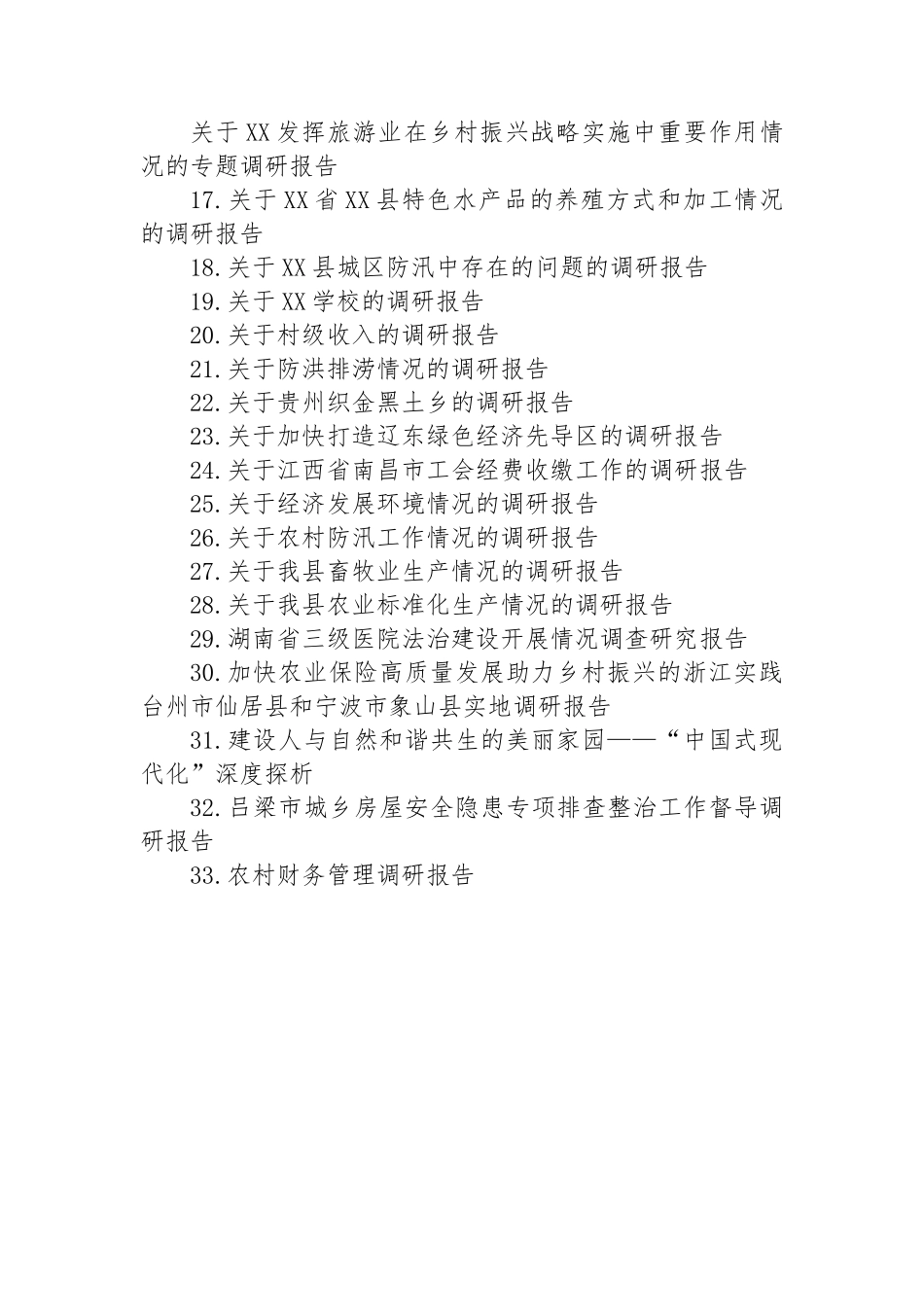调研报告汇编(45篇)目录1.“雪域桃源”绘就乡村振兴新画卷西藏林芝市巴宜区嘎拉村依托特色产业推动乡村全面振兴的实践探索2.XX地区在新课程改革以后义务教育阶段三级课程的实施情况的调研报告3.XX公司安全生产调研报告4.XX国企内部调研报告5.XX农村集体经济发展的探索与实践6.XX市侨资企业营商环境调研报告7.XX县职业技工技术校园调研报告8.XX油田第六采油厂员工思想动态调研分析9.XX州乡镇中学教师媒介素养调查研究10.本科高校“专升本”学前教育专业课程设置的调查研究以XX工学院为例11.城市红色旅游发展困境及对策研究以呼和浩特市为例12.大数据应用于高校思政课评价的优势、困境及策略13.公立医院干部廉政档案建设现状调查研究报告14.关于XX村文化建设情况的调研报告15.关于XX村治理情况的调研报告16.关于XX发挥旅游业在乡村振兴战略实施中重要作用情况的专题调研报告17.关于XX省XX县特色水产品的养殖方式和加工情况的调研报告18.关于XX县城区防汛中存在的问题的调研报告19.关于XX学校的调研报告20.关于村级收入的调研报告21.关于防洪排涝情况的调研报告22.关于贵州织金黑土乡的调研报告23.关于加快打造辽东绿色经济先导区的调研报告24.关于江西省南昌市工会经费收缴工作的调研报告25.关于经济发展环境情况的调研报告26.关于农村防汛工作情况的调研报告27.关于我县畜牧业生产情况的调研报告28.关于我县农业标准化生产情况的调研报告29.湖南省三级医院法治建设开展情况调查研究报告30.加快农业保险高质量发展助力乡村振兴的浙江实践台州市仙居县和宁波市象山县实地调研报告31.建设人与自然和谐共生的美丽家园——“中国式现代化”深度探析32.吕梁市城乡房屋安全隐患专项排查整治工作督导调研报告33.农村财务管理调研报告34.商业银行服务碳达峰、碳中和策略分析35.推动物质文明和精神文明协调发展——“中国式现代化”深度探析36.为特色经济崛起提供特别助力市场监管助力宁夏回族自治区高质量发展采访调研记37.西南地区包容性营商环境构建研究38.消费者对药品的消费情况的调研报告39.新时代金融业党建工作创新发展研究基于深圳市的调研分析40.央行数字货币推广的影响因素调查研究41.在高质量发展中促进共同富裕——“中国式现代化”深度探析42.长子县构建矛盾纠纷多元化解体系的实践探索43.重庆某三甲医院推进医联体建设实践探索44.最深厚基础在高质量发展——正确认识和把握实现共同富裕的战略目标和实践途径(上)45.遵义市融入成渝地区双城经济圈发展调研报告“雪域桃源”绘就乡村振兴新画卷西藏林芝市巴宜区嘎拉村依托特色产业推动乡村全面振兴的实践探索光明日报调研组(2022年8月26日)尼洋河奔腾南去,印度洋季风顺江北上,在西藏东部的林芝市形成了高原独特的温带湿润季风气候,域内植被丰富,森林密布。位于尼洋河北岸的嘎拉村,拥有数百亩野生桃林,每年三四月份,夹岸而生的桃花次第绽放,漫山粉红霞蔚,山野一片明媚。如诗如画的雪域春光,使嘎拉村赢得了“最美桃花村”的美誉。依托桃花,嘎拉村大力发展生态旅游产业,带动全村走上了致富路。2021年7月21日,在庆祝西藏和平解放70周年之际,习近平总书记来到西藏。在林芝市巴宜区林芝镇嘎拉村,习近平总书记听取嘎拉村发挥党建引领作用、带领群众增收致富、提升基层治理水平等介绍,走进村便民服务中心“绿色银行”兑换商店、卫生室等详细了解有关情况。习近平总书记指出,嘎拉村的美好生活是西藏和平解放70年来经济社会发展成就的一个缩影,这里是民族团结进步之花盛开的地方。总书记殷切的话语,道出了嘎拉村在时代发展下的美好变迁,鼓舞着当地干部群众乘势而上谋发展,不断书写美好生活新篇章。总书记考察嘎拉村一年来,嘎拉村发展思路更清晰、干劲更足了,村“两委”班子带领群众围绕嘎拉桃花源、农业综合体等项目不断探索生态价值转换路径,进一步拓展“旅游+”发展模式,在全面推进乡村振兴的道路上大步迈进。1.吃上“旅游饭”,共走致富路绿树掩映之下,一幢幢藏家庭院错落有致,村道宽敞整洁,溪水潺潺流淌。嘎拉村在细雨蒙蒙中展现着“雪域江南”的独特风韵。嘎拉村曾经一下雨就满地泥泞的土路,早已被...