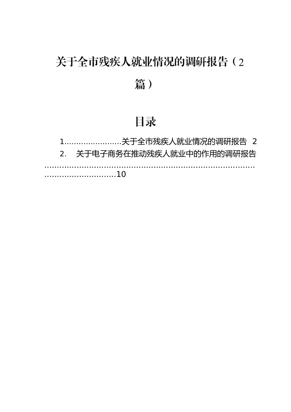 21........................关于全市残疾人就业情况的调研报告22.关于电子商务在推动残疾人就业中的作用的调研报告..................................................................................................................10一、就业基本情况截至目前,xx市残疾人数xx万人,占xx市总人口的x.xx%,其中持证残疾人总数xx.x人。xx市有就业年龄段的残疾人xx.x万人,占持证残疾人总数的xx.x%。其中,已就业的残疾人x.x万人,占持证就业年龄段比例为xx%。(一)就业残疾情况划分从残疾等级来看,一级残疾人就业xxxx人,占比x.xx%;二级残疾人就业xxxx人,占比xx.xx%;三级残疾人就业xxxxx人,占比xx.xx%;四级残疾人就业xxxxx人,占比xx.xx%。从残疾类别来看,视力残疾人就业xxxx人,占比x.x%;听力残疾人就业xxxx人,占比x.x%;言语残疾人就业xxx人,占比x.x%;肢体残疾人就业xxxxx人,占比xx%;智力残疾人就业xxxx人,占比x%;精神残疾人就业xxxx人,占比x%;多重残疾人就业xxxx人,占比x.x%。从年龄结构来看,xx-xx周岁的残疾人就业xxxxx人,占比xx.xx%;xx~xx周岁的残疾人就业xxxxx人,占比xx.xx人;男xx~xx周岁、女xx~xx周岁的残疾人就业xxxxx人,占比xx.xx%;其他残疾人就业(女xx~xx周岁)xxxx人,占比x.xx%。(二)就业途径残疾人就业途径主要是通过残疾人就业招聘会招聘、残联就业机构推荐、残疾人福利企业集中安置、用人单位分散按比例安置、残疾人自主创业等。从整体情况来看,残疾人就业已经形成以分散按比例就业和集中就业为主、以自主创业为辅、多种就业形式并存的格局。从调研获到的数据来看,各就业渠道安置残疾人比例由高到低依次为:个体及其他形式就业、辅助性就业、按比例就业、集中就业、公益性岗位就业。与往年相比,除集中就业的人数呈现出逐年下降趋势外,其他渠道就业人数基本呈上升趋势。从国家政策层面来看,未来按比例就业仍是残疾人就业的主渠道,个体及其他形式就业也有很大的潜力。具体数据如下。xx市分散按比例就业xxxx人,集中就业xxxx人,个体就业和自主创业xxxx人,公益岗位就业xxxx人,辅助性就业xxxx人,农村种植养殖加工xxxxx人,灵活就业xxxxx人,盲人按摩机构xx个,从业盲人xx个。残疾人扶贫基地xx个,辐射带动残疾人数xxx户、xxx人。二、就业形势分析(一)当前残疾人就业存在的问题1.就业率低从我市就业年龄段残疾人就业数字可以看到,就业率仅达到xx%,也就是说每xx个人中,有就业能力和需求的x个人不能实现就业。2.就业稳定性差由于自身身体障碍限制,同一残疾类型群体所擅长的技能较为趋同,一旦所在单位关闭或因其他原因失业就很难再找到合适的工作。如,盲人就业以按摩为主,不论打工还是开店,这是盲人就业的有限方式,受疫情突袭,盲人按摩机构被击垮,给盲人就业带来巨大打击。3.自主创业难残疾人在生理、心理方面存在一些障碍,以及受教育程度、创业机遇、经济状况等诸多方面的制约,创业可谓举步维艰。4.残疾人扶贫基地带动辐射能力不强目前,我市残疾人扶贫基地每个县(市、区)不足x个,上规模的基地少,很难为有就业需求的残疾人提供岗位。5.就业政策落实不到位用人单位按比例安置残疾人不够理想,尤其是党政机关和企事业单位按比例安置残疾人具有更大差距。6.残疾人就业培训政策不明确一定程度上影响就业能力目前,xx省财政厅、xx省人社厅关于印发《xx省就业创业资金管理办法》的通知(x财规〔20xx〕xx号)仅对正常人员培训补助标准规定明确,包括贫困家庭子女、毕业学年高校毕业生、下岗失业退役军人、城镇登记失业人员等六类人员。但对残疾人职业技能培训规定不明确,残疾人作为特殊群体,培训补助标准应与正常群体应有所不同,对培训机构有特殊要求,如配备无障碍设施,需要免费食宿等。(二)原因分析1.相关政策落实不到位一是我市党政机关、事业单位大部分没有按照比例安置残疾人就业,我市国有企业xxxx家,仅安置残疾人就业xxx名,比例偏低,社会关注也不够。2.就业岗位不足适合残疾人的工作岗位很少,有些是通过按比例安置残疾人政策硬性安排,有些是富有社会责任感的爱心企业预留的,还有残疾人自主...