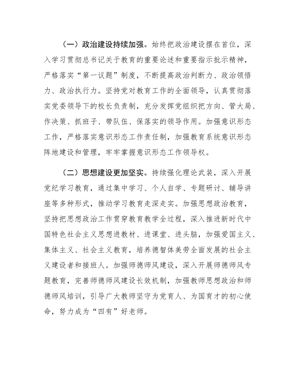 在市教育局党建及党风廉政建设工作会议上的讲话同志们:今天,我们召开市教育局党建及党风廉政建设工作会议,主要任务是深入学习贯彻党的二十大和二十届三中全会精神,认真落实中央和省、市纪委全会部署要求,总结回顾2024年工作,分析研判当前形势,安排部署2025年重点任务,坚定不移推进全面从严治党,为推动我市教育事业高质量发展提供坚强政治保障。刚才,**传达了相关会议精神,通报了有关工作情况,签订了责任书,希望大家认真抓好落实。下面,我讲几点意见。一、总结回顾,坚定党建及党风廉政建设的信心决心过去一年,全市教育系统坚持以新时代中国特色社会主义思想为指导,深入贯彻落实新时代党的建设总要求和新时代党的组织路线,紧紧围绕立德树人根本任务,以党的政治建设为统领,扎实推进党建及党风廉政建设各项工作,取得了明显成效。(一)政治建设持续加强。始终把政治建设摆在首位,深入学习贯彻总书记关于教育的重要论述和重要指示批示精神,严格落实“第一议题”制度,不断提高政治判断力、政治领悟力、政治执行力。坚持党对教育工作的全面领导,认真贯彻落实党委领导下的校长负责制,充分发挥党组织把方向、管大局、作决策、抓班子、带队伍、保落实的领导作用。加强意识形态工作,严格落实意识形态工作责任制,加强教育系统意识形态阵地建设和管理,牢牢掌握意识形态工作领导权。(二)思想建设更加坚实。持续强化理论武装,深入开展党纪学习教育,通过集中学习、个人自学、专题研讨、辅导讲座等多种形式,推动学习教育走深走实。加强思想政治教育,坚持把思想政治工作贯穿教育教学全过程,深入推进新时代中国特色社会主义思想进教材、进课堂、进头脑,加强爱国主义、集体主义、社会主义教育,培养德智体美劳全面发展的社会主义建设者和接班人。加强师德师风建设,深入开展师德师风专题教育,完善师德师风建设长效机制,加强教师思想政治和师德师风培训,引导广大教师坚守为党育人、为国育才的初心使命,努力成为“四有”好老师。(三)组织建设成效显著。认真贯彻落实《中国共产党支部工作条例(试行)》,深入推进党支部标准化规范化建设,加强党支部班子建设,严格落实“三会一课”、主题党日、组织生活会、民主评议党员等制度,不断提高党支部建设质量。加强党员教育管理,做好党员发展工作,严格党员发展标准和程序,注重从教学一线和优秀青年教师中发展党员。加强党员教育培训,提高党员队伍素质。加强党建品牌建设,积极开展“一校一品”党建品牌创建活动,培育打造了一批具有教育特色的党建品牌,发挥了示范引领作用。(四)廉政建设不断深化。认真落实全面从严治党主体责任,制定印发《市教育局全面从严治党主体责任清单》,明确责任分工,层层压实责任。加强党风廉政教育,深入开展廉政专题教育、警示教育,组织观看警示教育片,参观廉政教育基地,增强党员干部廉洁自律意识。加强监督执纪问责,严肃查处违规违纪问题,重点整治教育乱收费、违规招生、教师有偿补课等群众身边的腐败问题和不正之风,保持惩治腐败的高压态势。加强作风建设,持续整治形式主义、官僚主义,深入开展“基层减负年”活动,精简会议文件,改进工作作风,提高工作效率。这些成绩的取得,是市委、市政府坚强领导的结果,是全市教育系统广大党员干部和师生员工共同努力的结果。在此,我代表市教育局党委,向大家表示衷心的感谢!在肯定成绩的同时,我们也要清醒地认识到,当前我市教育系统党建及党风廉政建设工作还存在一些问题和不足,主要表现在:个别党组织政治功能和组织功能发挥不够充分,党建工作与业务工作融合不够紧密;个别党员干部政治意识、纪律意识、规矩意识还不够强,存在违规违纪问题;党风廉政建设主体责任落实还不够到位,压力传导还存在层层递减现象;作风建设还需进一步加强,形式主义、官僚主义问题仍不同程度存在等等。对于这些问题,我们必须高度重视,采取有效措施,切实加以解决。二、分析形势,增强党建及党风廉政建设的责任感紧迫感党的二十大和二十届三中全会对全面从严治党作出了新的战略部署,为我们做好新时代党建及党风廉政建设工作指明了方向、...