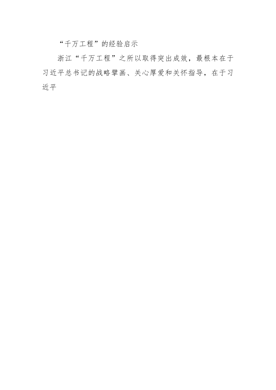 关于千万工程经验理论文章材料汇编(10篇)目录“千万工程”的经验启示3“千万工程”成效显著、影响深远7关于浙江“千万工程”的经验10学习掌握“千万工程”所蕴含的理念和方法14“千万工程”蕴含乡村振兴的规律性认识17唐仁健在浙江调研时强调:深入总结大力推广“千万工程”经验引领指导新时代新征程三农工作22农业农村部办公厅关于深入学习浙江“千万工程”经验的通知24总结推广浙江“千万工程”经验推动学习贯彻习近平新时代中国特色社会主义思想走深走实27“千万工程”的巨大贡献与深远意义39“千万工程”的主要做法45“千万工程”的经验启示浙江“千万工程”之所以取得突出成效,最根本在于习近平总书记的战略擘画、关心厚爱和关怀指导,在于习近平新时代中国特色社会主义思想的科学指引。必须更加深刻领悟“两个确立”的决定性意义,增强“四个意识”、坚定“四个自信”、做到“两个维护”,切实把浙江“千万工程”经验总结推广好、学习运用好,把握蕴含其中的习近平新时代中国特色社会主义思想的世界观和方法论,不断转化为推进中国式现代化建设的思路办法和具体成效。浙江省持续深化“千万工程”,推动“物的新农村”向“人的新农村”迈进,努力把农村建设成农民身有所栖心有所依的美好家园。图为2023年5月26日,浙江省湖州市2023年“我们的村运”活动在南太湖新区滨湖街道塘甸村举行,共有12支代表队100多名农民运动员参加比赛,共享运动趣味。浙江省委宣传部供图一、必须坚持以人民为中心的发展思想,把实现人民对美好生活的向往作为出发点和落脚点“千万工程”源于习近平总书记的深厚农民情结和真挚为民情怀。20年来,浙江从全省千百万农民群众的切身利益出发,坚持民有所呼、我有所应,不断改善农村生产生活条件,提高农民的生活质量和健康水平,使广大农民有更多获得感、幸福感、安全感。实践证明,只有心里真正装着农民,想农民之所想,急农民之所急,不断解决好农业农村发展最迫切、农民反映最强烈的实际问题,才能得到农民群众的真心支持和拥护,才能加快补齐农业农村这块我国现代化建设的短板。新时代新征程上,要更加自觉站稳人民立场,强化宗旨意识,尊重人民意愿,采取更多惠民生、暖民心举措,千方百计拓宽农民增收致富渠道,巩固拓展好脱贫攻坚成果,让农民腰包越来越鼓、日子越过越红火,推动农民农村共同富裕取得更为明显的实质性进展。二、必须坚持以新发展理念为统领,全面推进乡村振兴“千万工程”实施前后农村面貌的鲜明反差、推进落实带来生产生活的巨大变化,根本上反映的是发展理念的变革、发展方式的转变。从村庄环境建设到农村全面发展从物质文明建设到精神文明建设,浙江坚持新发展理念,走出了一条迈向农业高质高效、乡村宜居宜业、农民富裕富足的康庄大道。实践证明,观念一变天地宽。只有完整准确、全面贯彻新发展理念,推进乡村振兴才能理清思路把握方向、找准着力点。新时代新征程上,要以新发展理念为统领,立足加快构建新发展格局,正确处理速度和质量、发展和环保、发展和安全等重大关系,加强机制创新、要素集成,抓好乡村产业、人才、文化、生态、组织“五个振兴”,实现农业生产、农村建设、乡村生活生态良性循环。三、必须强化系统观念,着力推动城乡融合发展“千万工程”实施20年来,浙江始终坚持统筹城乡发展,不断推动城市基础设施向农村延伸、公共服务向农村覆盖、资源要素向农村流动,使城乡关系发生深刻变革。实践证明,必须把农村和城市作为一个有机统一的整体系统考虑、统筹协调,充分发挥城市对农村的带动作用和农村对城市的促进作用,兼顾多方面因素,注重多目标平衡。新时代新征程上,要系统摆布城乡关系,以县域为重要切入点,统筹部署、协同推进,抓住重点、补齐短板,加大改革力度,破除妨碍城乡要素平等交换、双向流动的制度壁垒,促进发展要素、各类服务更多下乡,加快形成工农互促、城乡互补、协调发展、共同繁荣的新型工农城乡关系。四、必须大兴调查研究,从实际出发想问题、作决策办事情“千万工程”是习近平同志到浙江工作后不久,用118天时间跑遍11个地市,一个村一个村地仔细考察,充分掌握省情农情作出的...
