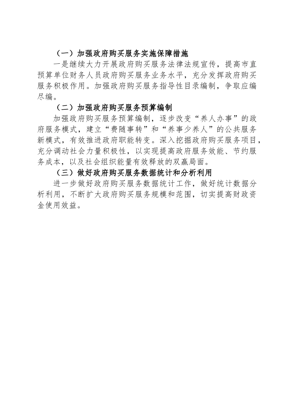 政府购买服务工作开展情况的报告20XX年,XX市财政局在省财政厅的正确领导下,认真贯彻落实《政府购买服务管理办法》(中华人民共和国财政部令第102号),稳步推进和规范政府购买服务工作,各项工作有序开展。现将我市20XX年政府购买服务工作进展情况报告如下:一、主要做法及成效(一)加强政府购买服务预算编制和执行管理进一步加强政府购买服务预算管理,牵住政府购买服务预算这个“牛鼻子”,政府购买服务预算与部门预算、政府采购预算同步编制、同步审核、同步批复、同步执行。加强购买服务项目和资金审核,加强购买服务预算项目和资金审核,提高购买服务预算编制的科学性、规范性、合理性,夯实政府购买服务基础。20XX年我市全年财政预算安排通过政府购买服务方式项目共427项,预算资金77899.28万元,其中一般公共预算安排58156.92万元,政府性基金安排19742.36万元;政府购买服务合同约定金额75287.93万元,全年实际支付66482.4万元,支付率85.34%。(二)完善政府购买服务指导性目录编制根据政府职能转变和工作需要,督促市级部门梳理公共服务事项,建立公共服务清单,对应当由政府举办并适宜采取市场化方式提供、社会力量能够承担的服务事项予以明确,完善部门购买服务指导性目录,实行动态管理。增强指导性目录的约束力,以此作为政府购买服务预算项目确定的依据,保证政府购买服务指导性目录的针对性和操作性。目前出台分部门政府购买服务指导性目录26件。(三)加强政府购买信息公开加强政府购买服务信息公开工作,建立信息公开平台,对政府购买服务政策法规、分部门政府购买服务指导性目录、工作动态等信息及时公开,当年公开各类政府购买服务信息20余条。(四)开展政府购买服务法规宣传和业务培训以中华人民共和国财政部令第102号出台为契机,认真开展政府购买服务法规宣传和业务培训。一是编制政府购买服务文件选编,选取具体工作中常用的15件国家、省、市级政府购买服务法规编制成册。二是集中开展政府购买服务法规宣传和业务培训,组织市直预算单位及各县区财政部门开展集中培训,大力宣传第102号令,并对政府购买服务工作流程中经常遇到的问题进行讲解。二、2021年工作打算我市政府购买公共服务工作虽然取得了一定成效,但从总体上,政府购买服务改革工作仍需不断完善和深化,政府购买服务宣传仍需进一步加强,主管部门对政府购买服务认识仍需提高,政府购买服务规模和范围仍有较大空间等。2021年,我市将加大政府购买服务工作推进力度,更好地发挥政府购买服务职能作用。(一)加强政府购买服务实施保障措施一是继续大力开展政府购买服务法律法规宣传,提高市直预算单位财务人员政府购买服务业务水平,充分发挥政府购买服务积极作用。加强政府购买服务指导性目录编制,争取应编尽编。(二)加强政府购买服务预算编制加强政府购买服务预算编制,逐步改变“养人办事”的政府服务模式,建立“费随事转”和“养事少养人”的公共服务新模式,有效推进政府职能转变。深入挖掘政府购买服务项目,充分调动社会力量积极性,以实现提高政府服务效能、节约服务成本,以及社会组织能量有效释放的双赢局面。(三)做好政府购买服务数据统计和分析利用进一步做好政府购买服务数据统计工作,做好统计数据分析利用,不断扩大政府购买服务规模和范围,切实提高财政资金使用效益。