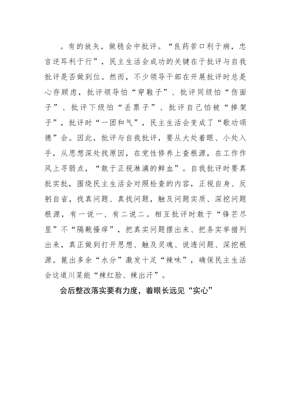 民主生活会动员发言:用“心”把握好民主生活会的“度”年初复工,各地继续召开民主生活会。开好民主生活会是发扬党内民主、加强党内监督的重要方式,是我党的优良传统和重要政治制度,对于提高党组织的凝聚力、战斗力和感召力等有着十分重要的意义。广大党员干部要用“心”牢牢把好三个“度”,确保开出高质量、高水准、高效率的民主生活会。会前查摆问题要有深度,端正态度要“走心”。查摆问题是开展批评、落实整改的重要基础,是扎实开好高质量民主生活会的关键,只有查摆问题深入,才能抓住重点、突出要害。而一些党员干部在对照检查过程中,没有摆正查找问题的心态,没有把自己摆进去、把职责摆进去、把工作摆进去,只是轻描淡写、点到为止,“蜻蜓点水”式走过场。因此,广大党员干部要有勇于接受问题、正视问题的“真心实意”,以“壮士断腕”的勇气和“刮骨疗毒”的决心,敢于“揭短亮丑”,坦坦荡荡将存在的问题摆在桌面,实事求是剖析问题原因,多问几个“为什么”,多想几个“是什么”,以群策群力找到“除短治丑”的“良方”。同时对群众的批评和建议要真切做到“愿意听、真心听、准确听”,以“君子检身,常若有过”的态度认识和审视自己,知耻而后勇、知止而后定,永葆共产党人的政治本色。会中批评环节要有辣度,真批实批更“戳心”。有的放矢,做稳会中批评。“良药苦口利于病,忠言逆耳利于行”,民主生活会成功的关键在于批评与自我批评是否做到位。然而,不少领导干部在开展批评时总是心存顾虑,批评领导怕“穿鞋子”、批评同级怕“伤面子”、批评下级怕“丢票子”、批评自己怕被“掉架子”,批评时“一团和气”,民主生活会变成了“歌功颂德”会。因此,批评与自我批评,要从大处着眼、小处入手,从思想深处找原因,在党性修养上查根源,在工作作风上寻弱点,“敢于正视淋漓的鲜血”。自我批评时要真批实批,围绕民主生活会对照检查的内容,正视自身、反躬自省,找真问题、真找问题,触及问题实质、深挖问题根源,有一说一、有二说二。相互批评时敢于“锋芒尽显”不“隔靴搔痒”,把真实问题摆出来、把务实举措列出来,真正做到打开思想、触及灵魂、说透问题、深挖根源。篦出多余“水分”激发十足“辣味”,确保民主生活会这道川菜能“辣红脸、辣出汗”。会后整改落实要有力度,着眼长远见“实心”。“与其坐而论道,不如起而行之。”自我批评并非“一评了之”,查摆问题也绝非“一查置之”,而是要把功夫花在整改落实上,用干货满满的“成绩单”让组织检验、让人民阅卷,用科学有效的“规划图”为事业助力、为大局服务。要把问题找出来,把整改措施落实到位,要以高标准、严要求逐条逐项落实各项整改任务为实效,扎实做好整改“后半篇文章”。对于能力范围内可以整改的问题,要制定整改清单,将任务落实到个人,立行立改,同时畅通监督渠道,让人民充分行使监督权力;对于暂时无法彻底解决的问题,要限定整改期限,边学边改,一点一点学,一步一步改,坚决不观望、不敷衍、不推诿,切实让人民群众看到民主生活会的执行能力,看到整改诚意和整改实效。同时,对于整改落实过程中好的办法和形式,要形成制度固定下来,久久为功、长期坚持,确保民主生活会开出实效,看到成效。