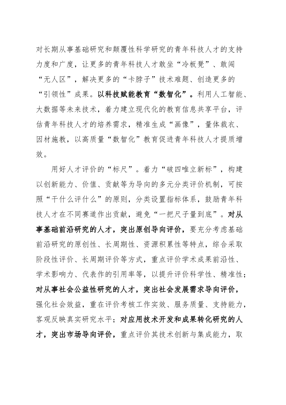 组织部长论坛公文堂网编(4篇)(202403-05)目录1.厚植青年科技人才建功立业沃土................................22.学习党的创新理论不能歇歇脚....................................63.用党纪党规校正思想和行动........................................94.着力造就高质量发展生力军......................................14厚植青年科技人才建功立业沃土习近平总书记多次就加强青年科技人才的培养作出重要指示批示,把培育国家战略人才力量的政策重心放在青年科技人才上,支持青年人才挑大梁、当主角。青年科技人才是最有活力、最有创新精神的人才群体,我们要持续加强对青年科技人才的培养,厚植创新沃土,促其在实现高水平科技自立自强中建功立业。搭建人才培养的“铁三角”。推进教育、科技、人才三位一体、良性循环,有助于促进青年科技人才各显所长、各尽其能。以教育拓宽人才“储备池”。坚持“四个面向”,根据新质生产力发展要求、科技创新趋势,优化高校人工智能、大数据分析等学科专业和资源结构布局、人才培养模式,为推动高质量发展培养更多急需人才。可采取校地合作、校企合作等模式,共建博士后科研工作站、高校科技创新园、企业技术创新中心等平台,为青年科技人才提供更多科研实践载体,推动产学研用深度融合,形成高质量人才自主培养体系。以人才支撑科技“上台阶”。围绕国家重大发展战略,鼓励青年科技人才主动在重大科研项目、核心技术攻关中“揭榜挂帅”“挑大梁”,全面提升科技源头供给能力、研发突破能力。持续加大对长期从事基础研究和颠覆性科学研究的青年科技人才的支持力度和广度,让更多的青年科技人才敢坐“冷板凳”、敢闯“无人区”,解决更多的“卡脖子”技术难题、创造更多的“引领性”成果。以科技赋能教育“数智化”。利用人工智能、大数据等未来技术,着力建立现代化的教育信息共享平台,评估青年科技人才的培养需求,精准生成“画像”,量体裁衣、因材施教,以高质量“数智化”教育促进青年科技人才提质增效。用好人才评价的“标尺”。着力“破四唯立新标”,构建以创新能力、价值、贡献等为导向的多元分类评价机制,可按照“干什么评什么”的原则,分类设置指标体系,鼓励青年科技人才在不同赛道作出贡献,避免“一把尺子量到底”。对从事基础前沿研究的人才,突出原创导向评价,要充分考虑基础前沿研究的原创性、长周期性、资源积累性等特点,综合采取阶段性评价、长周期评价等方式,重点评价学术成果前沿性、学术影响力、代表作的引用率等,以提升评价科学性、精准性;对从事社会公益性研究的人才,突出社会发展需求导向评价,强化社会效益,重在评价考核工作实效、服务质量、支持能力,客观反映真实研究水平;对应用技术开发和成果转化研究的人才,突出市场导向评价,重点评价其技术创新与集成能力,取得的自主知识产权和重大技术突破、成果转化实效、对产业发展的实际贡献等,用“市场之手”推动创新创造。厚植人才创造的“沃土”。遵循人才成长和科研工作规律,聚焦青年人才关心的现实问题、科技创新难点堵点问题,减轻青年科技人才工作压力、增加科研“有效时长”,营造优良创新创造生态。高效服务有高度。提高青年科技人才培养工作的政治站位,发挥党委、政府各部门作用,一体化联动,在政策制定、平台搭建、公共服务等方面,健全人才创新综合服务机制,优化审批程序,通过上门服务、一对一联系服务等方式,为青年科技人才提供便捷、高效的优质服务。常态化推进事务性减负,让青年科技人才有更多精力开展沉浸式科研。改革激励有力度。打破“大锅饭”和论资排辈,鼓励高等院校、科研机构、企业深化职务科技成果赋权改革,赋予青年科技人才职务科技成果使用权、处置权和收益权,支持以知识产权作价入股、科技成果转化提成等形式让青年科技人才“创收”,以“真金白银”激发创新创造活力。关心关爱有温度。采取典型选树、推荐“两代表一委员”等方式加强政治吸纳和精神激励,使优秀青年科技人才在政治上有荣誉、社会上有地位。积极解决好住房、医疗、子女就学、配偶就业、父母养老等“急难愁盼”问题,积极营造良好环境,让青年...